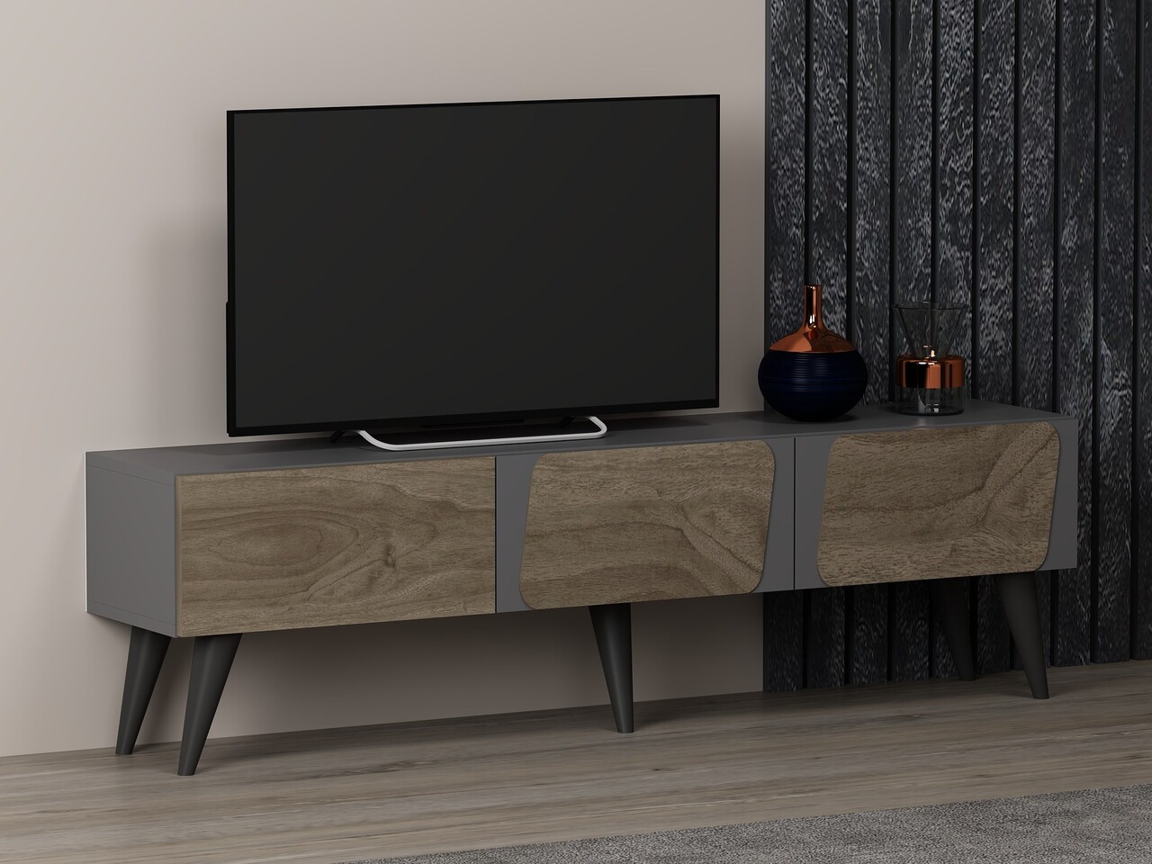 Comoda TV, Odessa, Veas, 150x30x43 cm, PAL, Antracit / Nuc