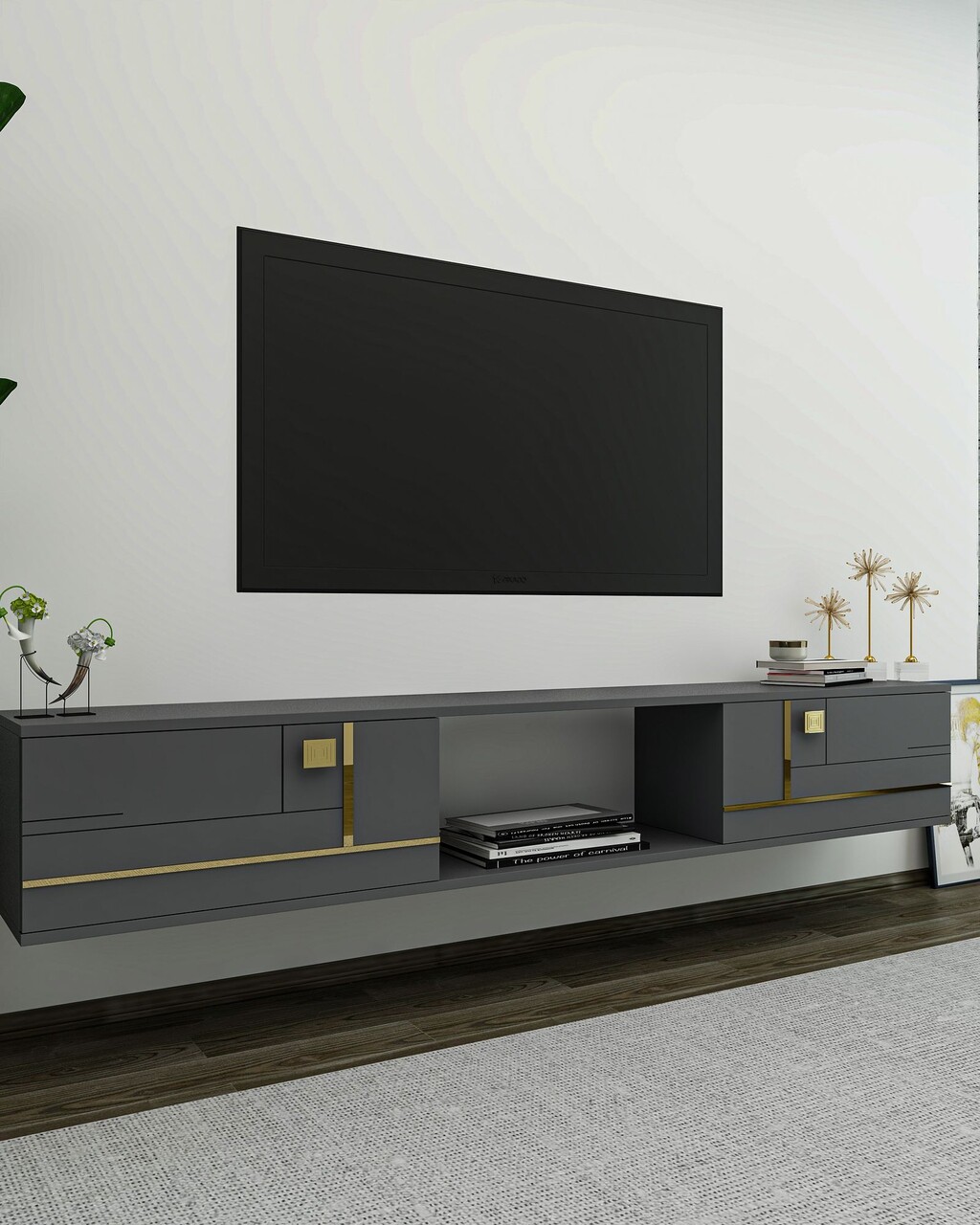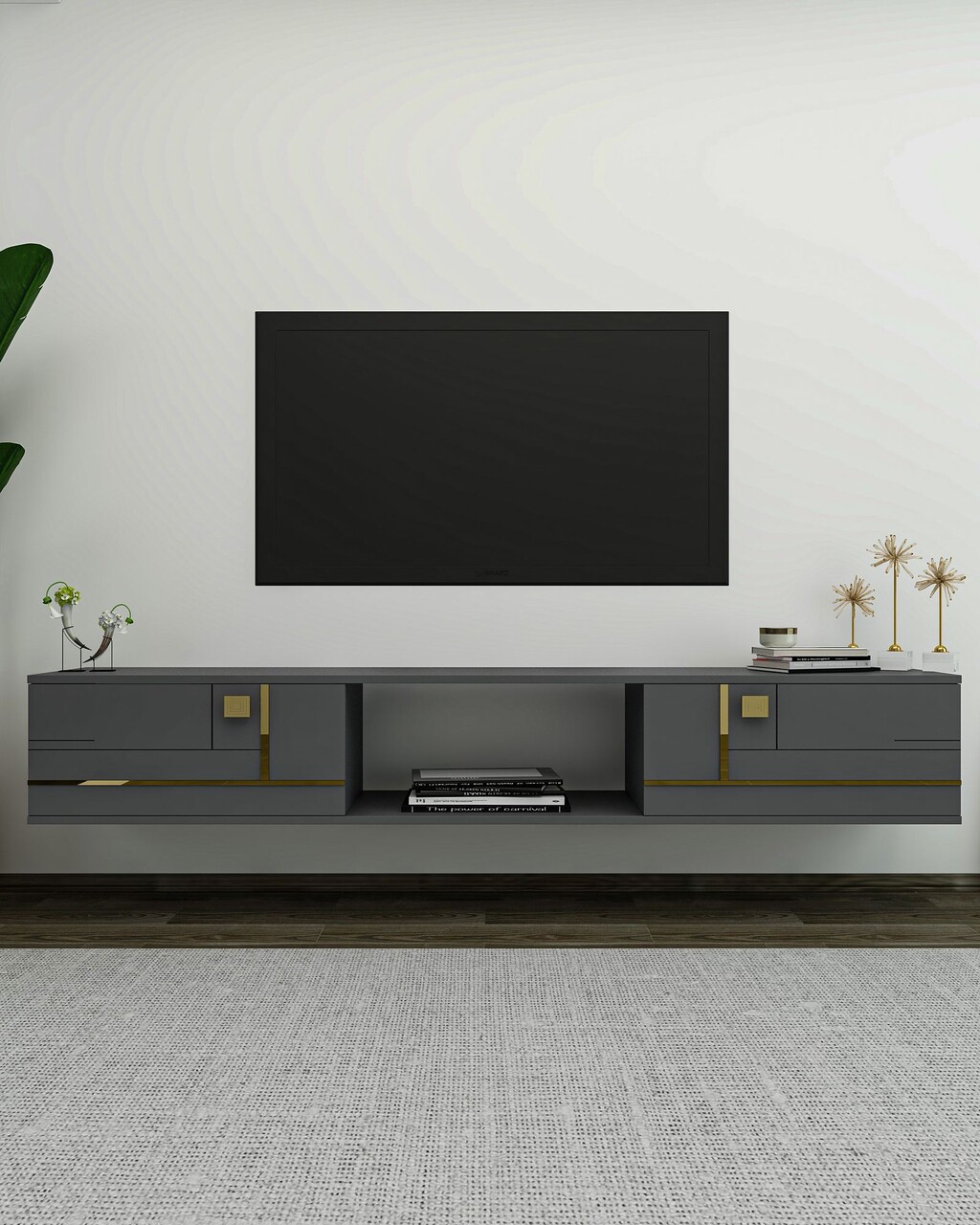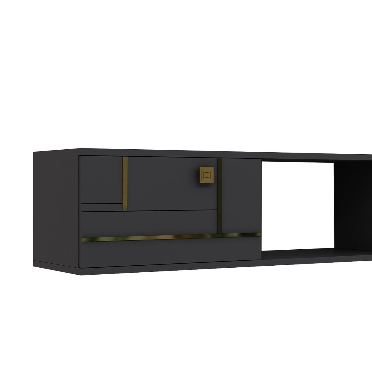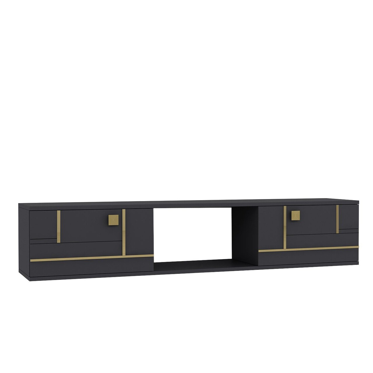 Comoda TV, Olivia, Aredam, 150x25 cm, PAL , Antracit / Aur