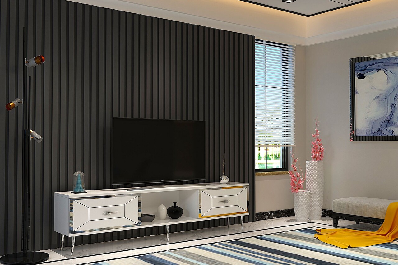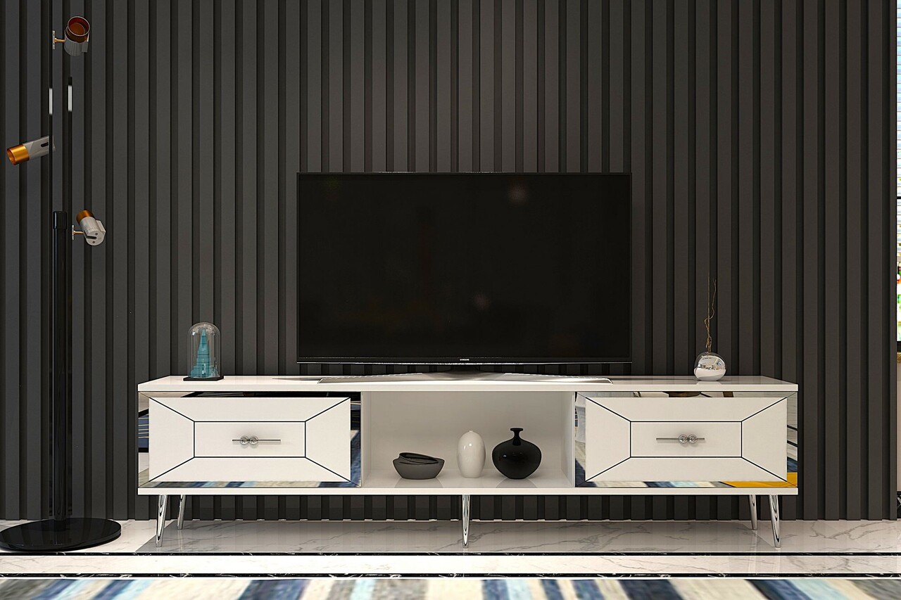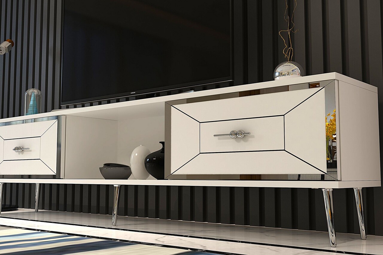 Comoda TV, Olivia, Arno, 150x40 cm, PAL , Alb / Argintiu