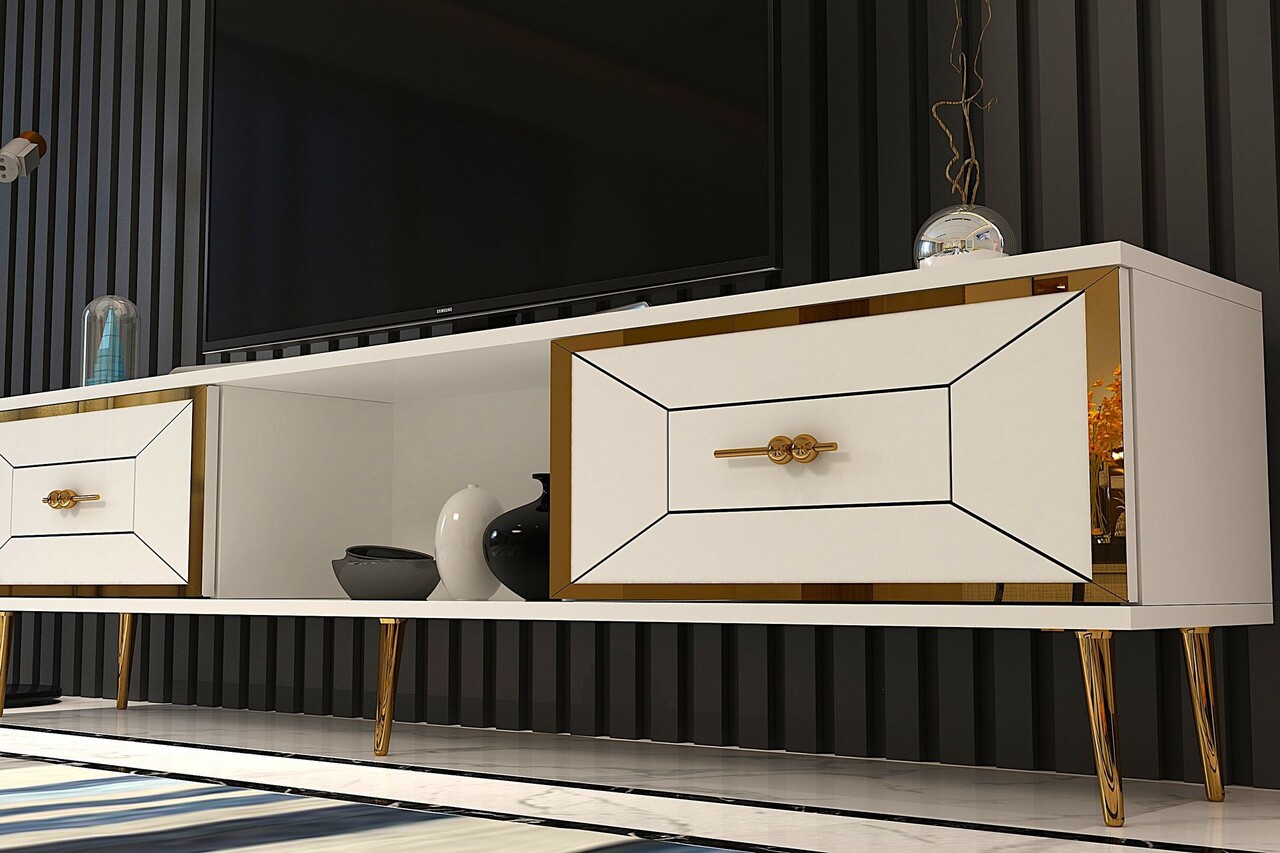 Comoda TV, Olivia, Arno, 150x40 cm, PAL , Alb/Auriu