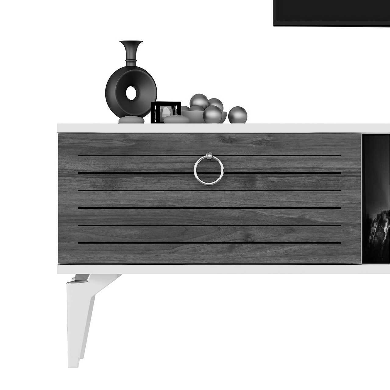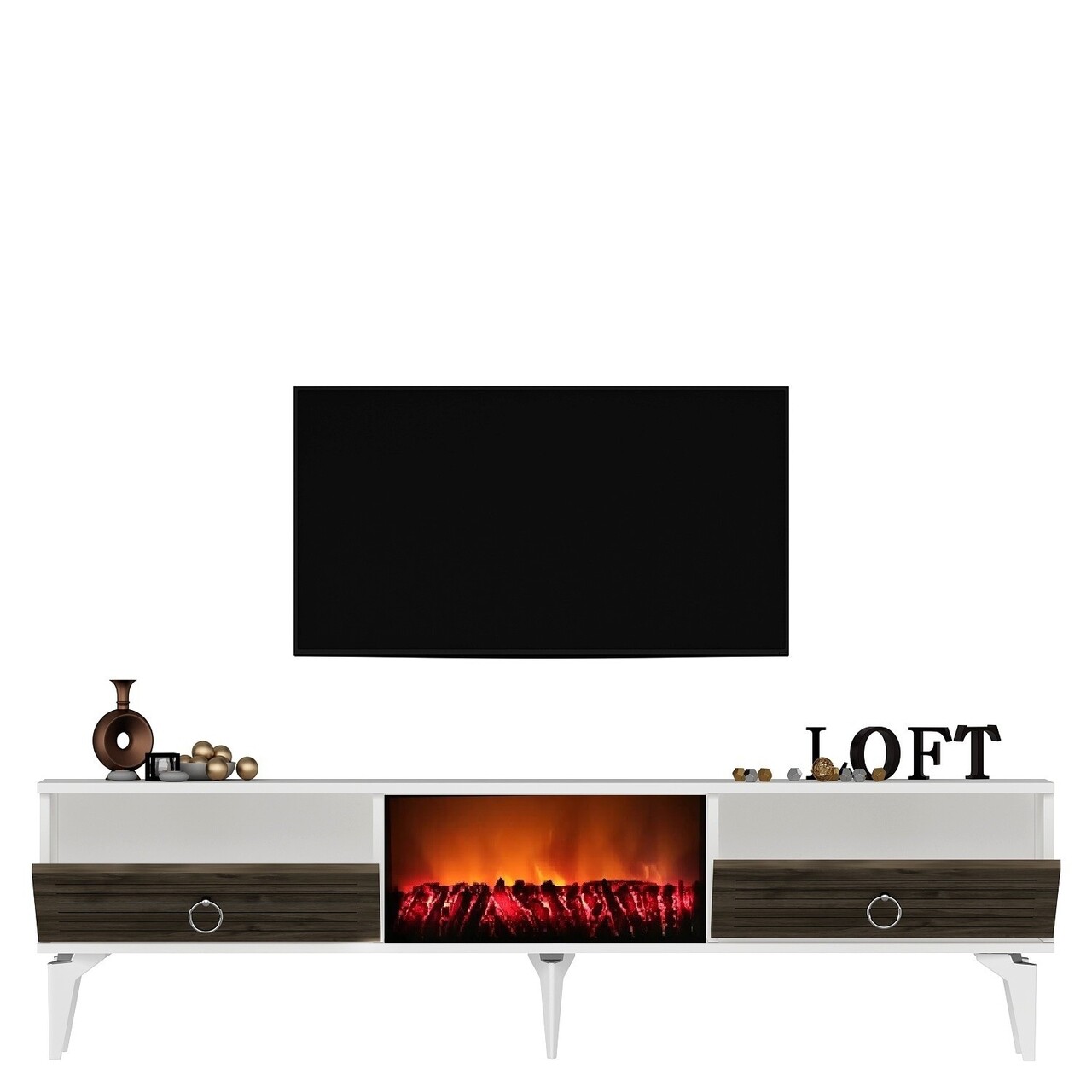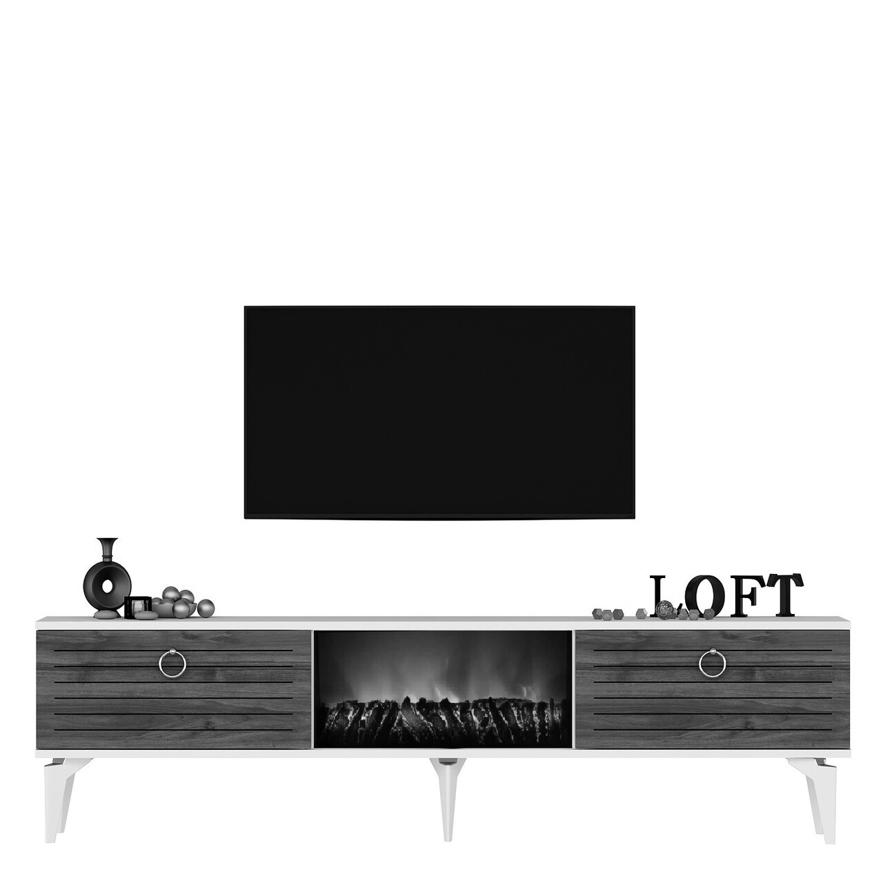 Comoda TV, Olivia, Arona Fireplace, 150x44.6x29.6 cm, PAL , Alb/Maro