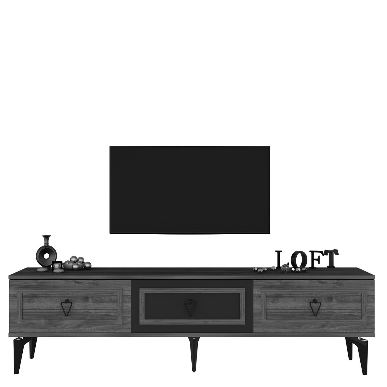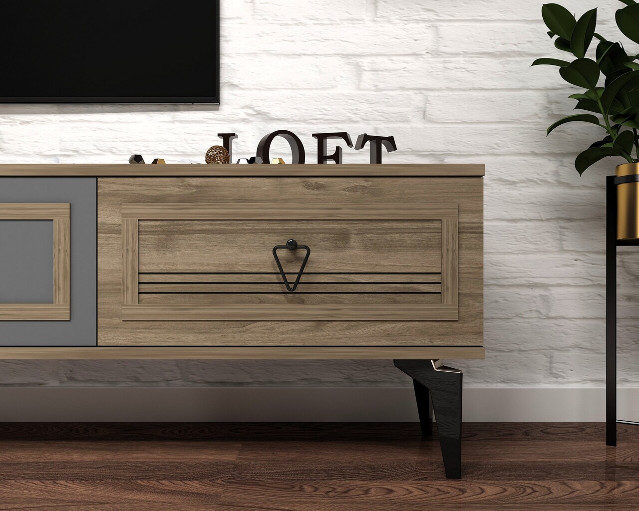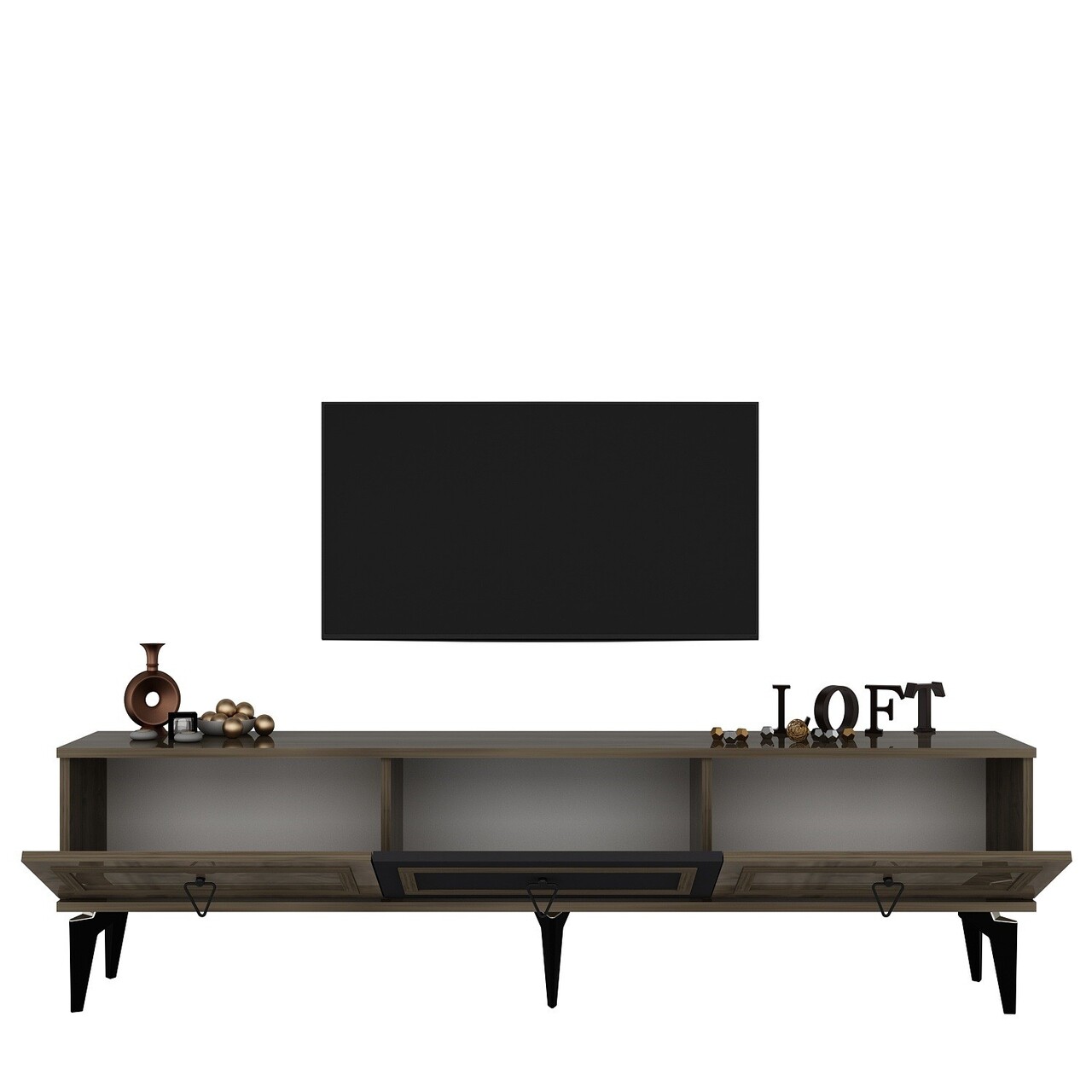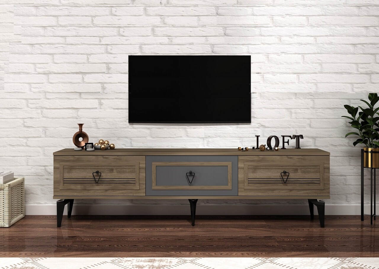 Comoda TV, Olivia, Asya, 180x44.6x29.6 cm, PAL , Nuc / Antracit