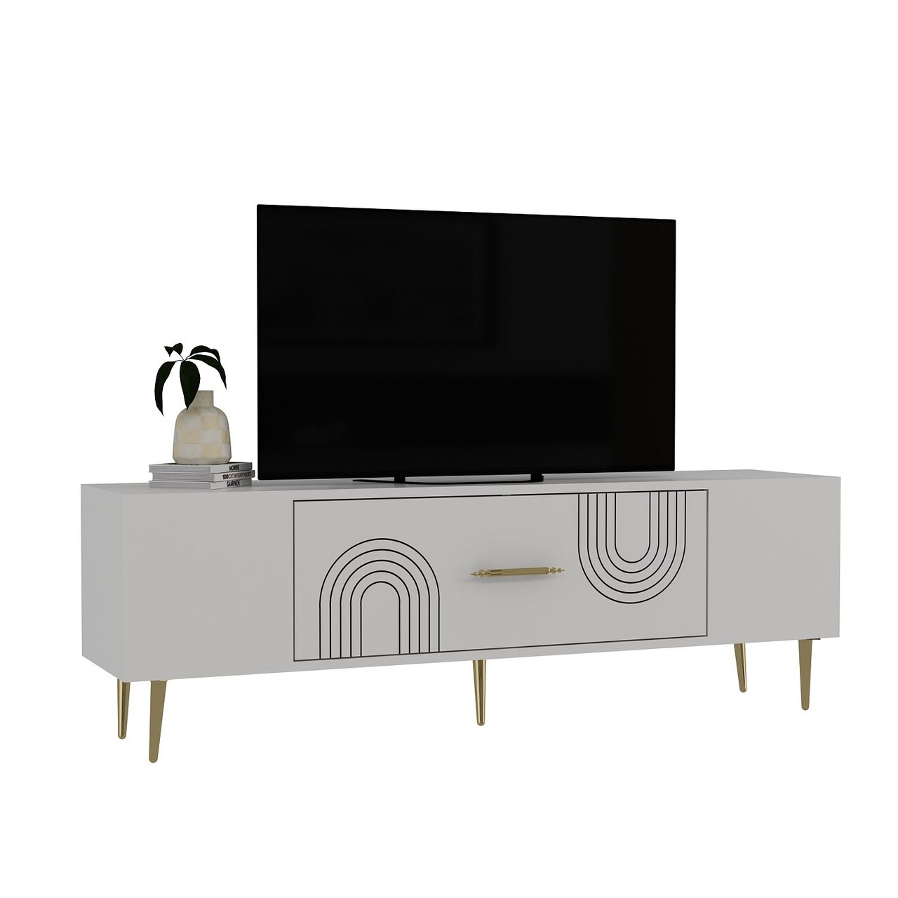Comoda TV, Olivia, Dekol2, 150x48 cm, PAL, Alb/Auriu