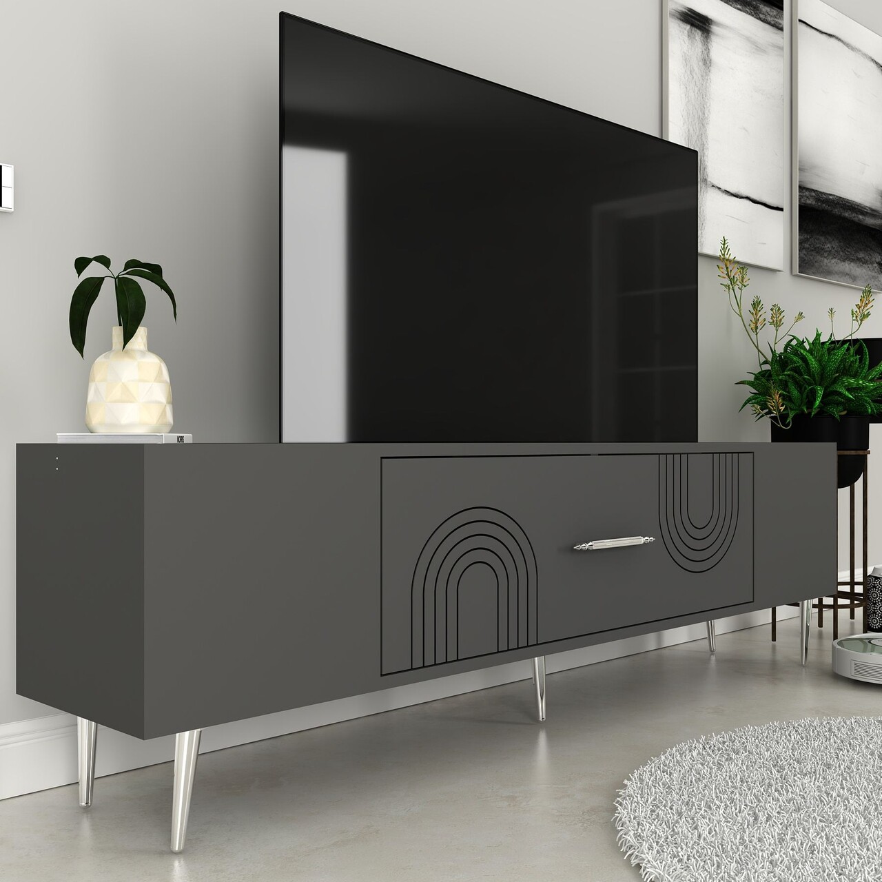 Comoda TV, Olivia, Dekol2, 150x48 cm, PAL, Antracit / Argintiu