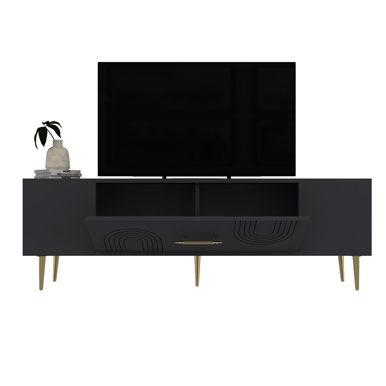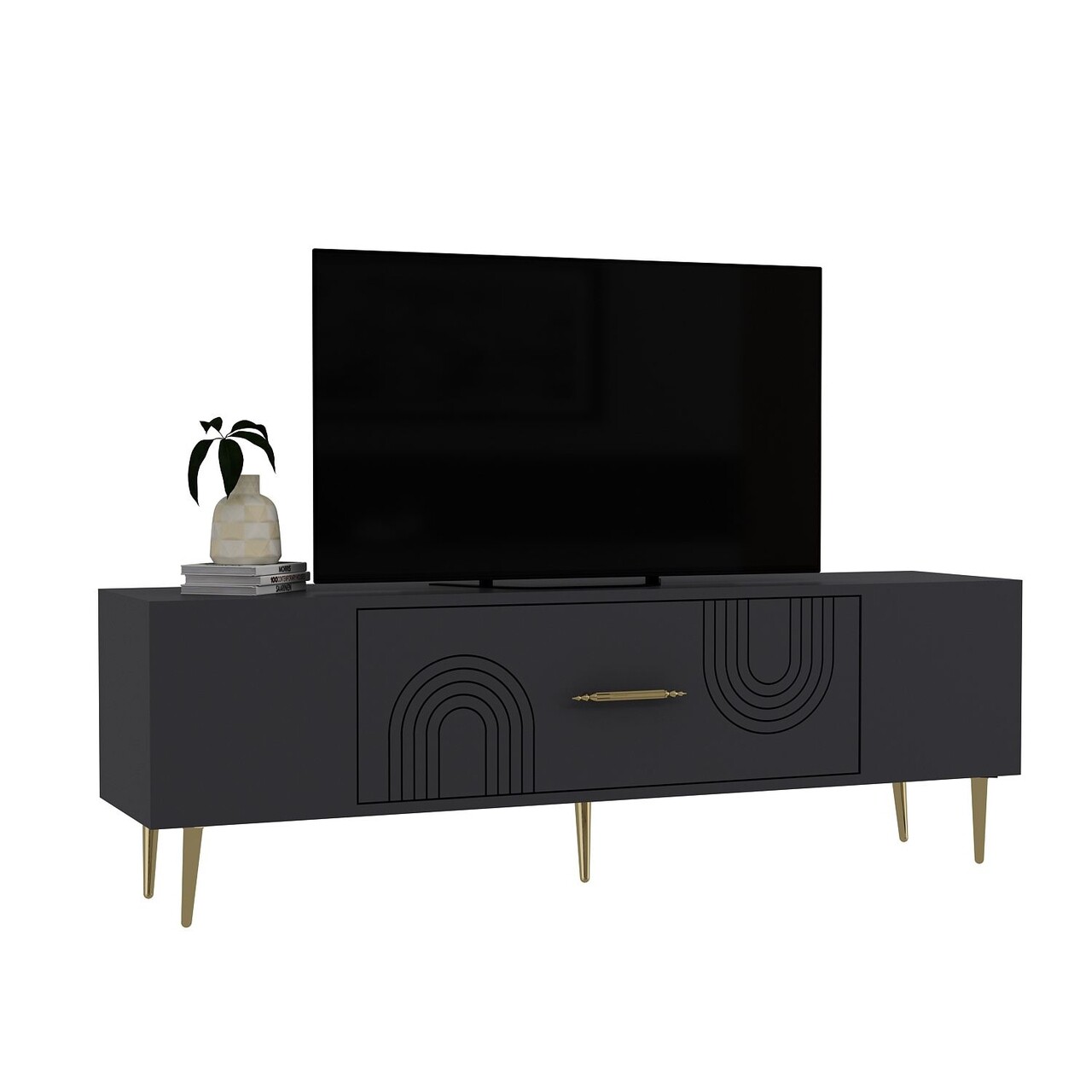 Comoda TV, Olivia, Dekol2, 150x48 cm, PAL, Antracit / Aur