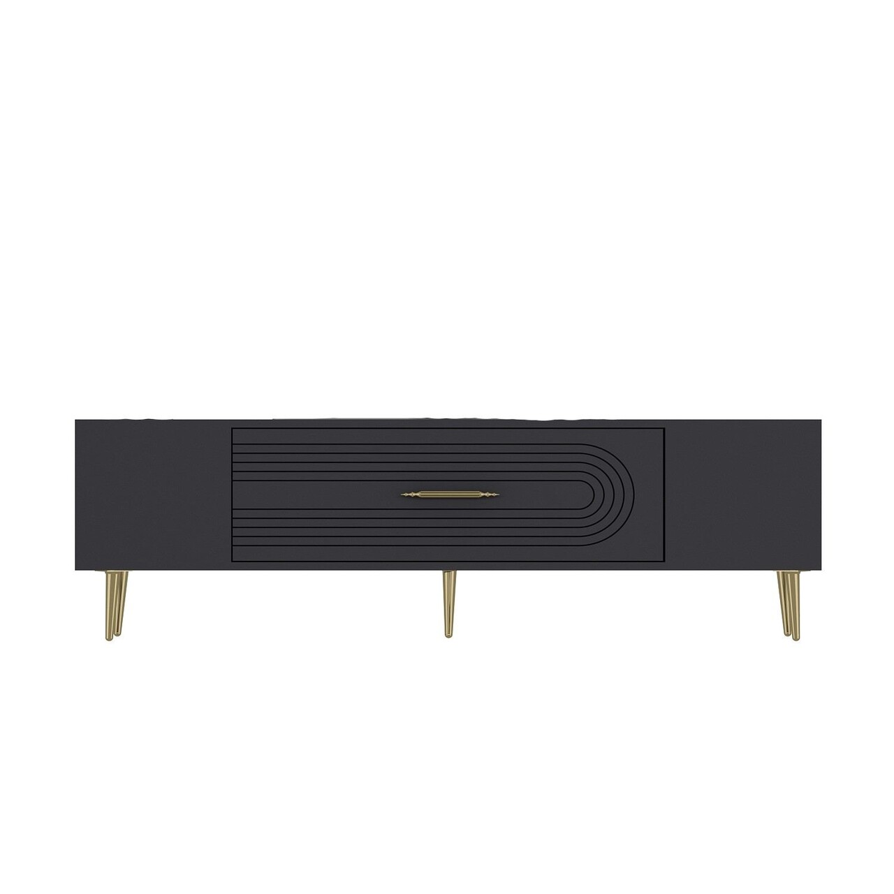 Comoda TV, Olivia, Dekol3, 150x48 cm, PAL, Antracit / Aur