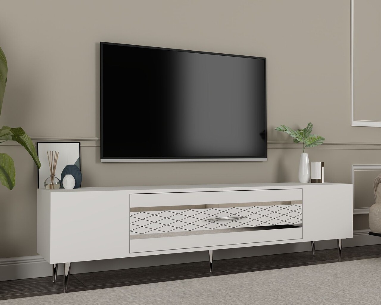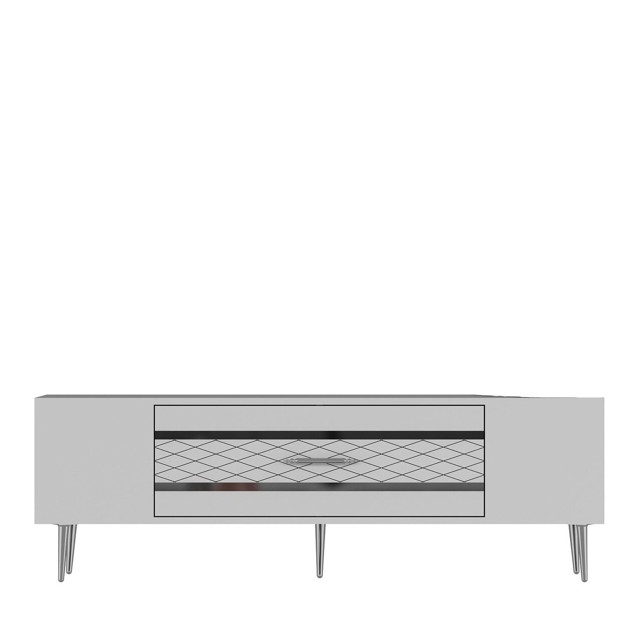 Comoda TV, Olivia, Dekolp2, 150x48 cm, PAL, Alb / Argintiu
