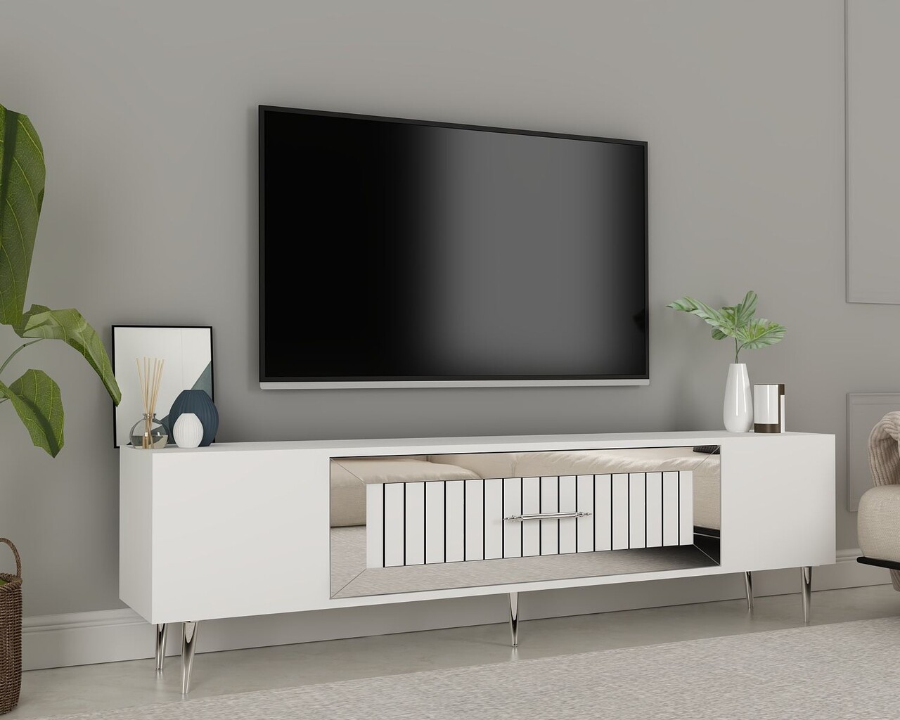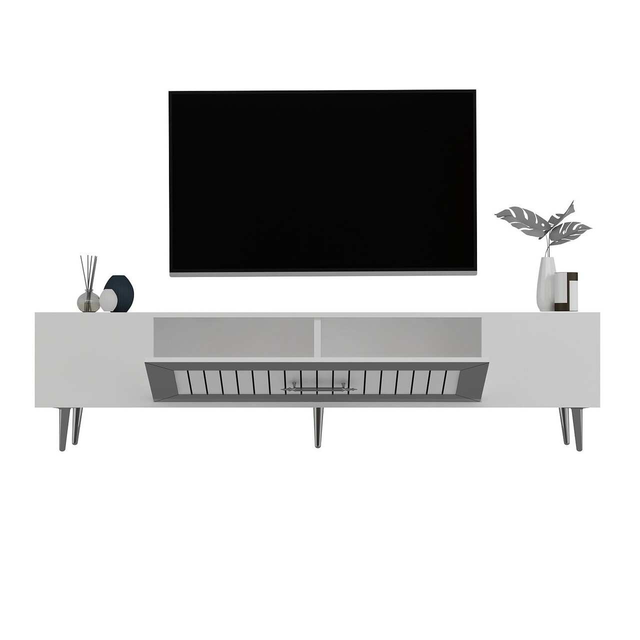 Comoda TV, Olivia, Dekolp3, 150x48 cm, PAL, Alb / Argintiu