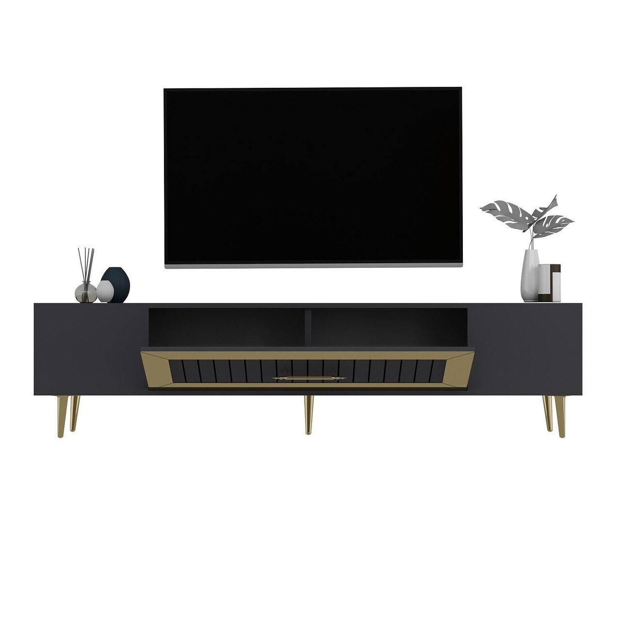 Comoda TV, Olivia, Dekolp3, 150x48 cm, PAL, Antracit / Aur