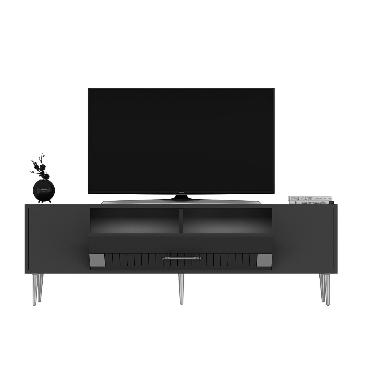 Comoda TV, Olivia, Dekolp4, 150x48 cm, PAL, Antracit / Argintiu