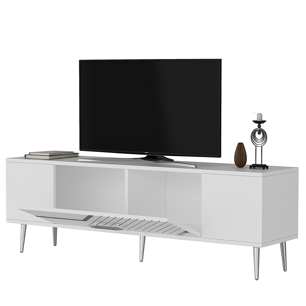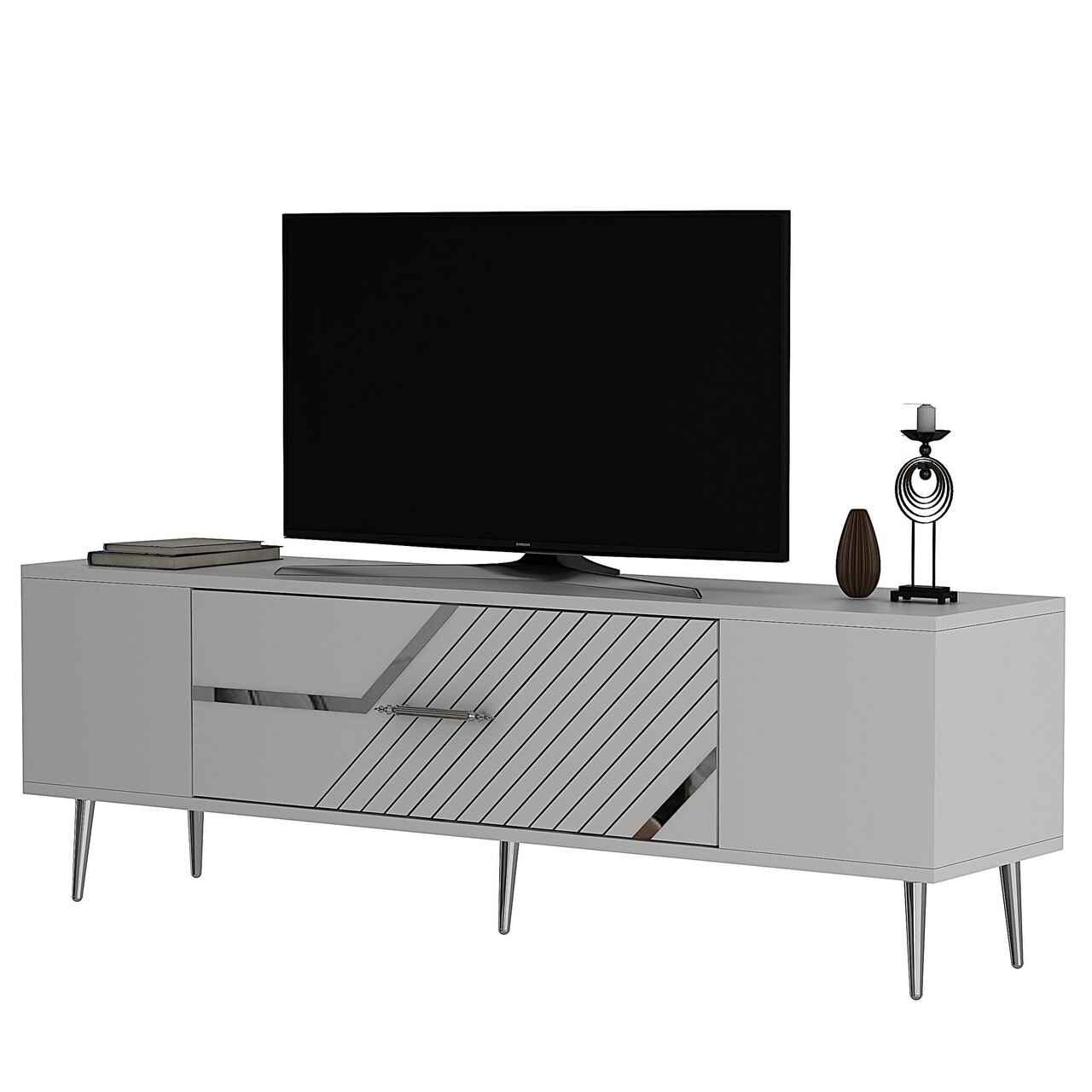 Comoda TV, Olivia, Dekolp5, 150x48 cm, PAL, Alb / Argintiu