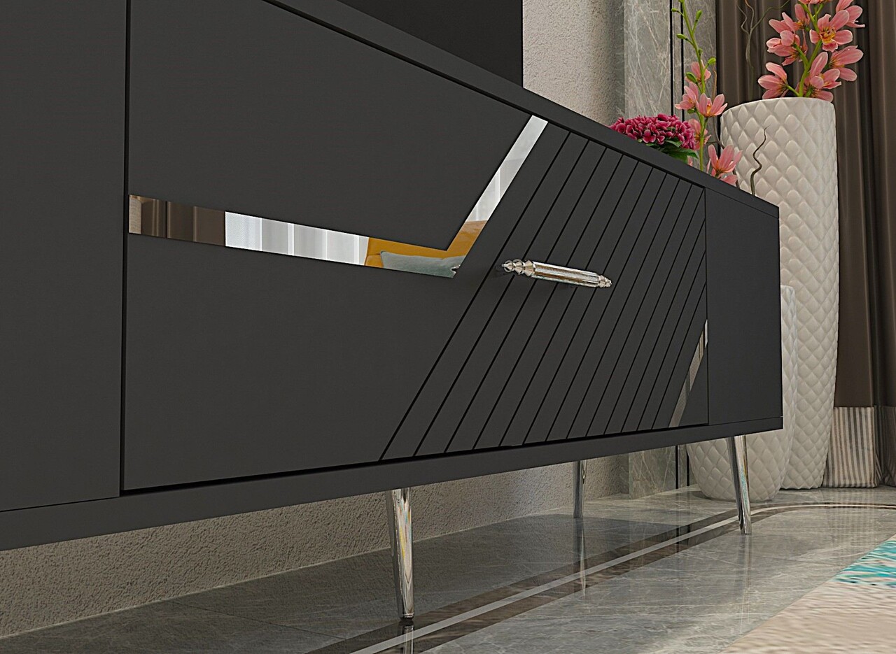 Comoda TV, Olivia, Dekolp5, 150x48 cm, PAL, Antracit / Argintiu