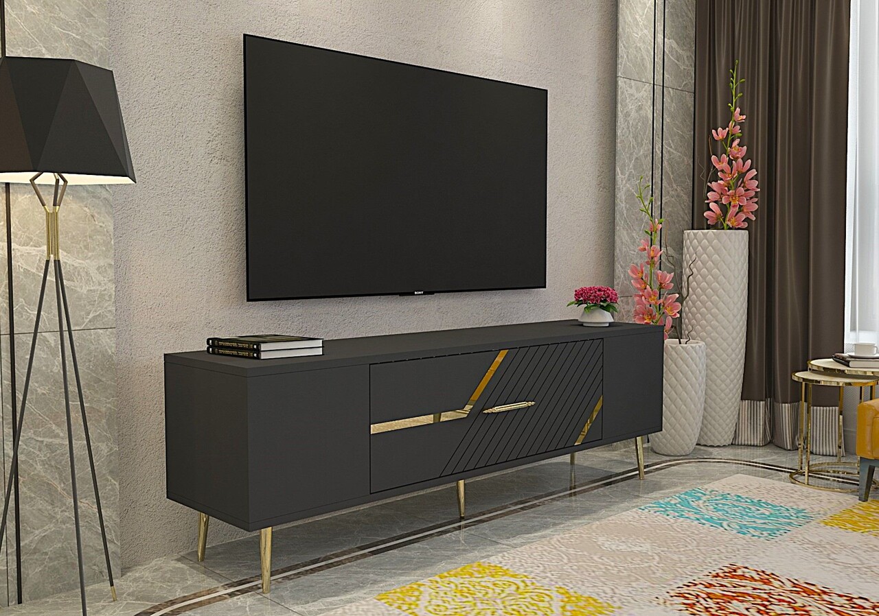 Comoda TV, Olivia, Dekolp5, 150x48 cm, PAL, Antracit / Aur