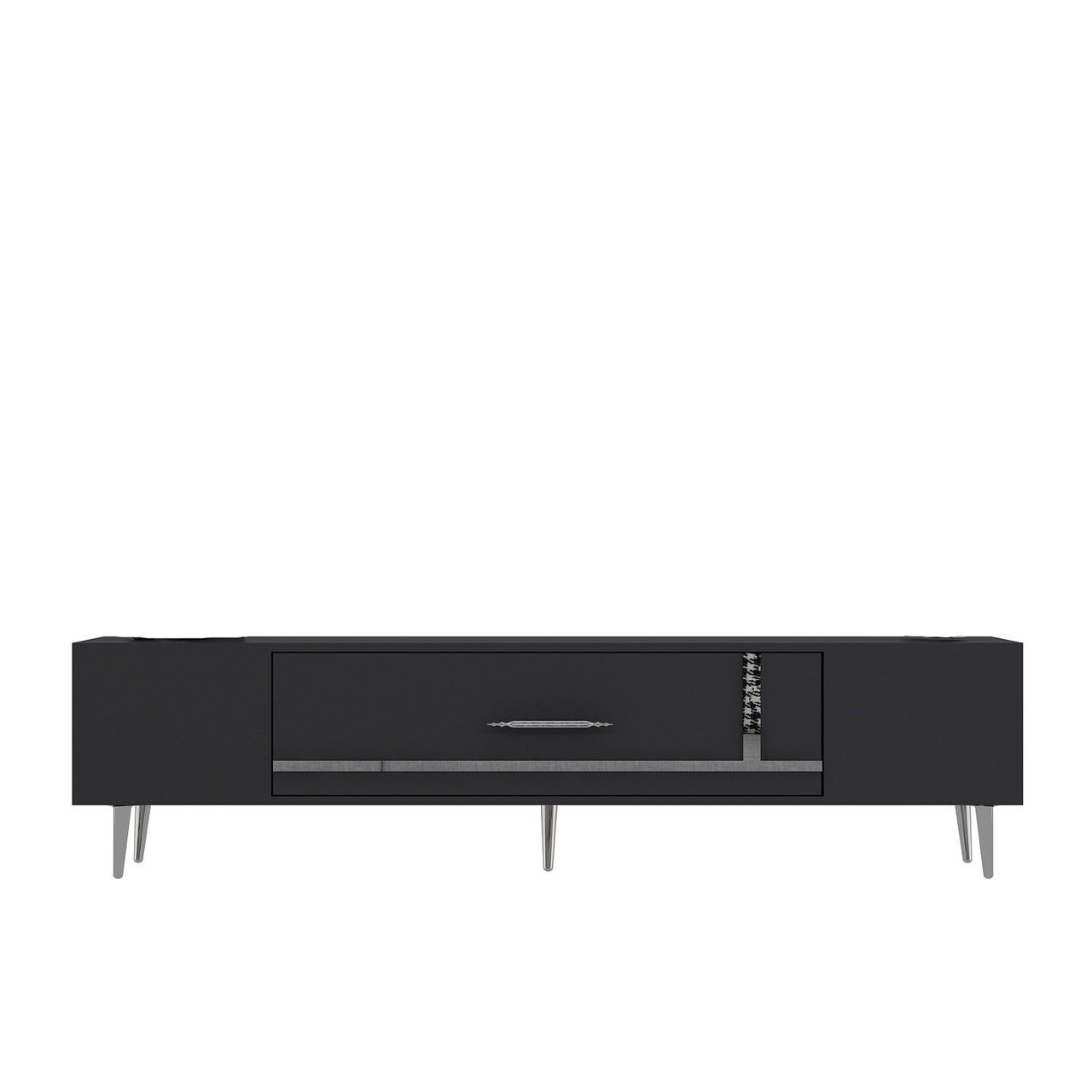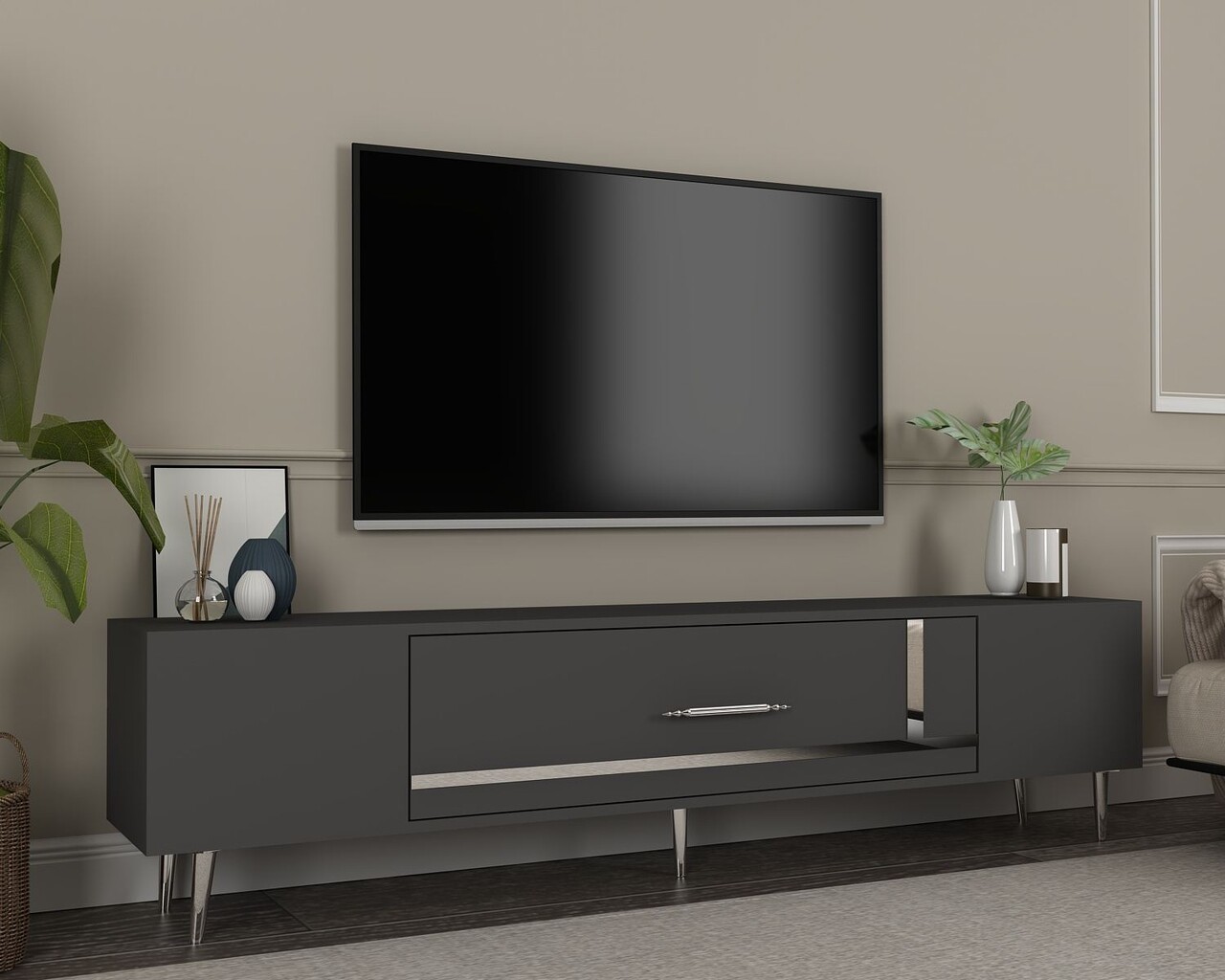 Comoda TV, Olivia, Dekop1, 150x48 cm, PAL, Antracit / Argintiu