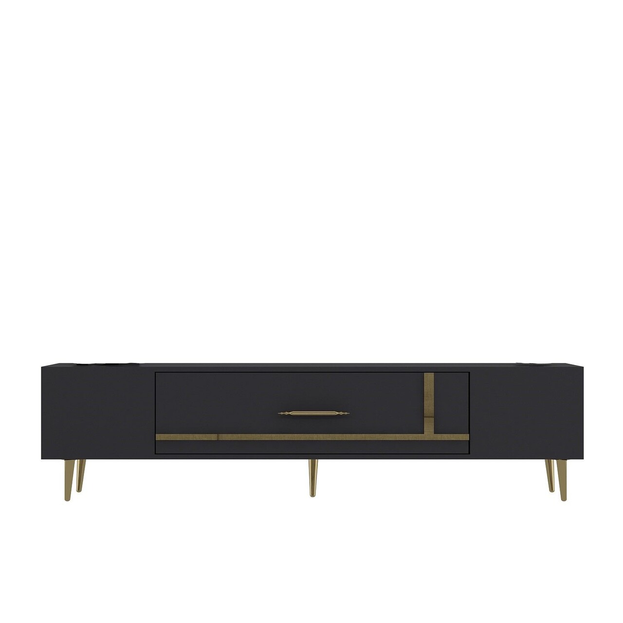 Comoda TV, Olivia, Dekop1, 150x48 cm, PAL, Antracit / Aur