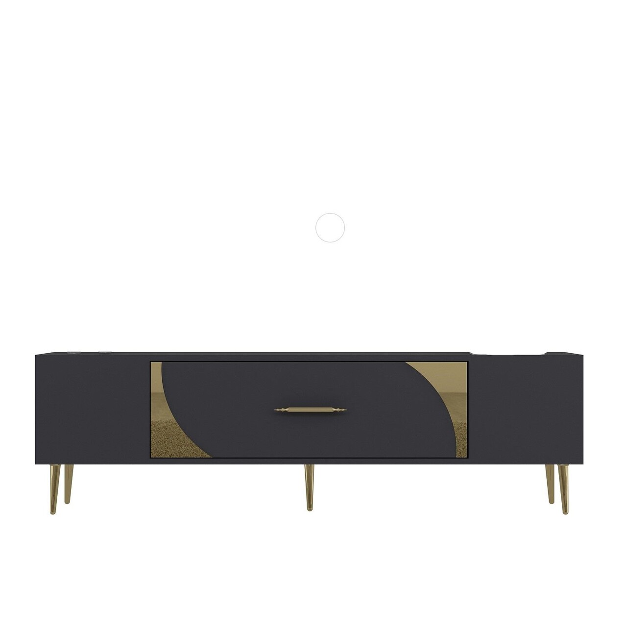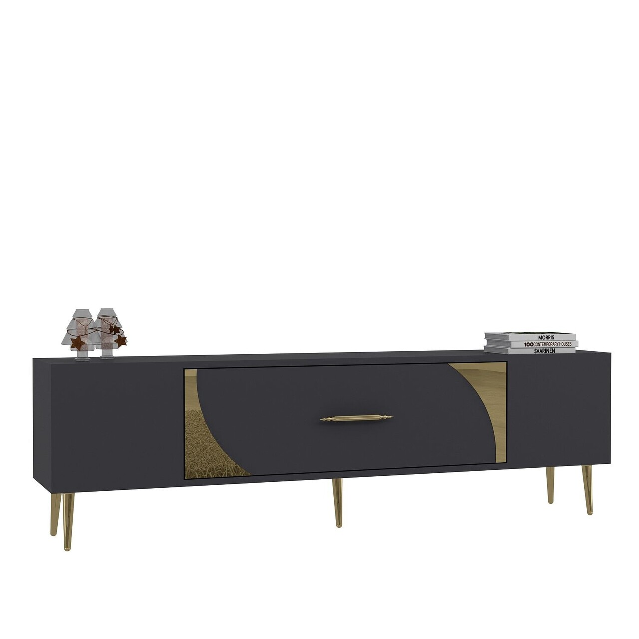 Comoda TV, Olivia, Dekop2, 150x48 cm, PAL, Antracit / Aur