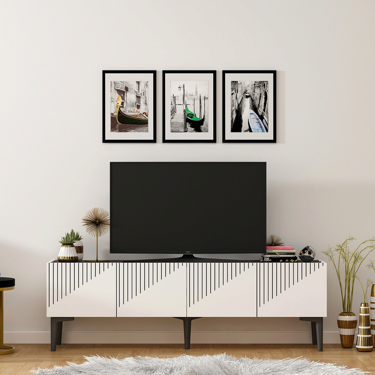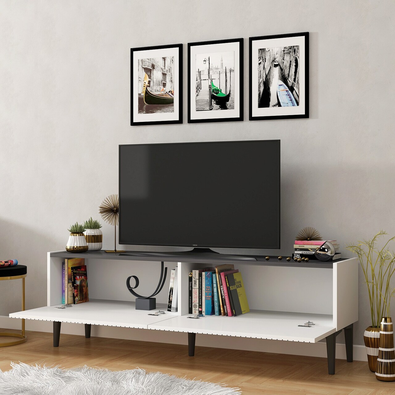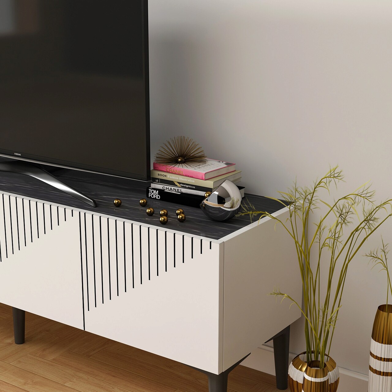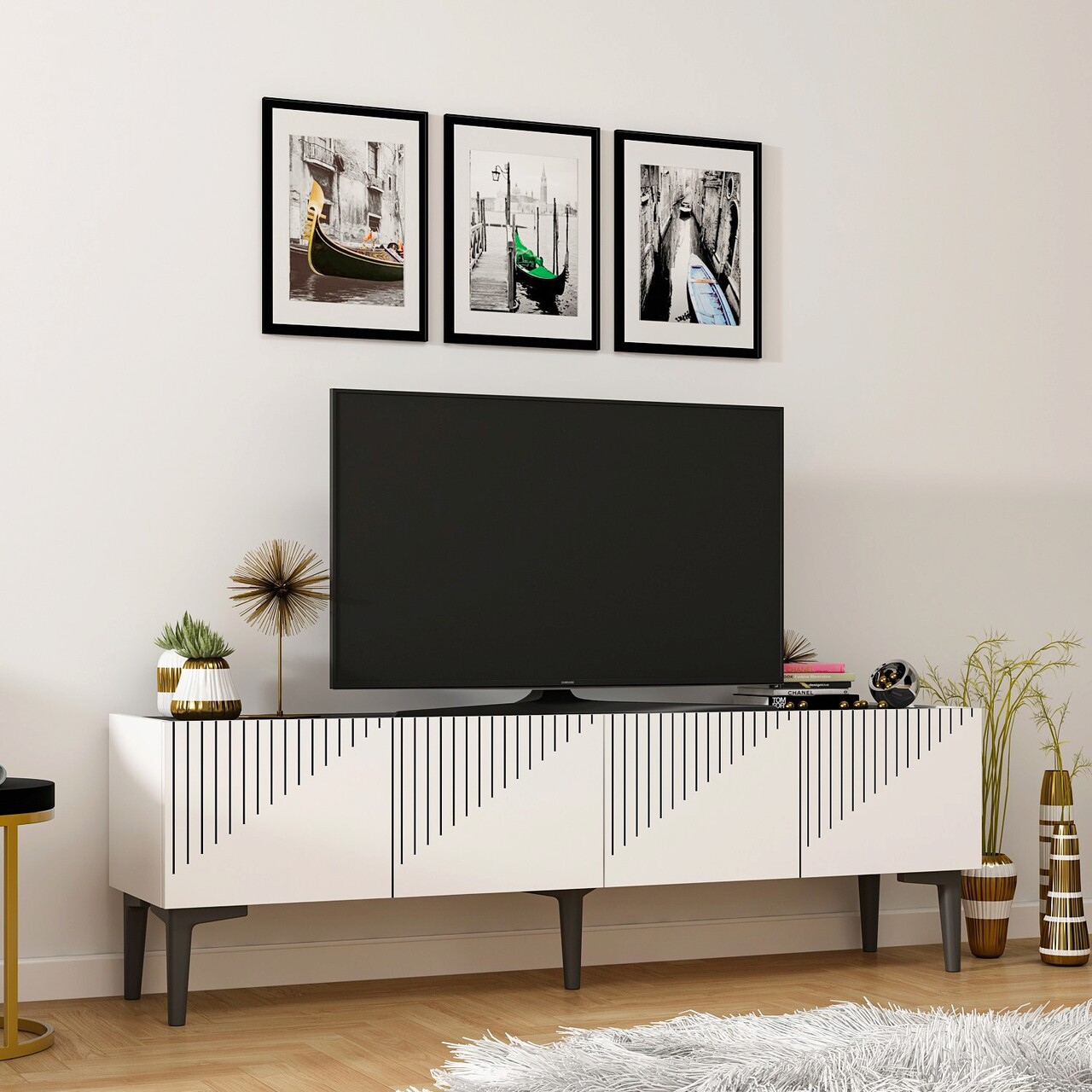 Comoda TV, Olivia, Draw, 154x45x37 cm, PAL, Alb/Negru