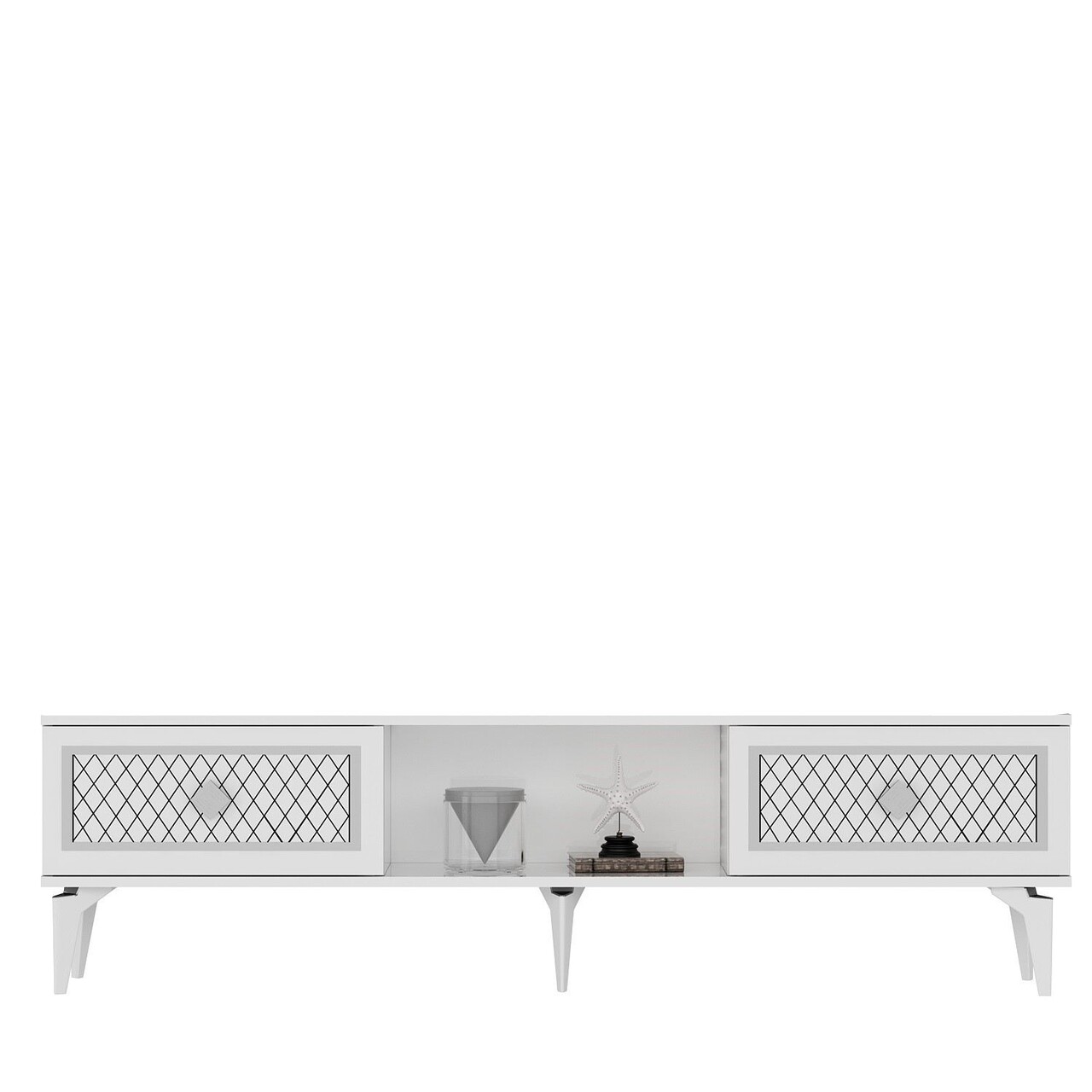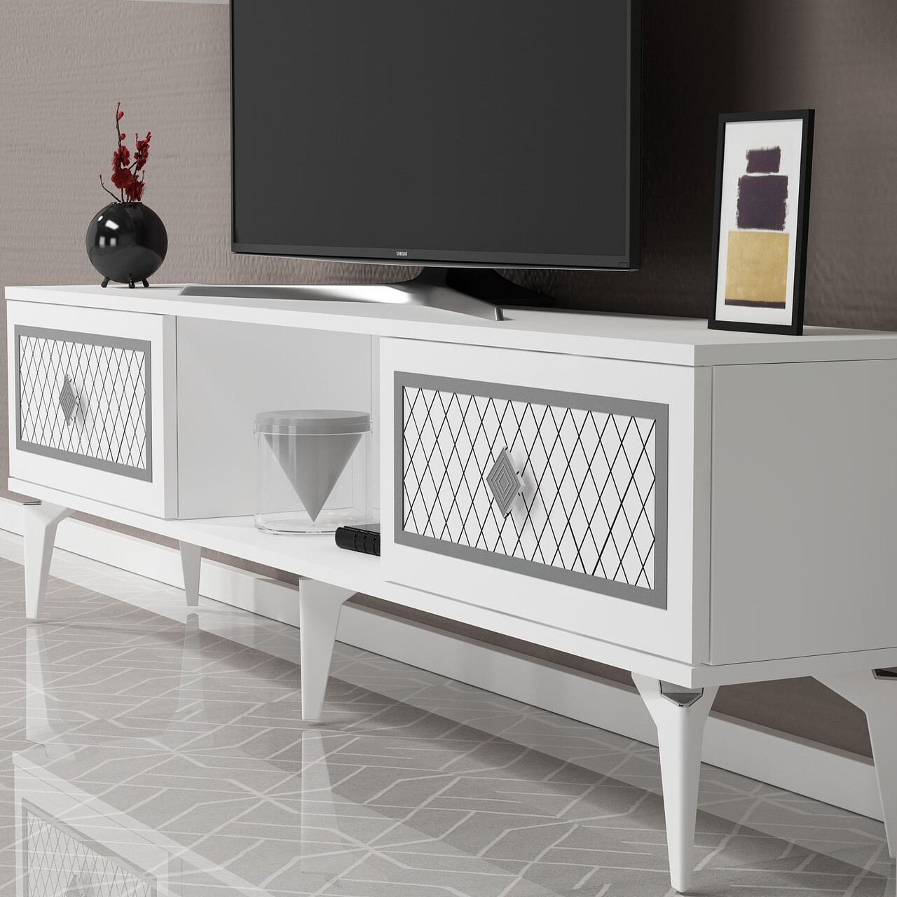 Comoda TV, Olivia, Herry, 150x44 cm, PAL, Alb / Argintiu