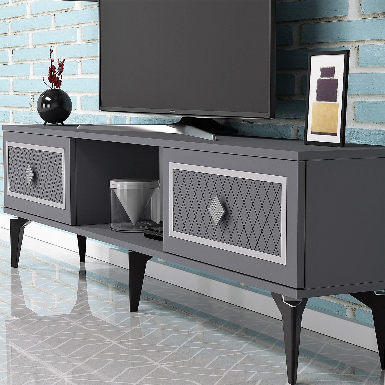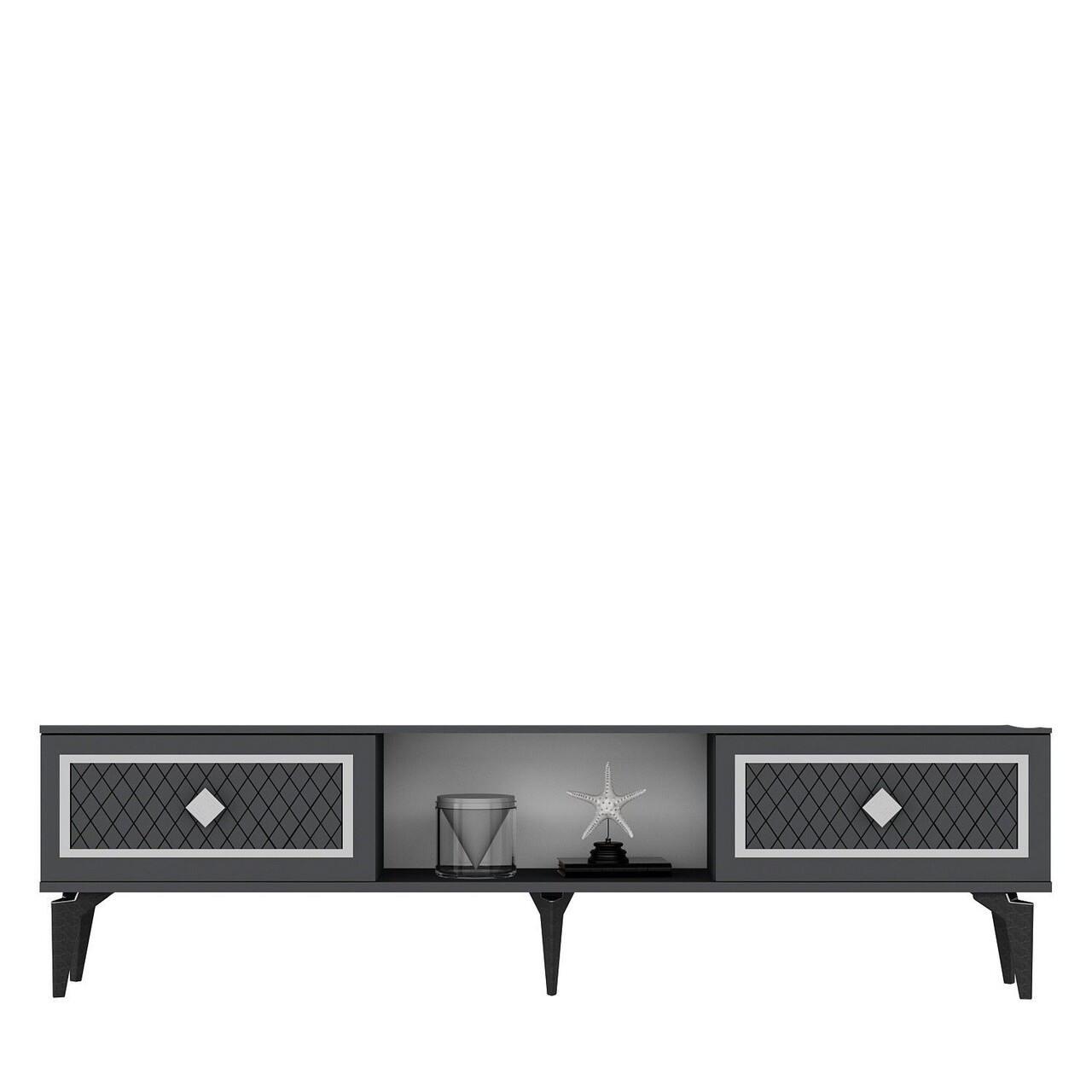 Comoda TV, Olivia, Herry, 150x44 cm, PAL, Antracit / Argintiu