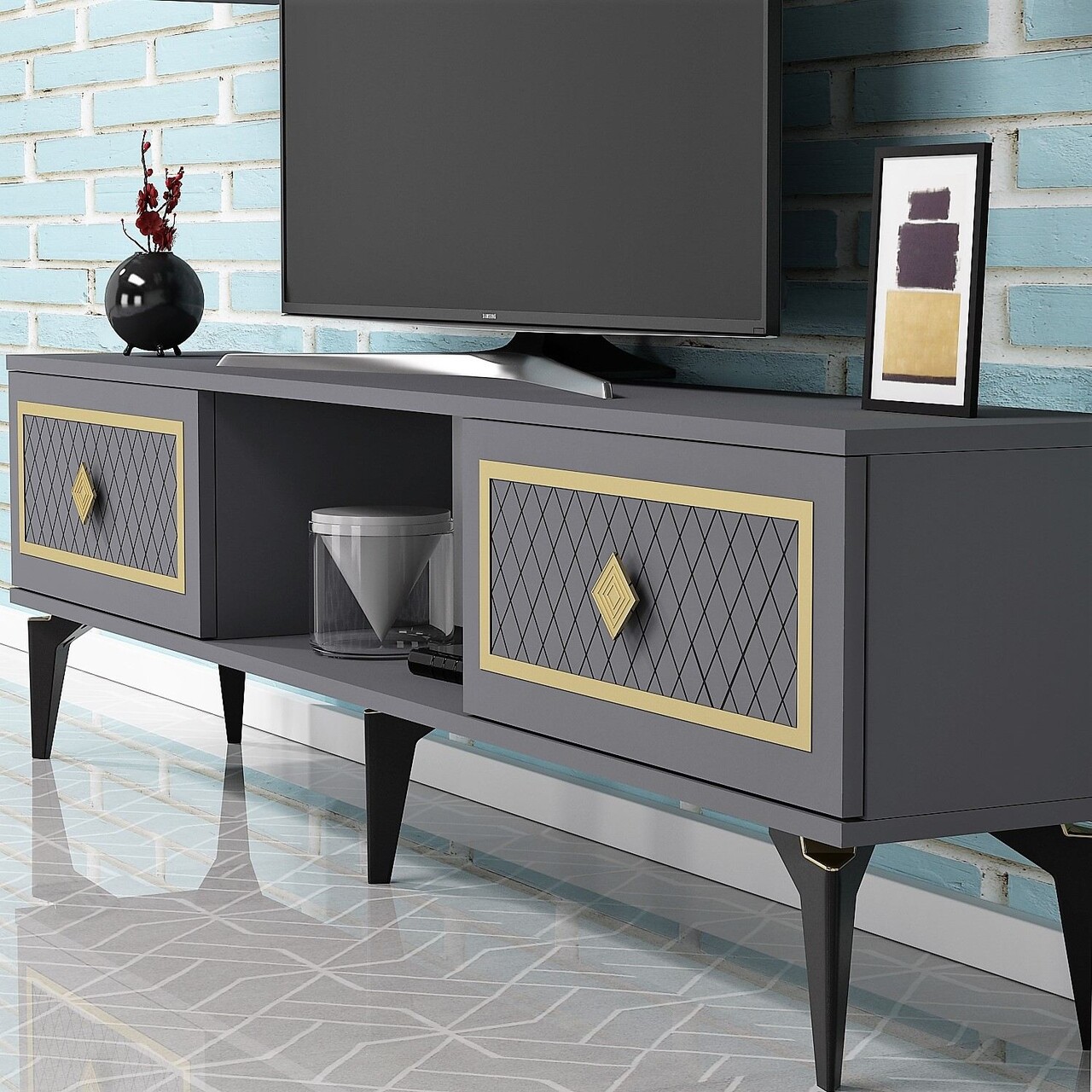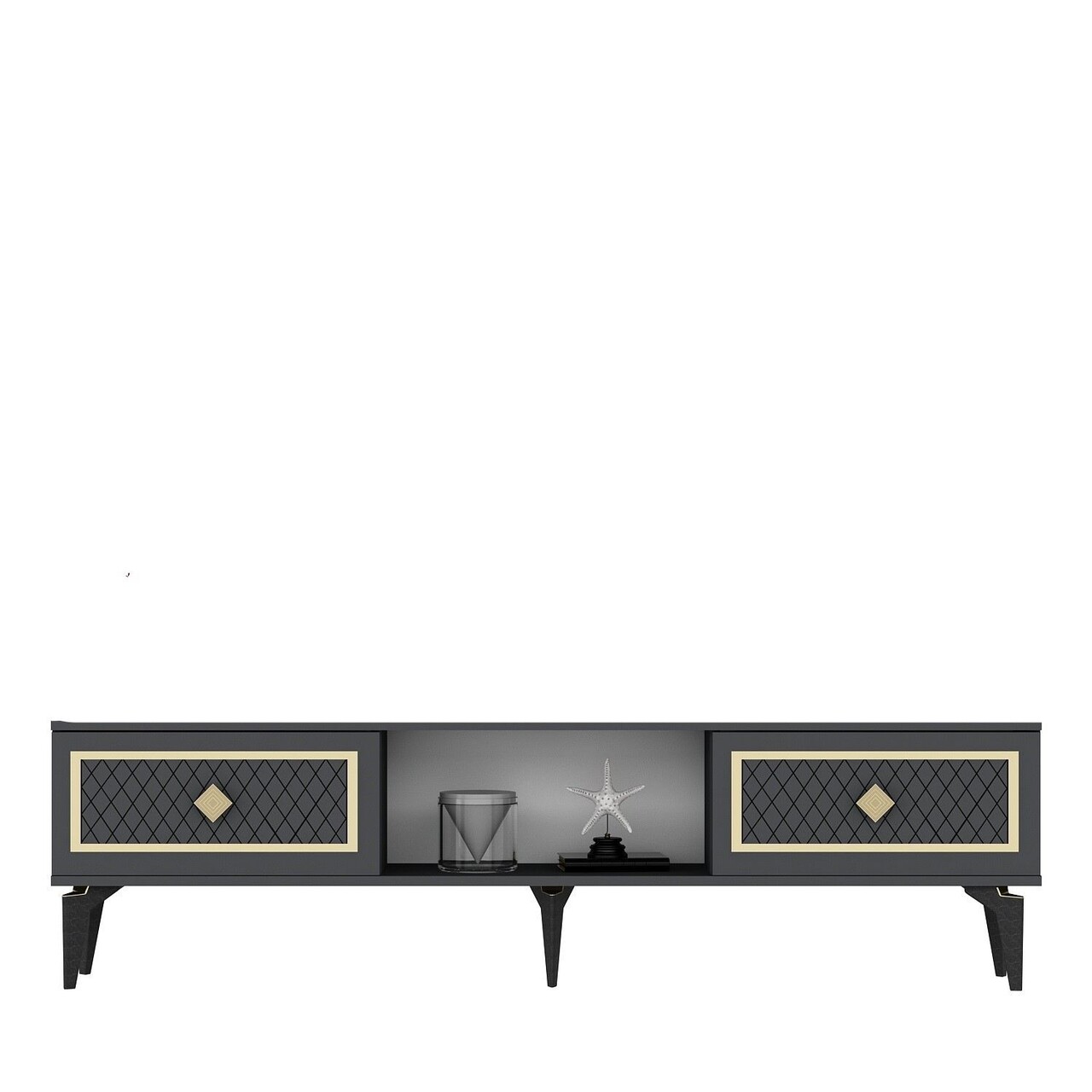 Comoda TV, Olivia, Herry, 150x44 cm, PAL, Antracit / Aur