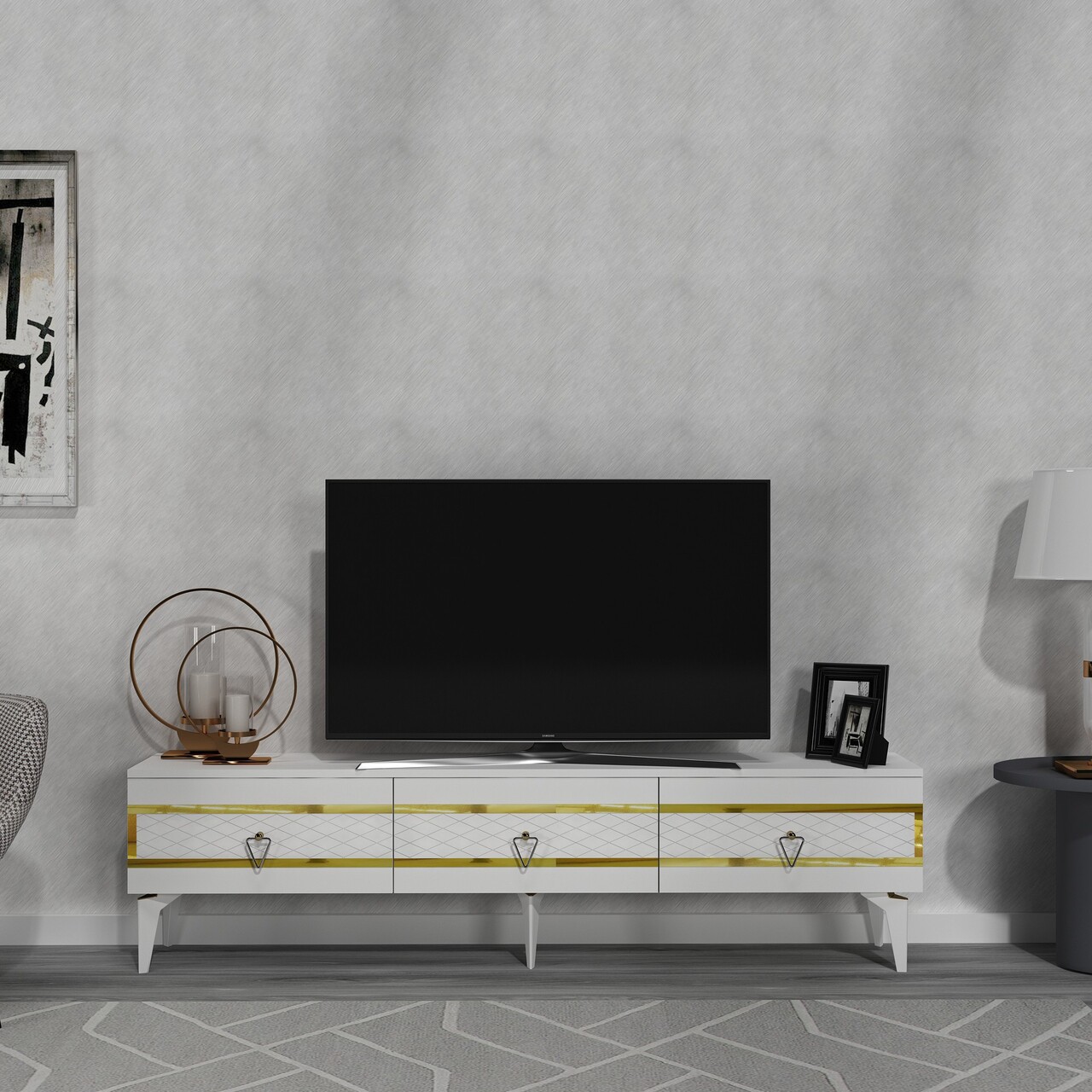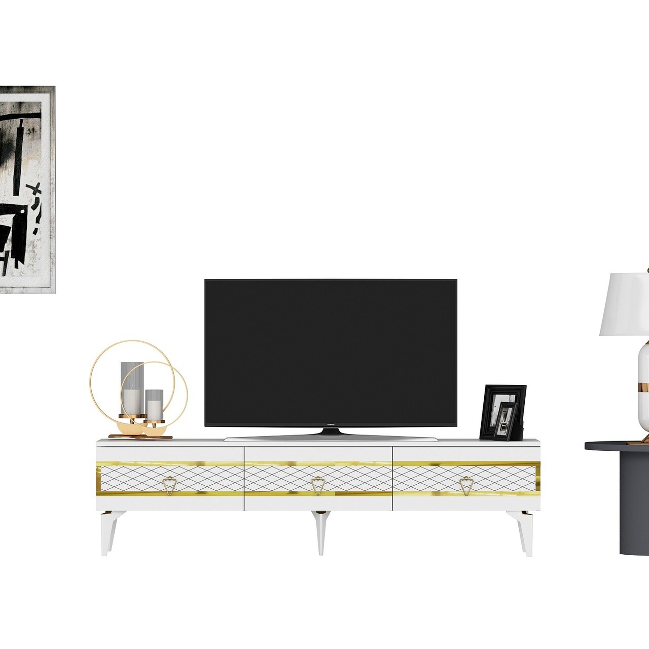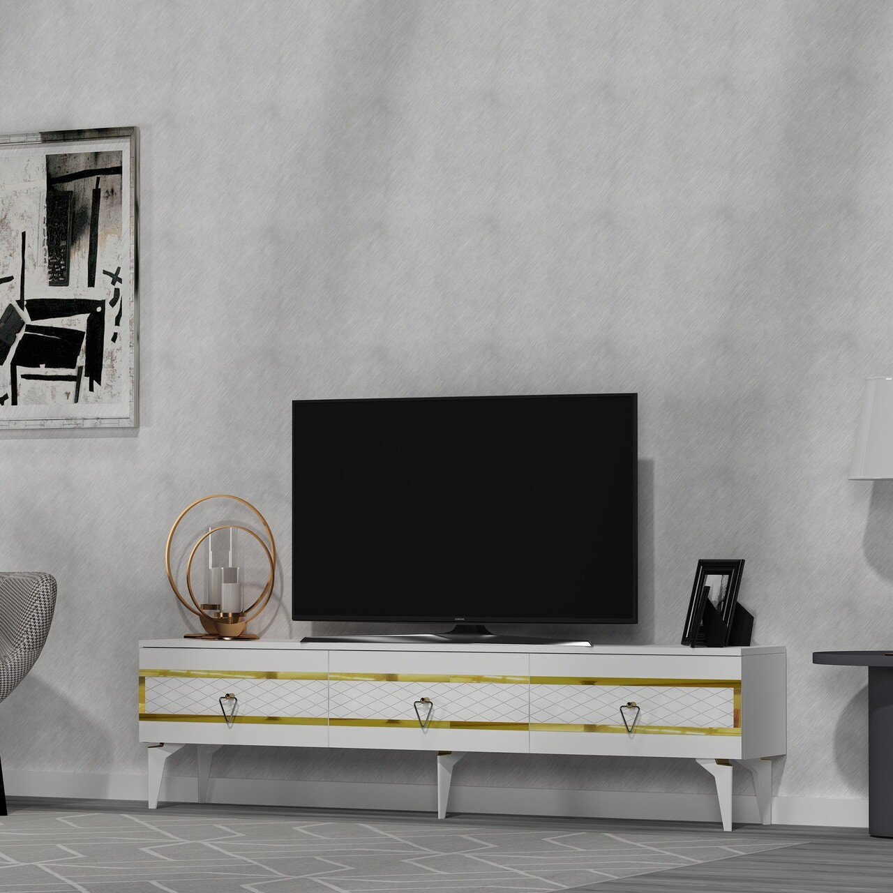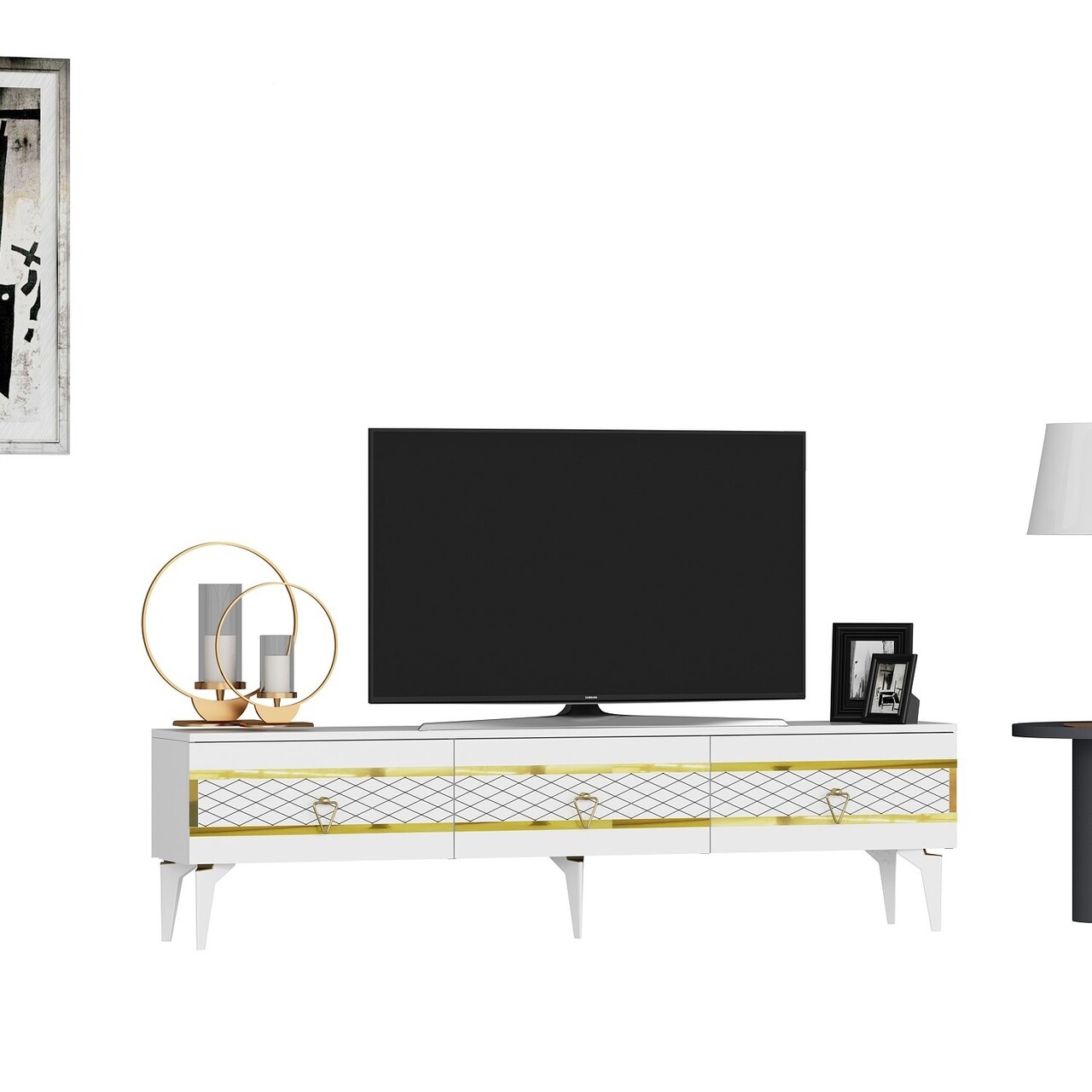 Comoda TV, Olivia, Ipek, 180x44.6x29.6 cm, PAL , Alb/Auriu