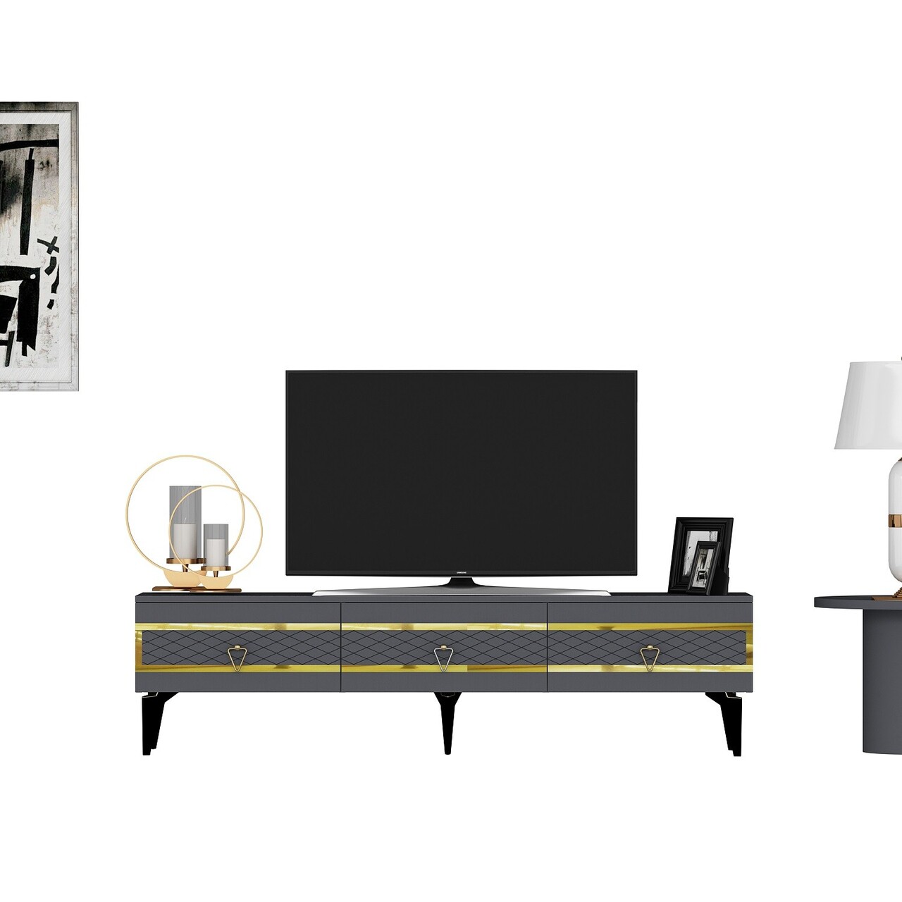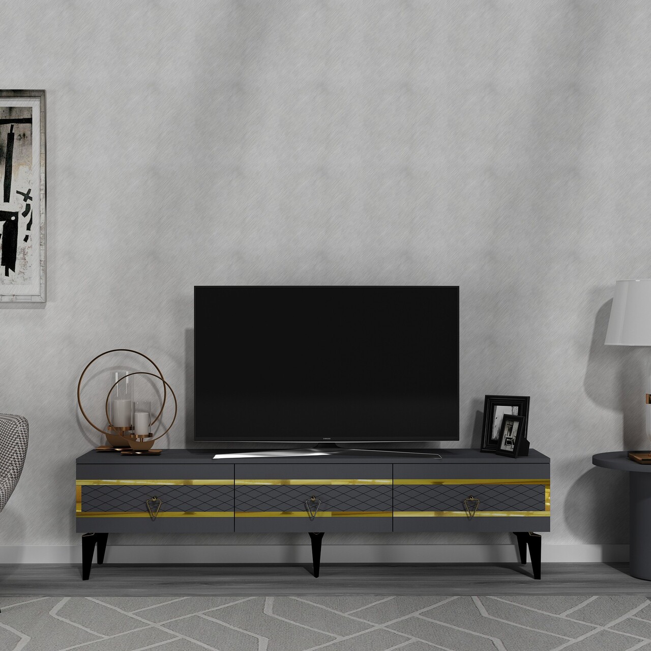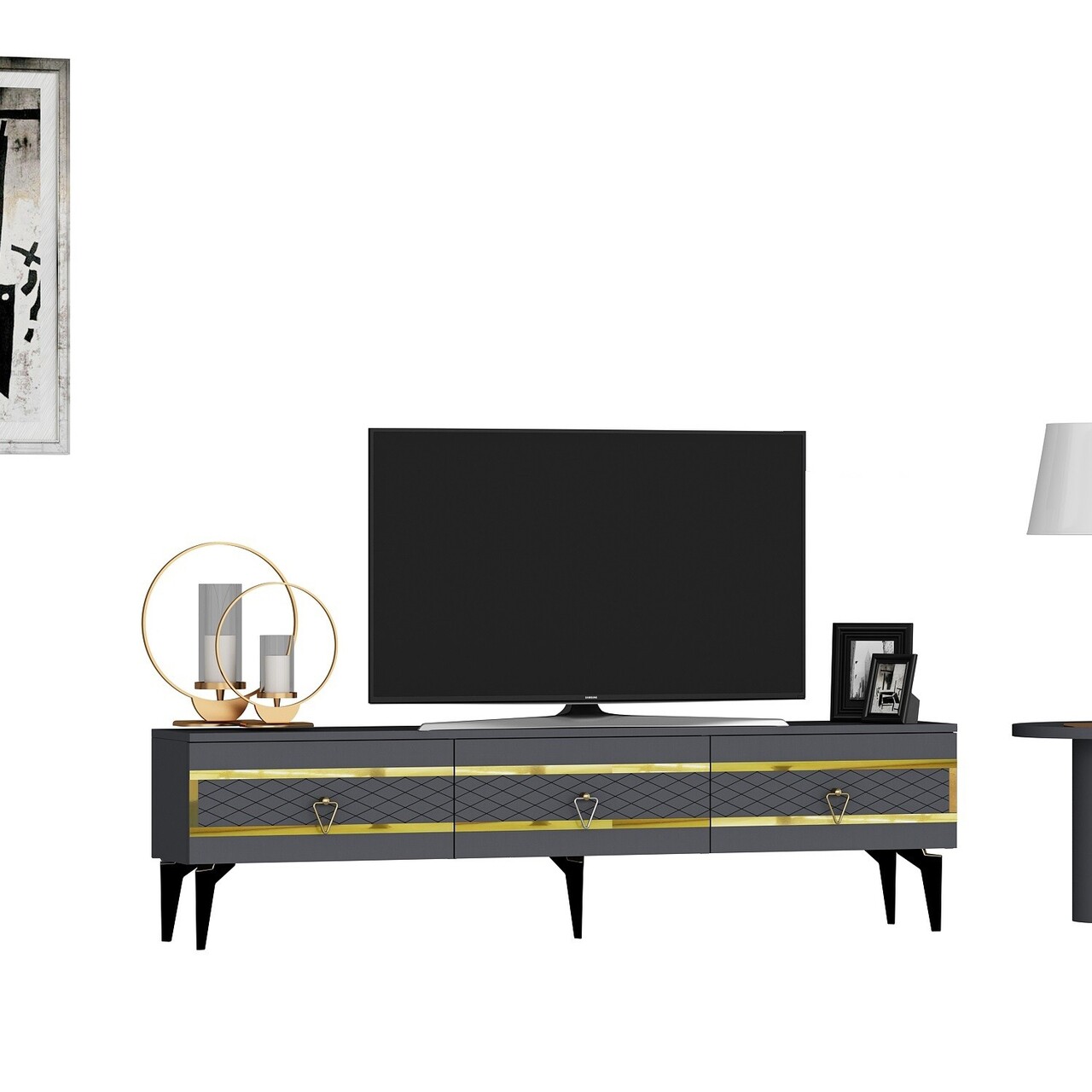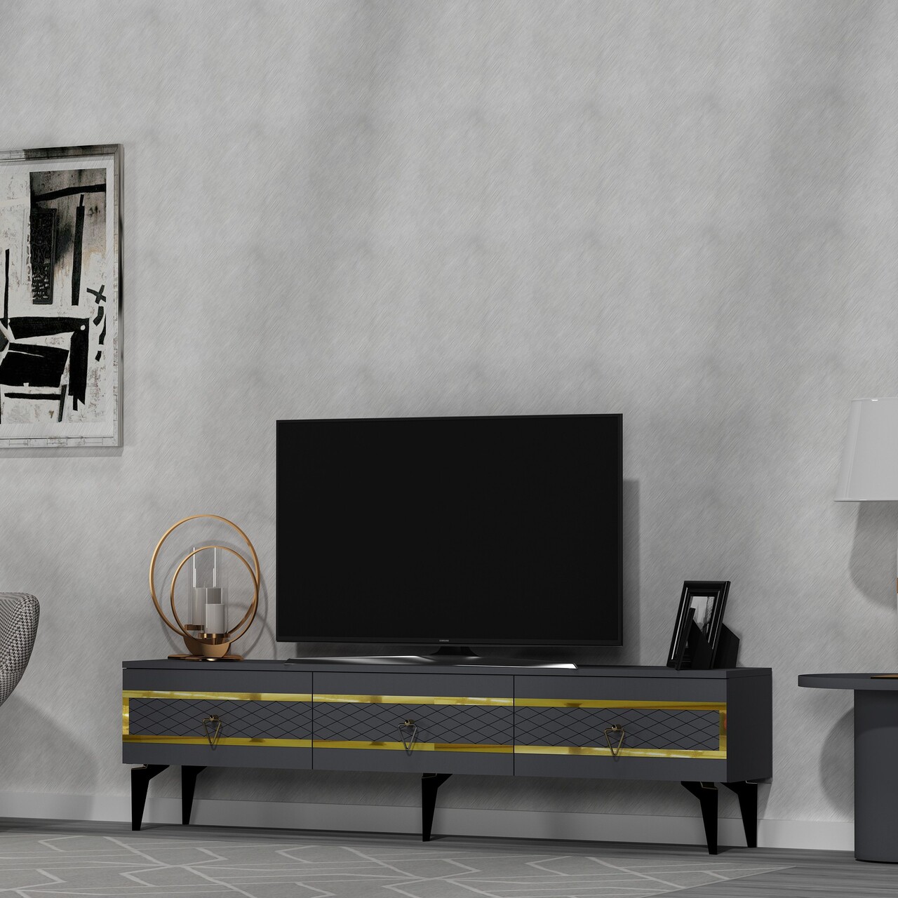 Comoda TV, Olivia, Ipek, 180x44.6x29.6 cm, PAL , Antracit / Aur