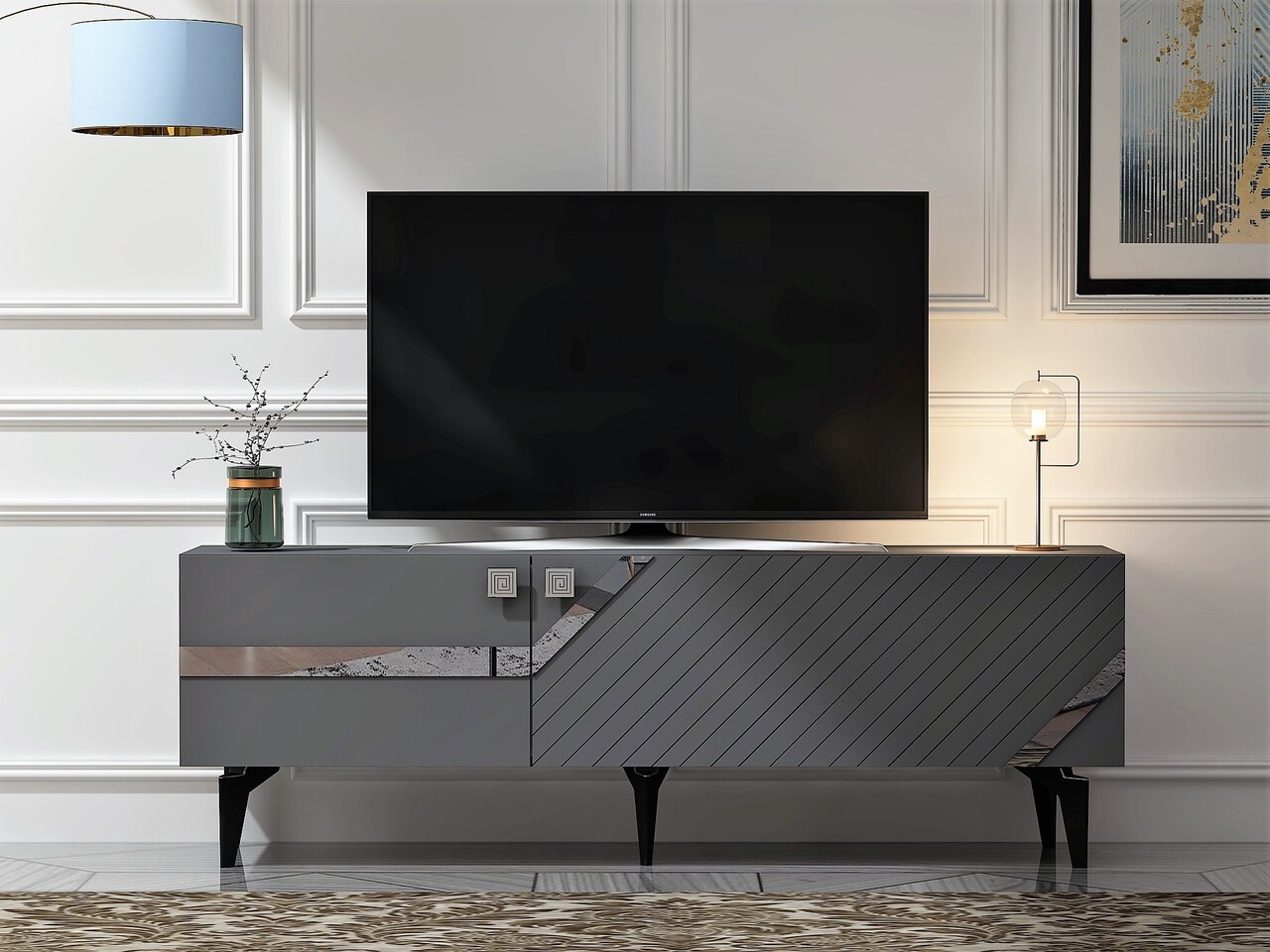 Comoda TV, Olivia, Iris, PAL , Antracit / Argintiu