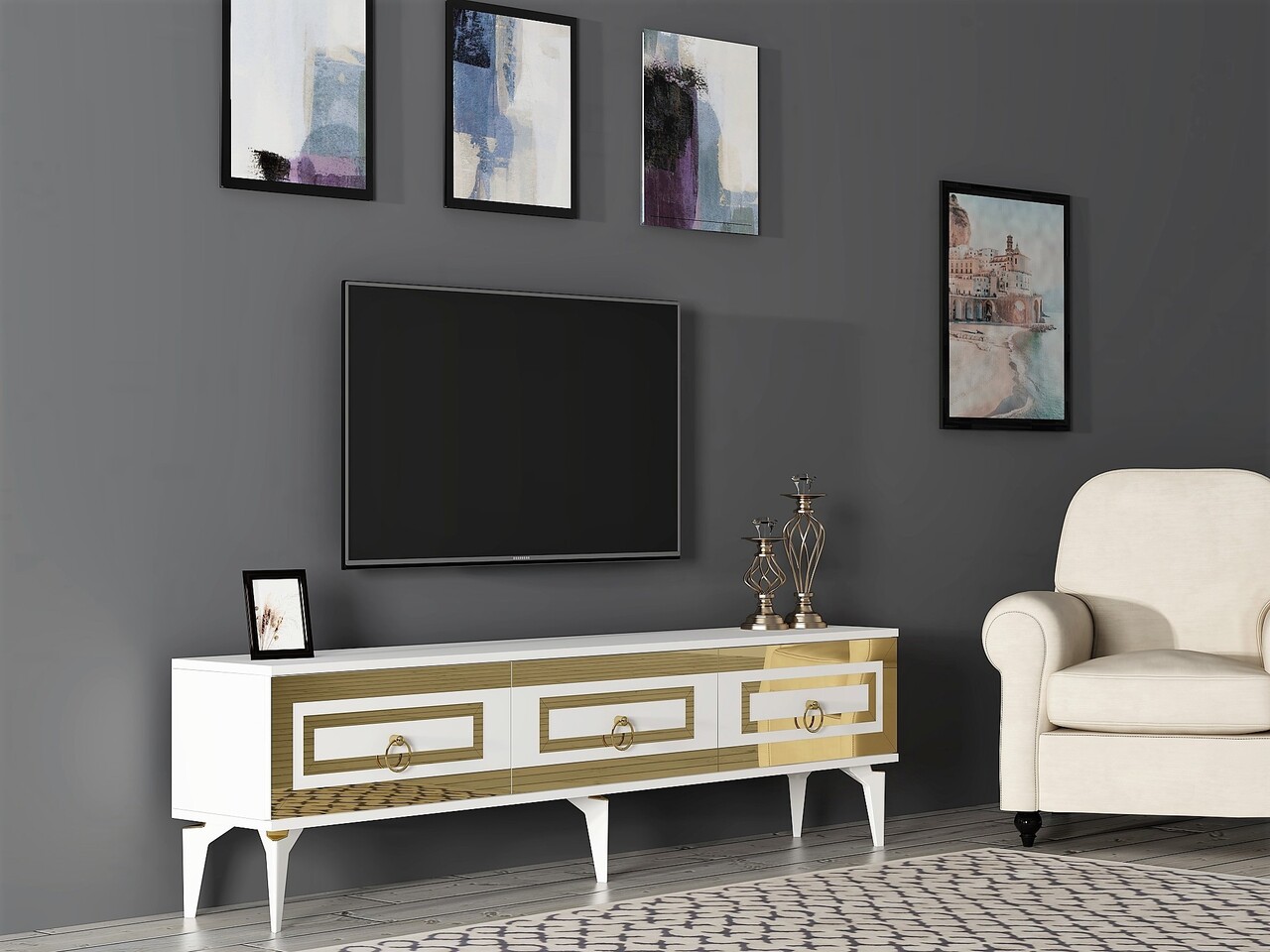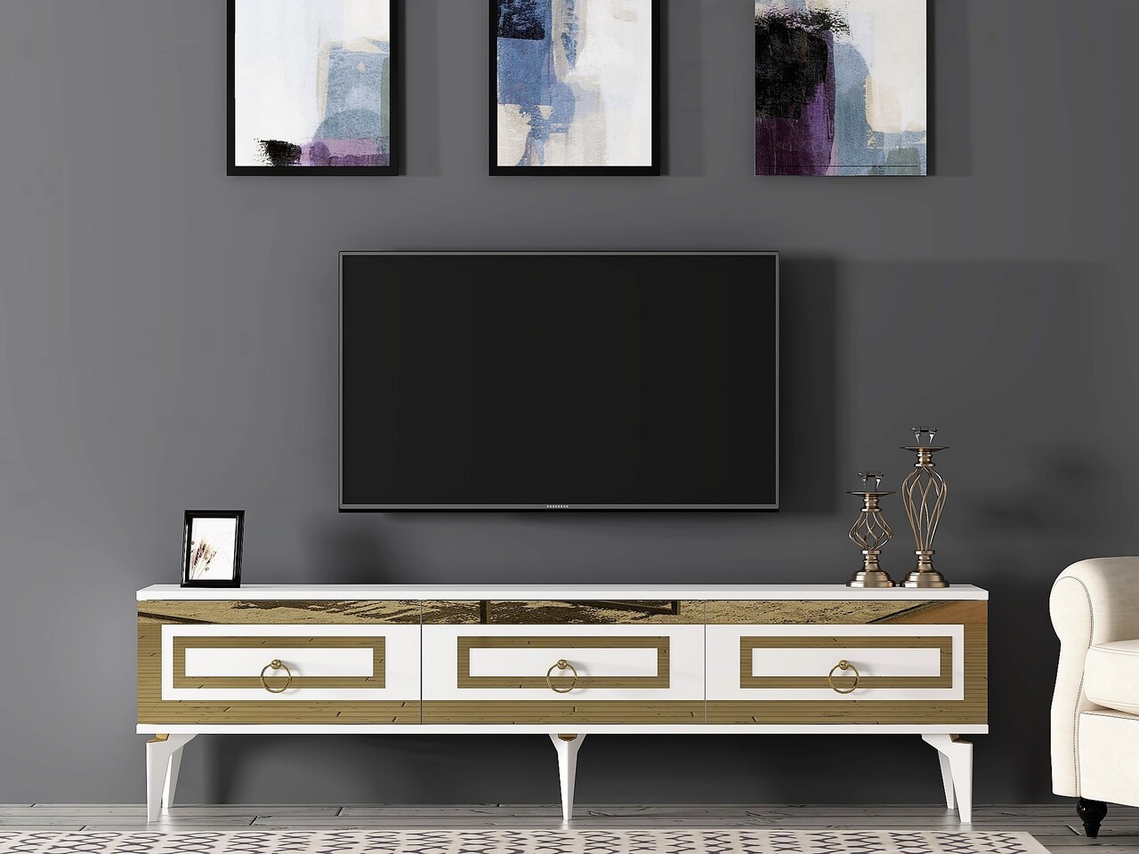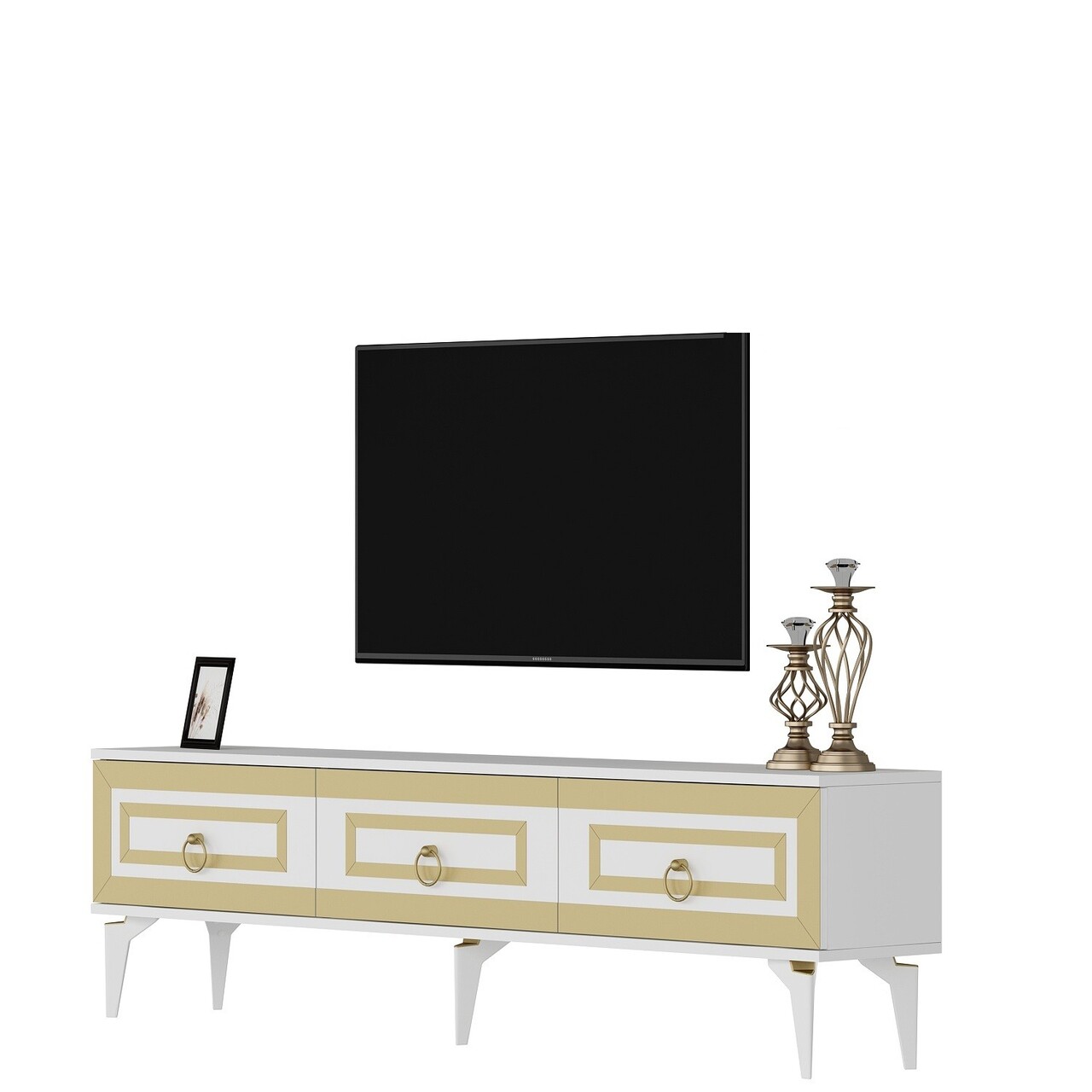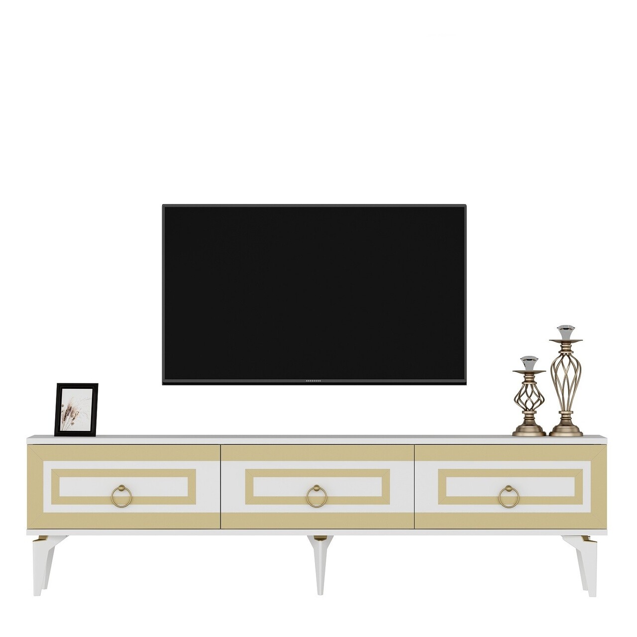 Comoda TV, Olivia, Karya, 180x44.6x29.6 cm, PAL , Alb/Auriu