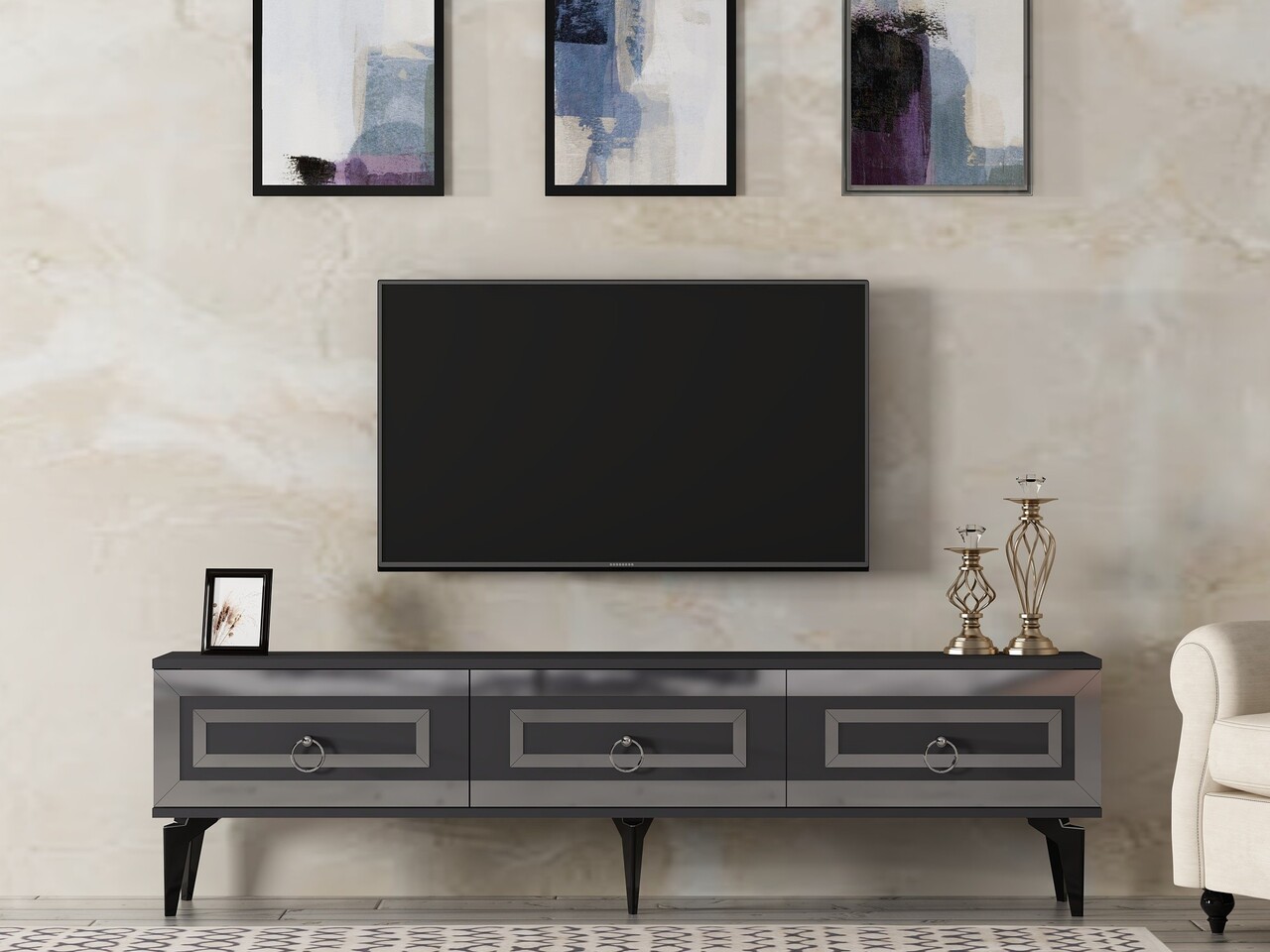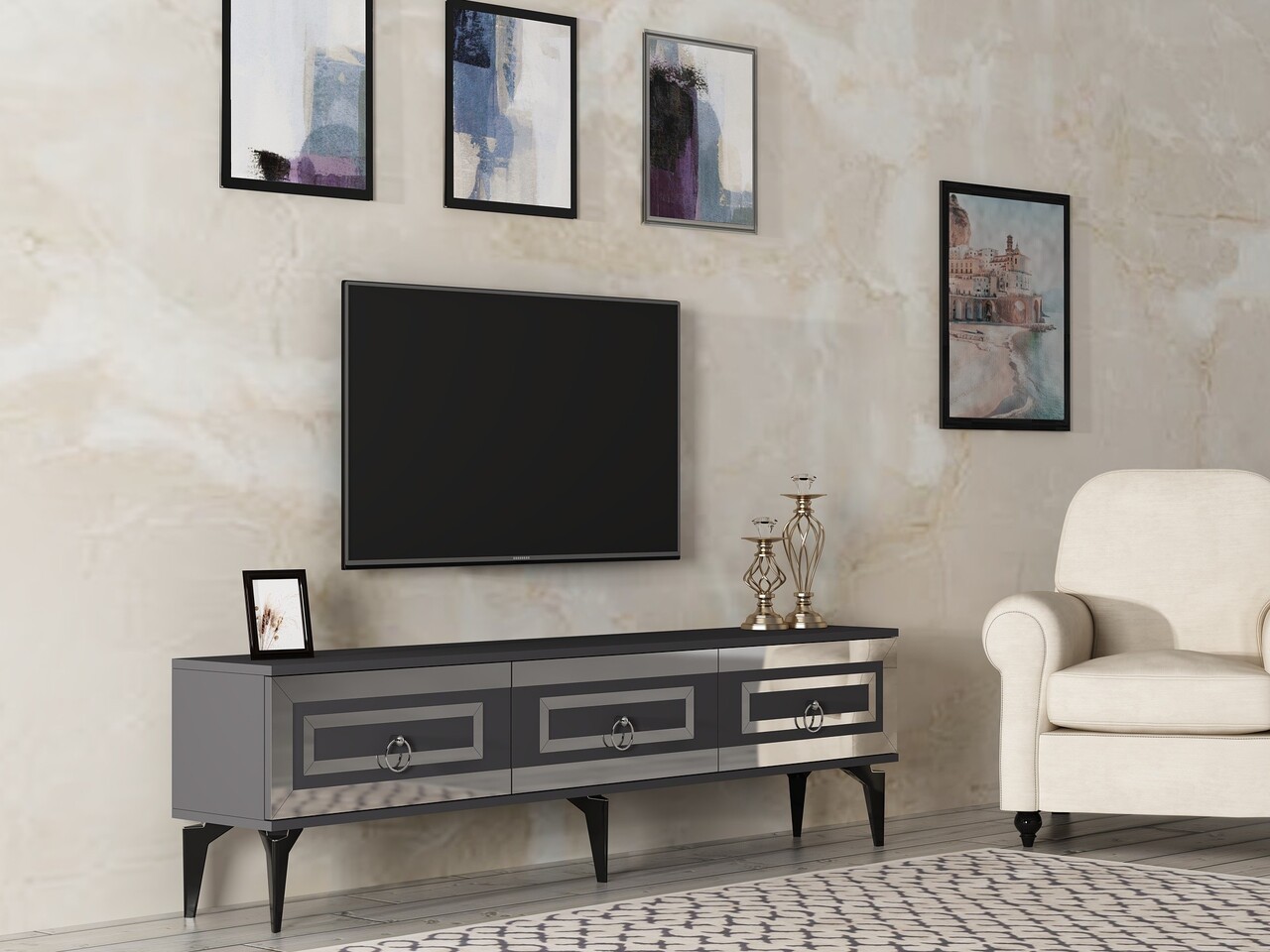 Comoda TV, Olivia, Karya, 180x44.6x29.6 cm, PAL , Antracit / Argintiu