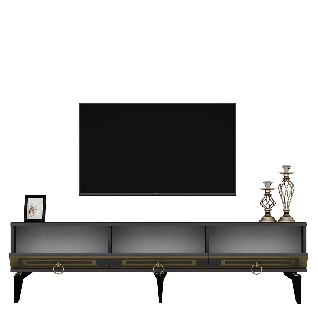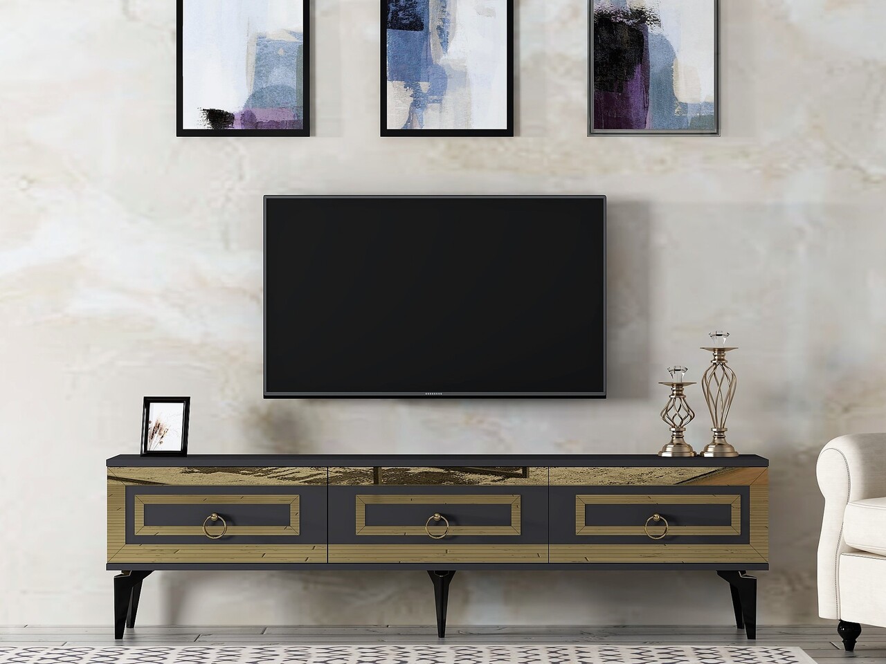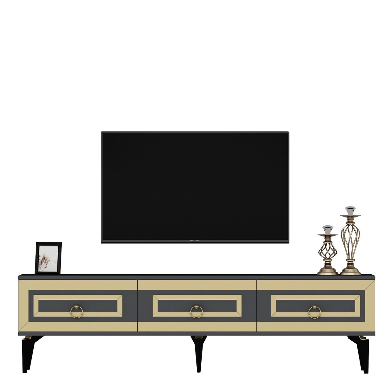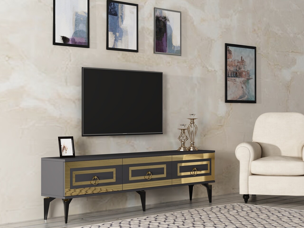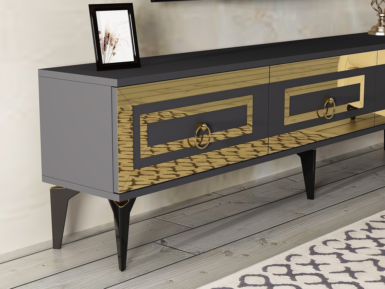 Comoda TV, Olivia, Karya, 180x44.6x29.6 cm, PAL , Antracit / Aur