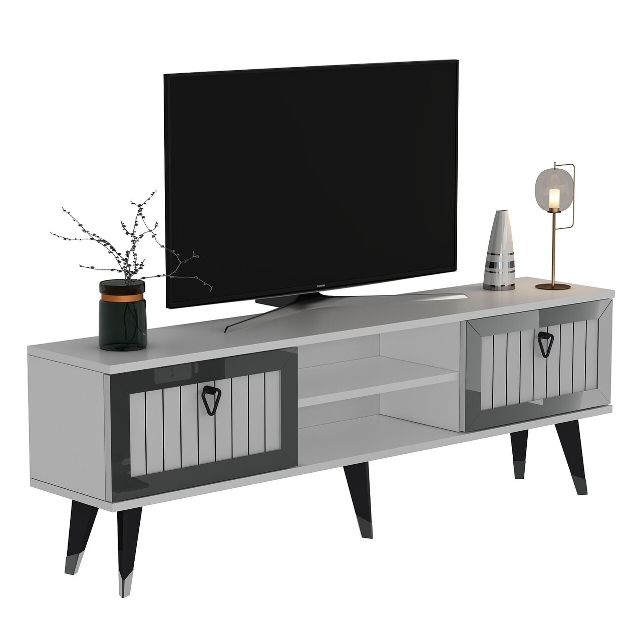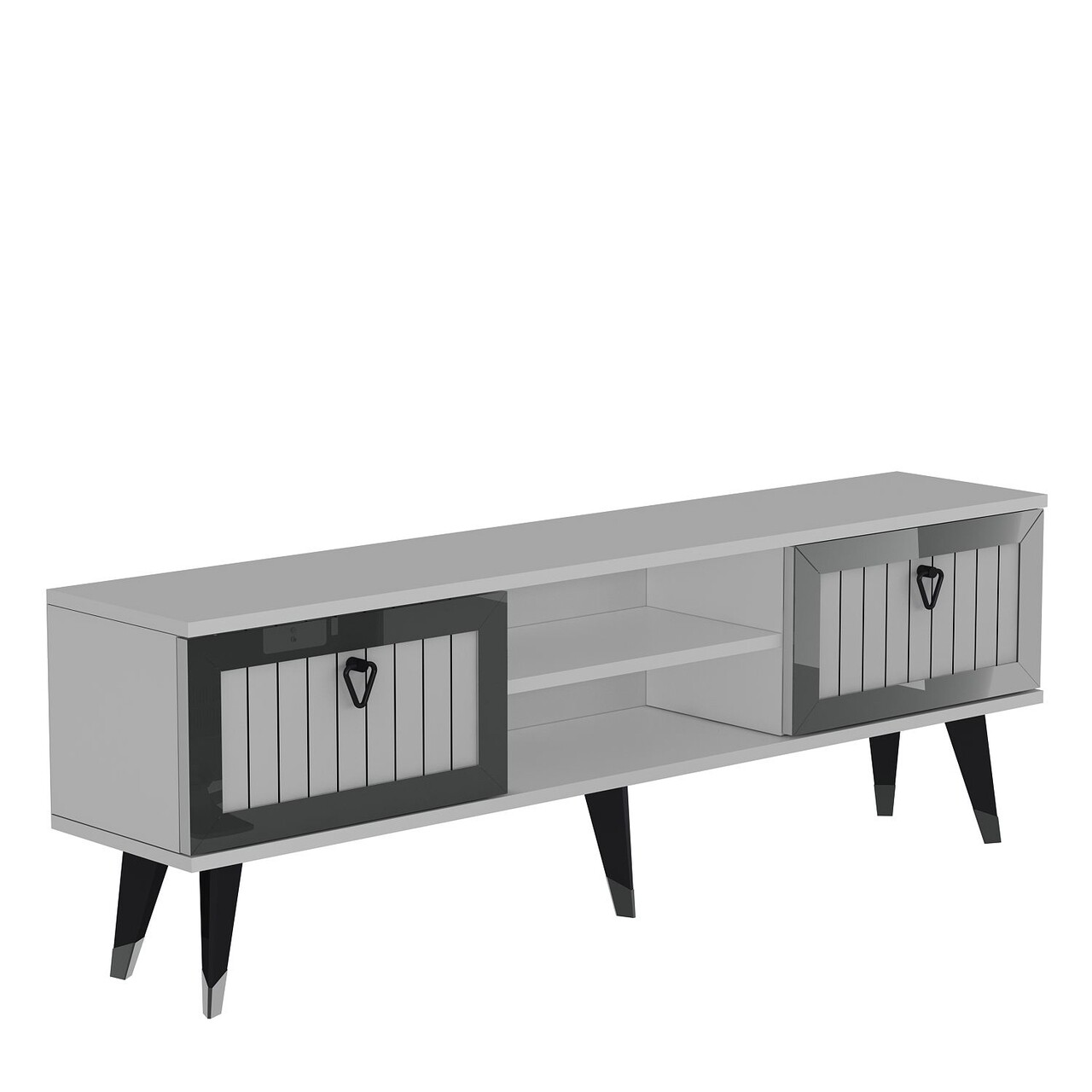 Comoda TV, Olivia, Lidya, 150x45 cm, PAL, Alb / Argintiu
