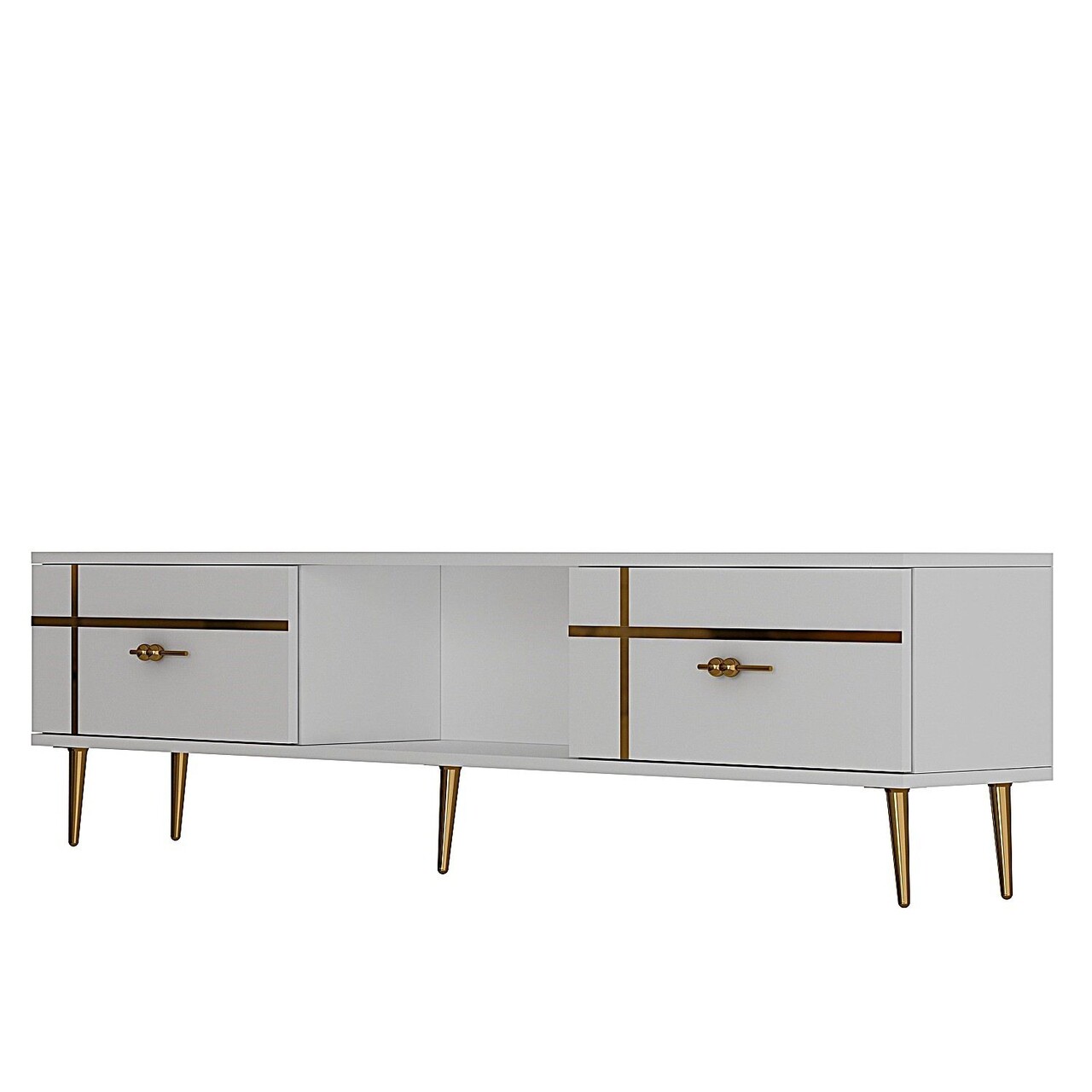 Comoda TV, Olivia, Line, 150x40 cm, PAL , Alb/Auriu