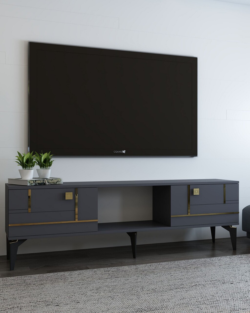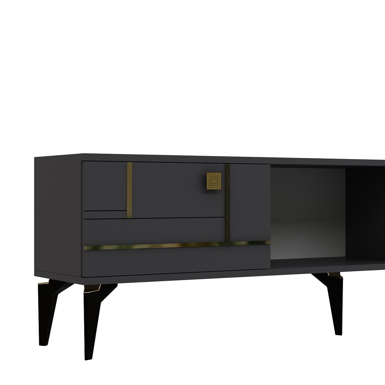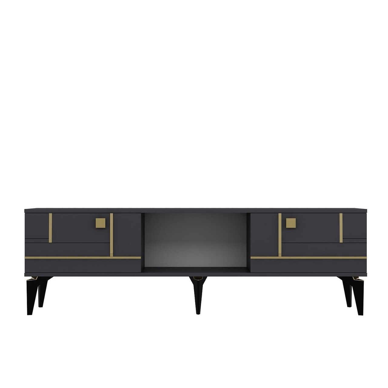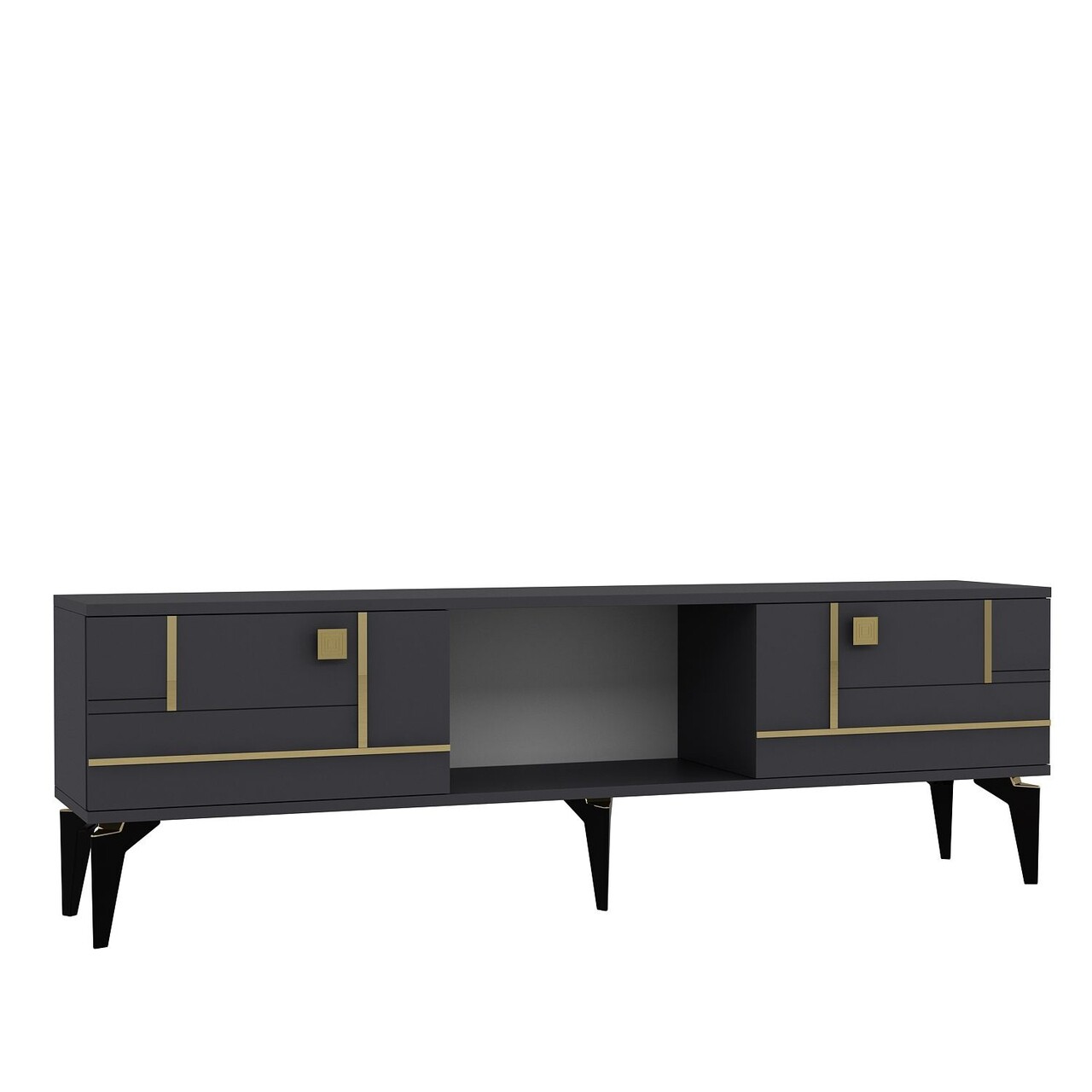 Comoda TV, Olivia, Madera, 150x44 cm, PAL , Antracit / Aur