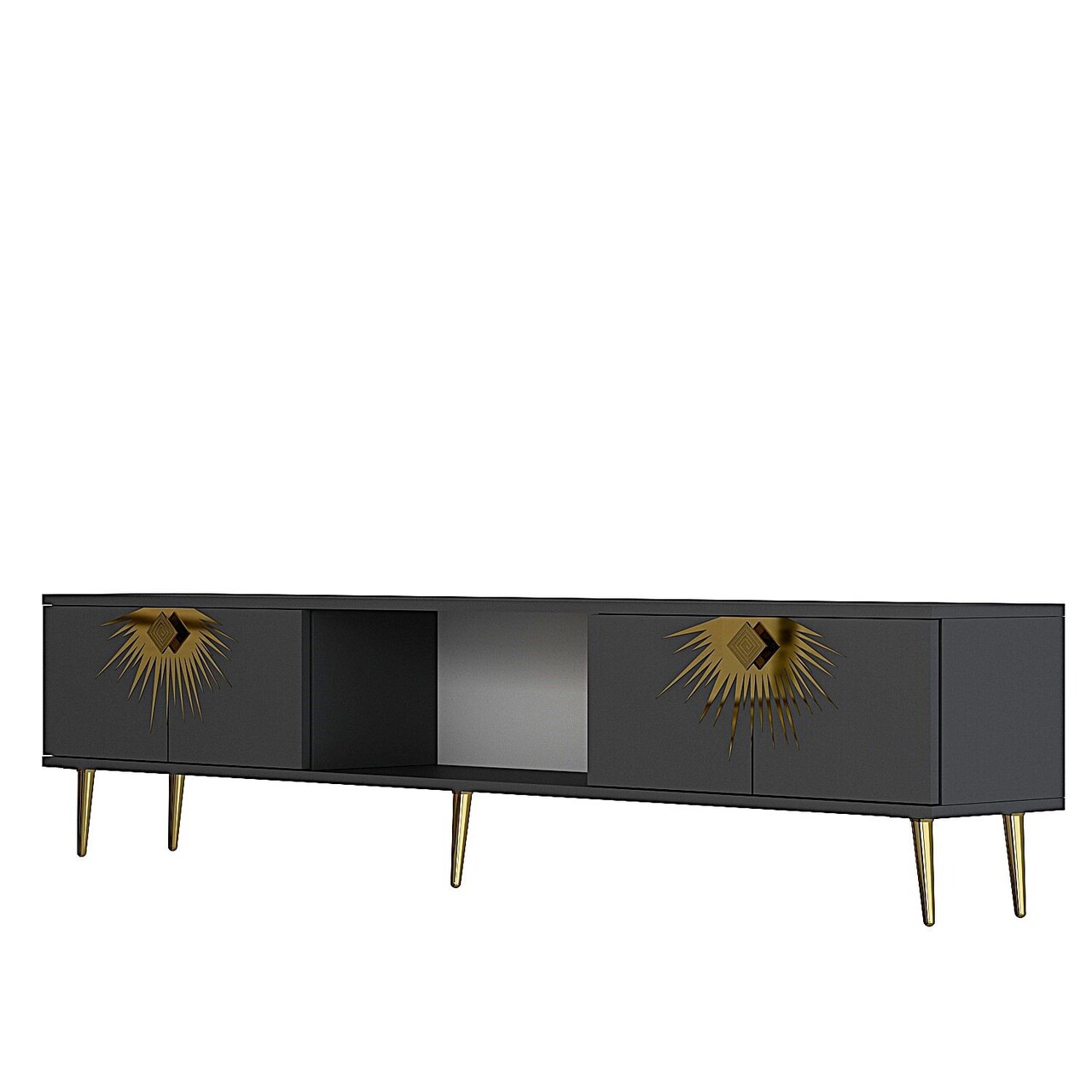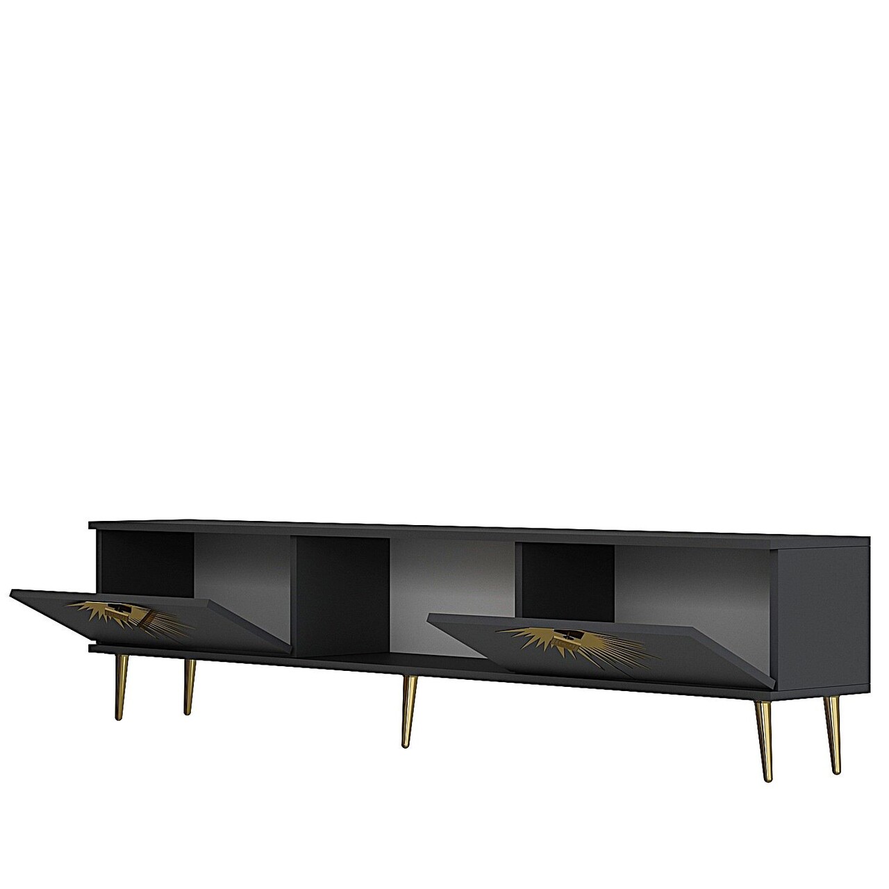 Comoda TV, Olivia, Nida, 150x40 cm, PAL , Antracit / Aur