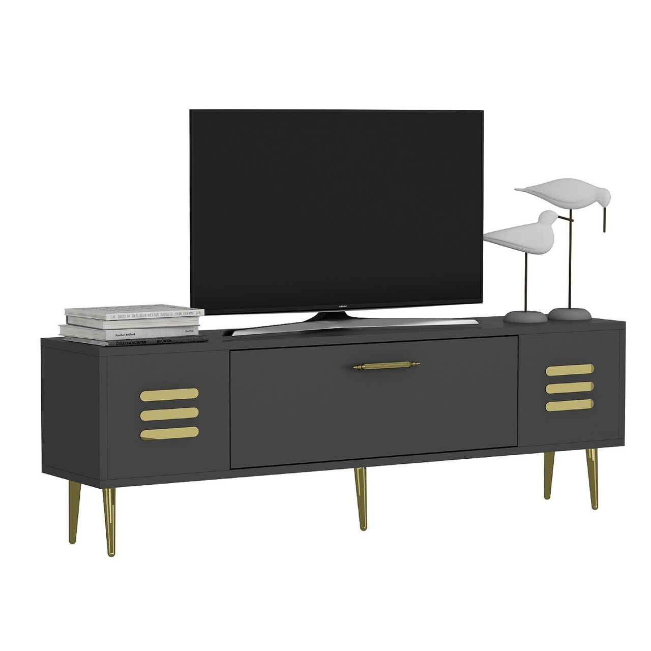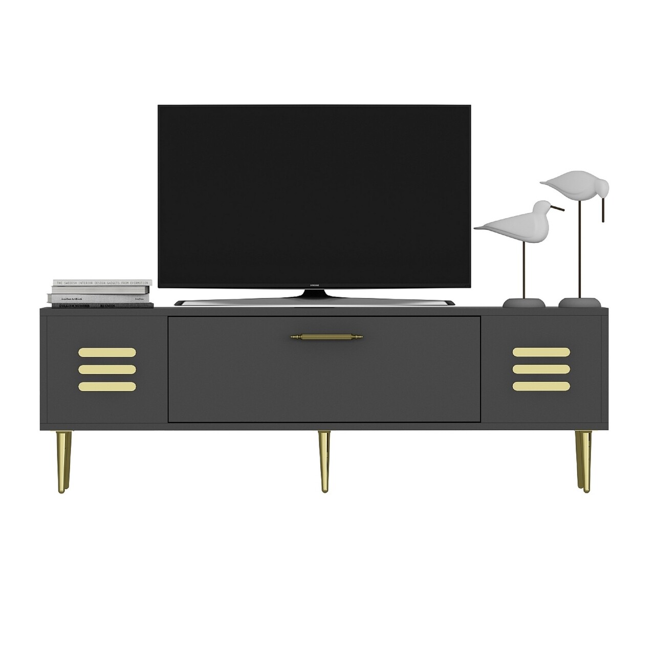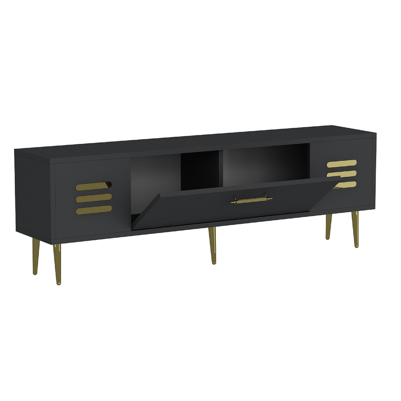 Comoda TV, Olivia, Paradise, 140 x 45 x 29.6 cm, pal melaminat, antracit/auriu