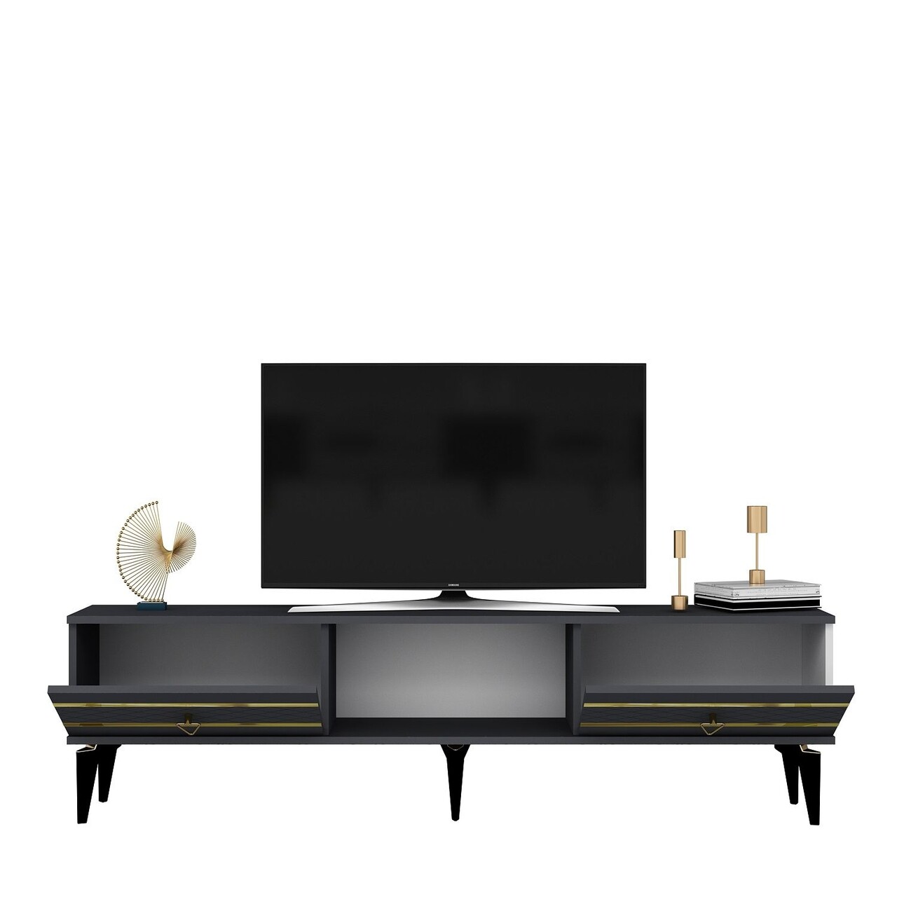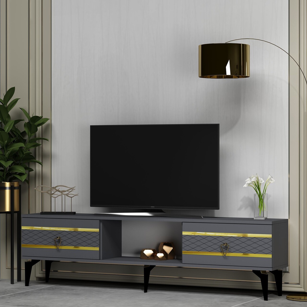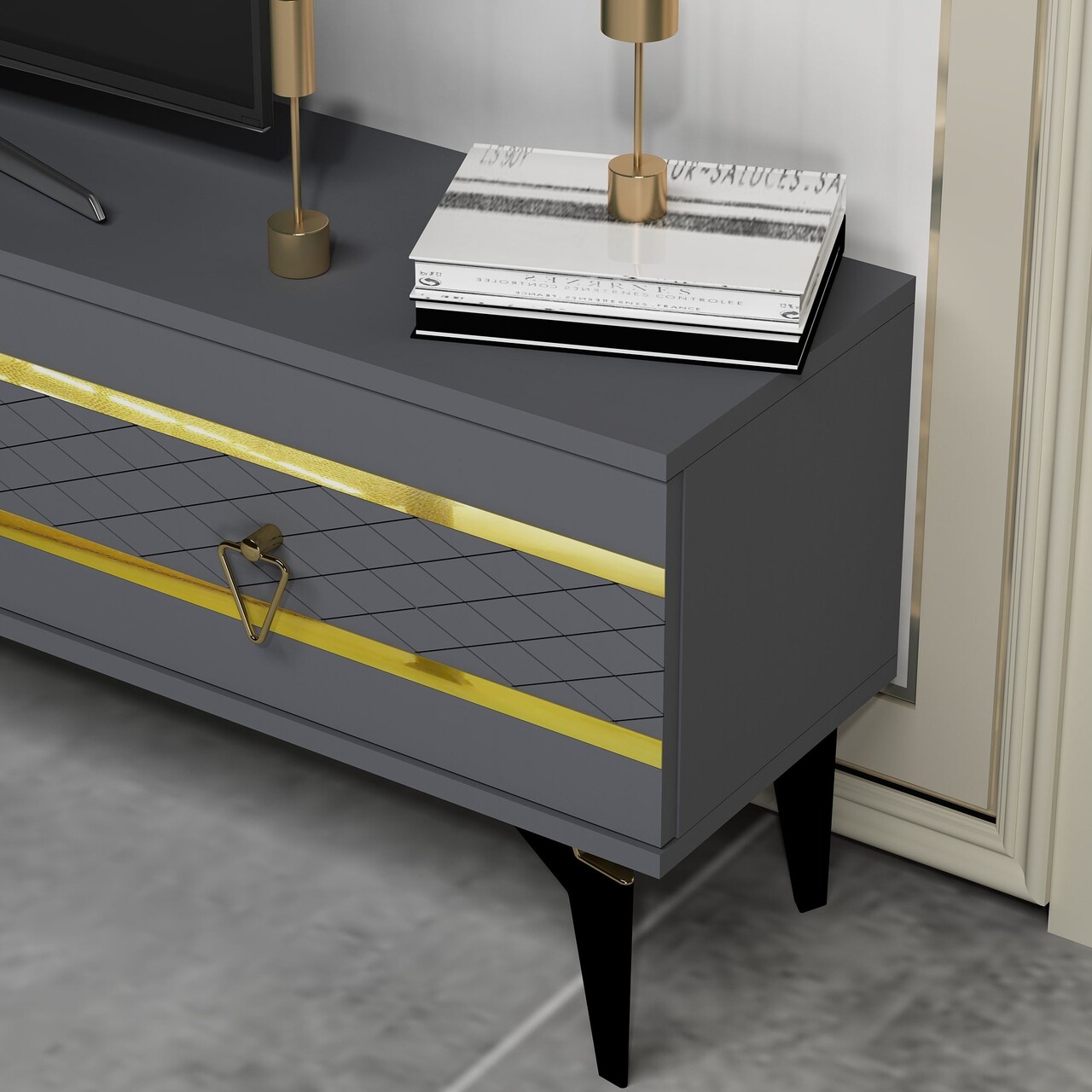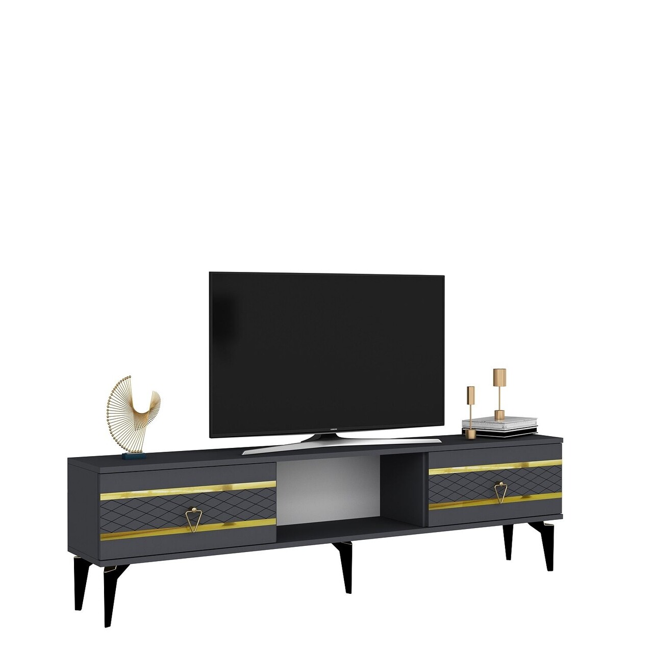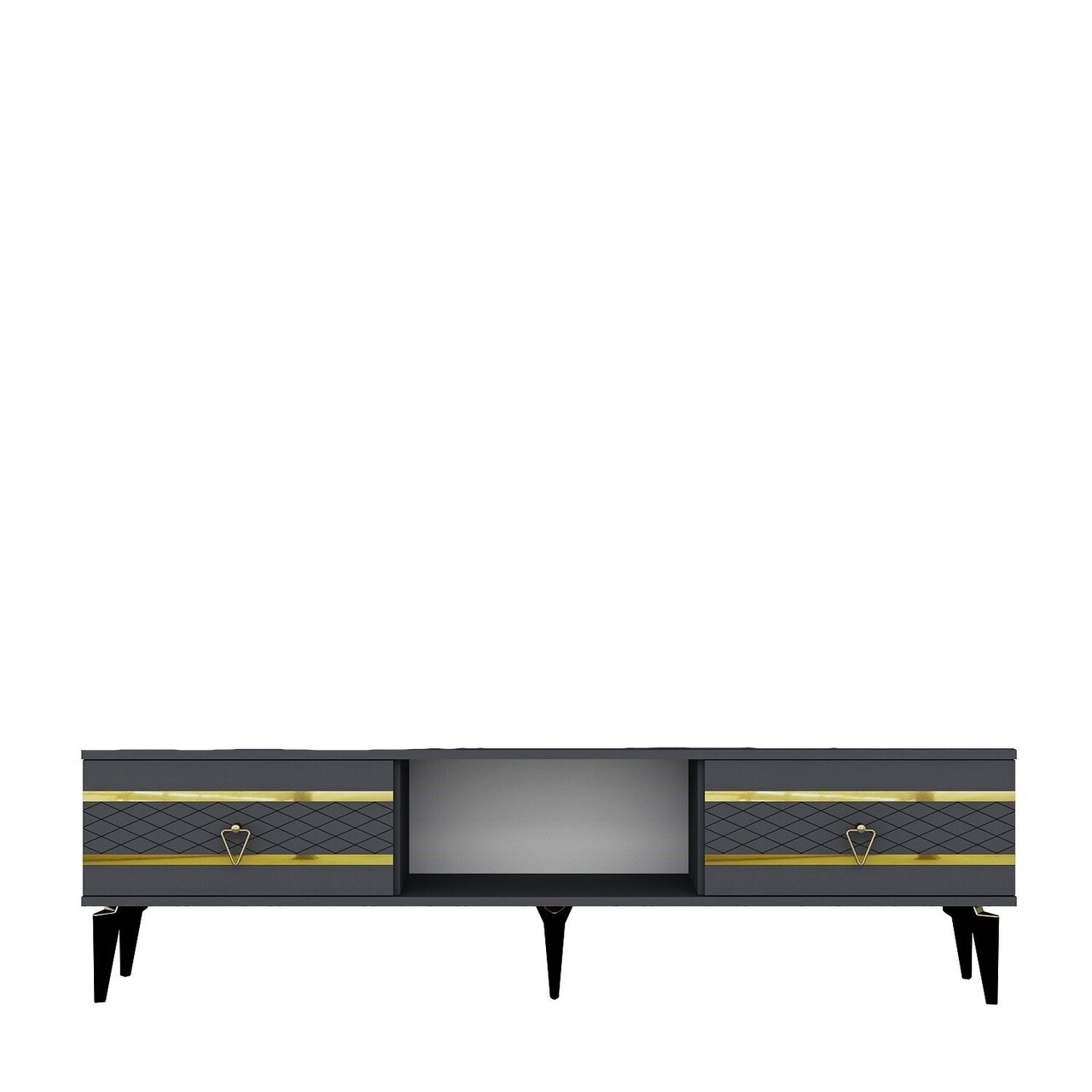 Comoda TV, Olivia, Pelin, 150x44 cm, PAL, Antracit / Aur