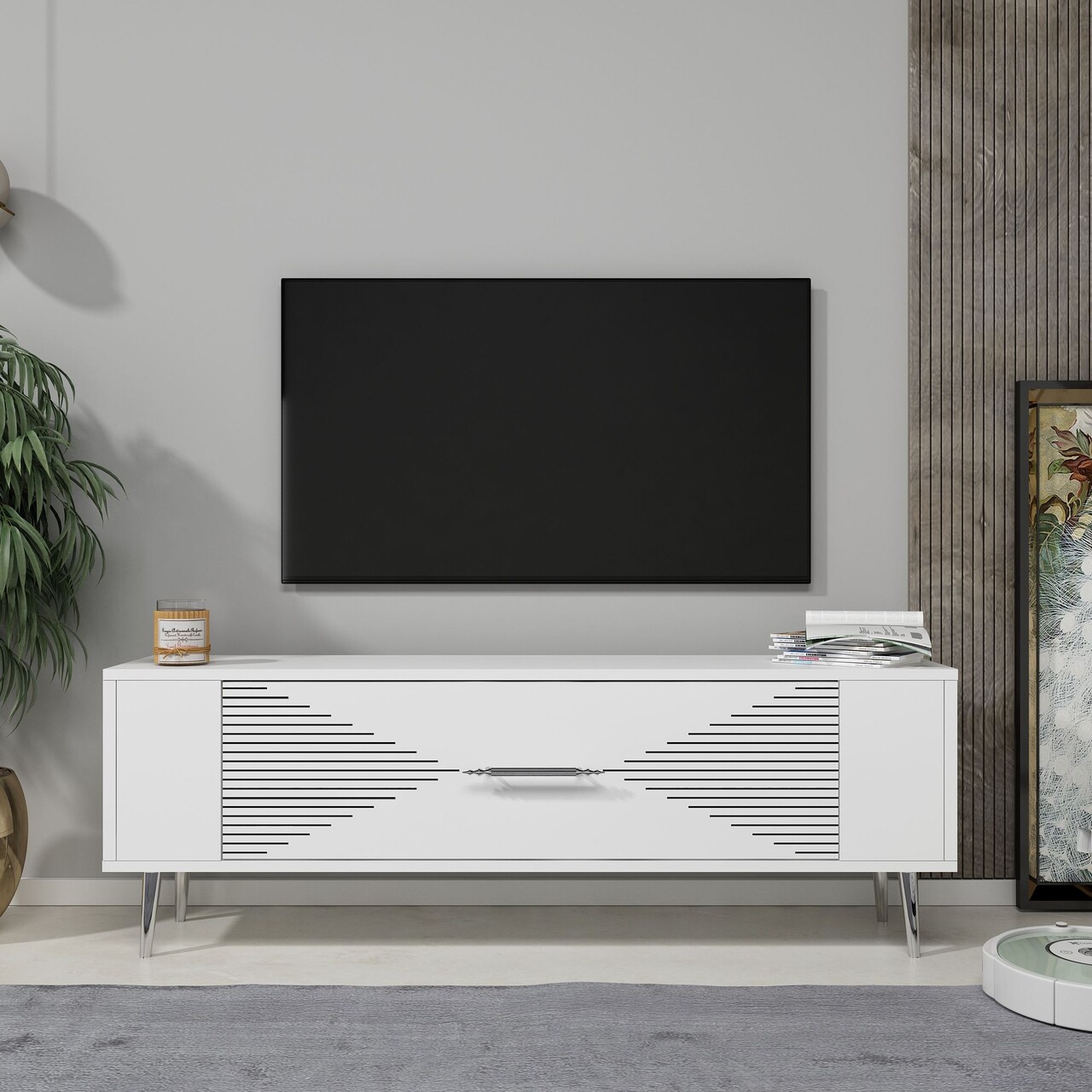 Comoda TV, Olivia, Retrol1, 120x48 cm, PAL, Alb / Argintiu