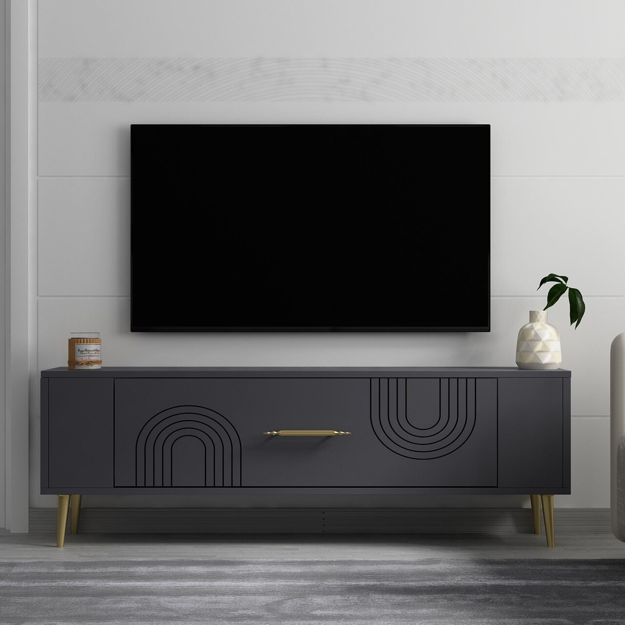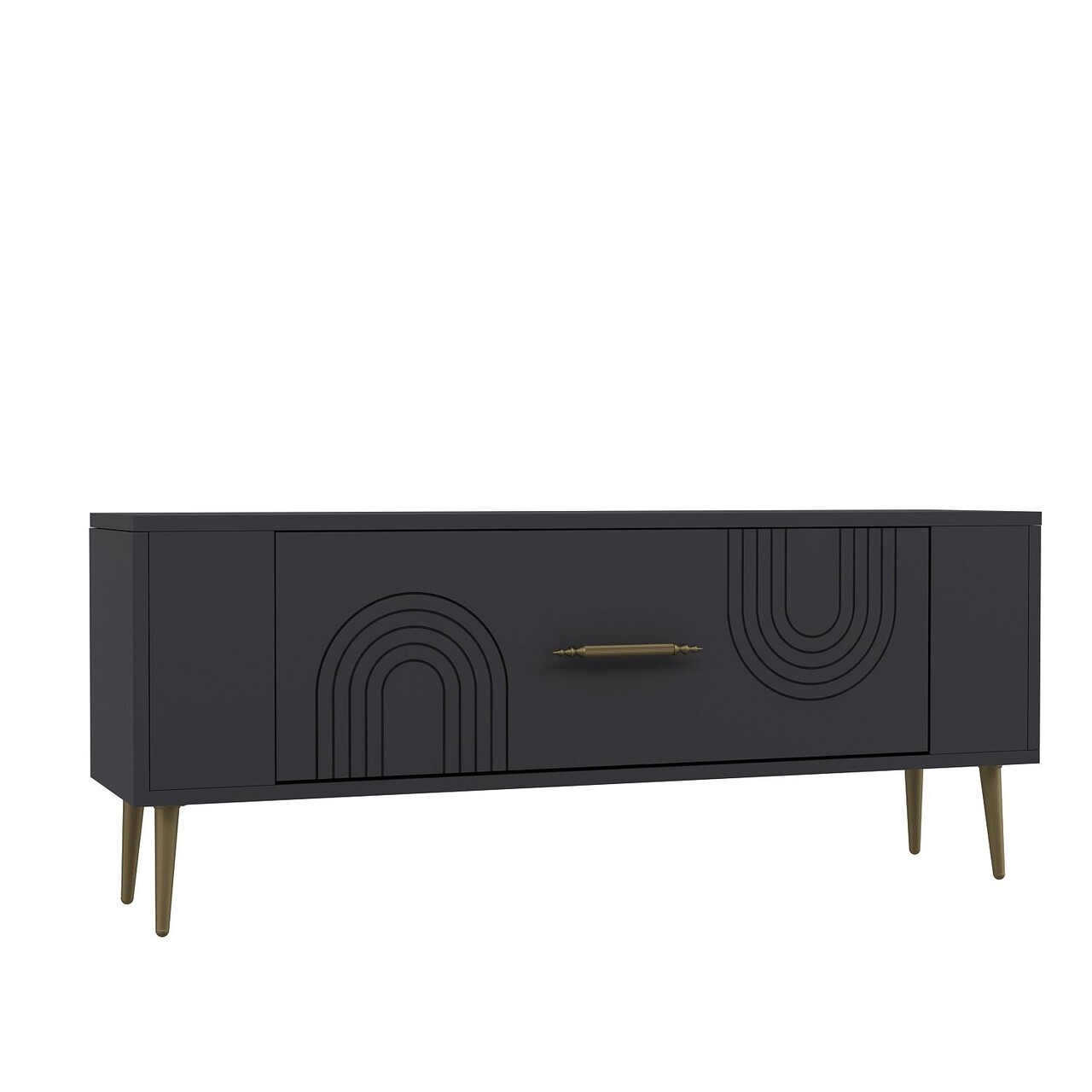 Comoda TV, Olivia, Retrol2, 120x48 cm, PAL, Antracit / Aur