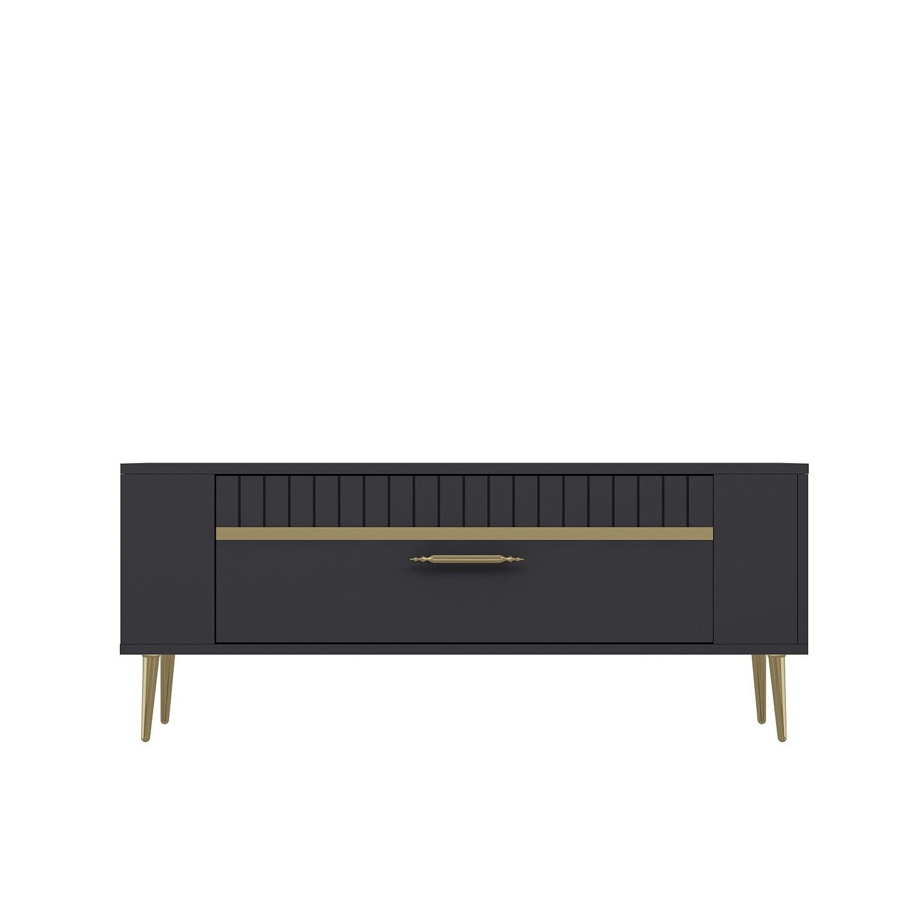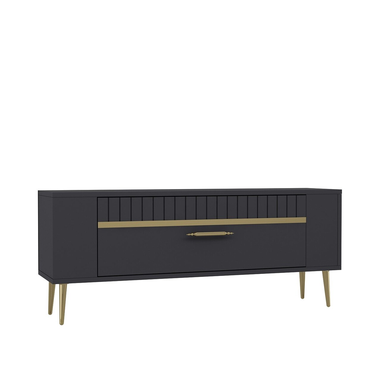 Comoda TV, Olivia, Retrolp1, 120x48 cm, PAL, Antracit / Aur