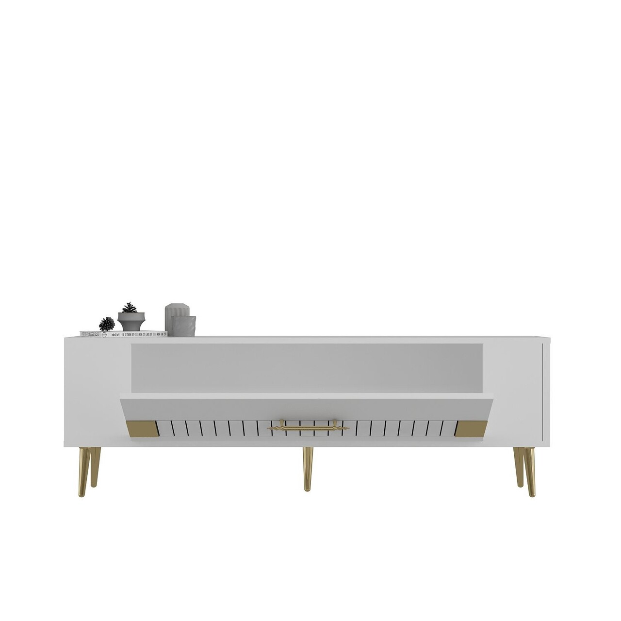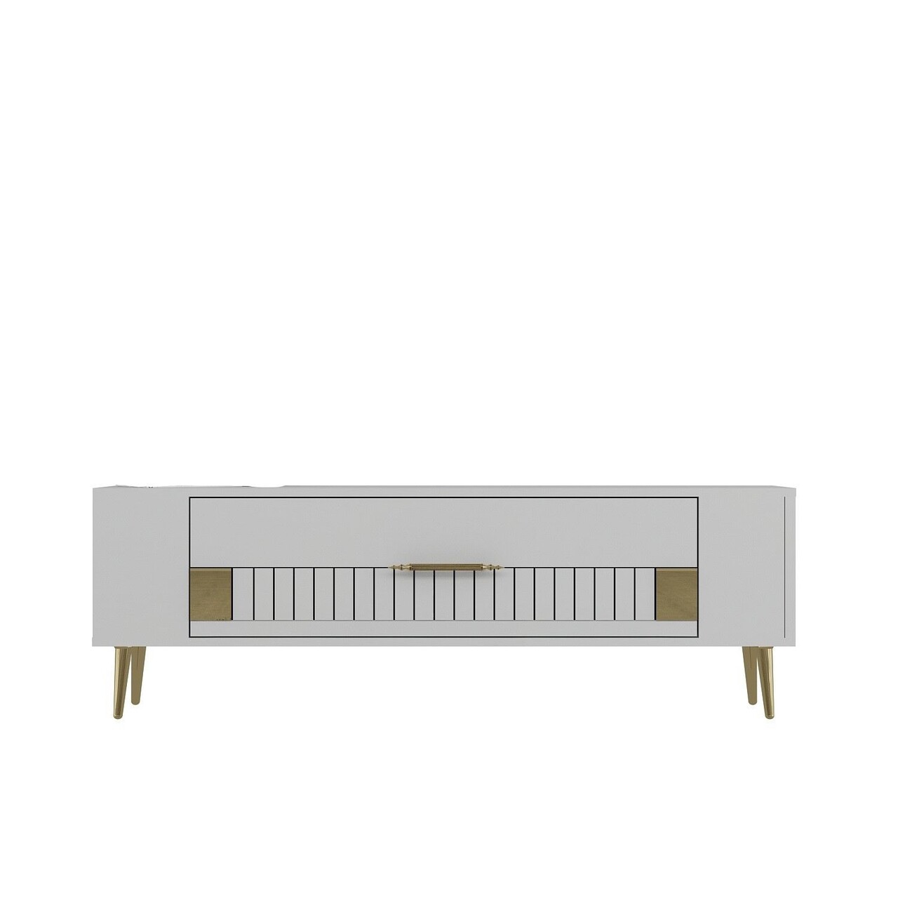 Comoda TV, Olivia, Retrolp4, 120x48 cm, PAL, Alb/Auriu