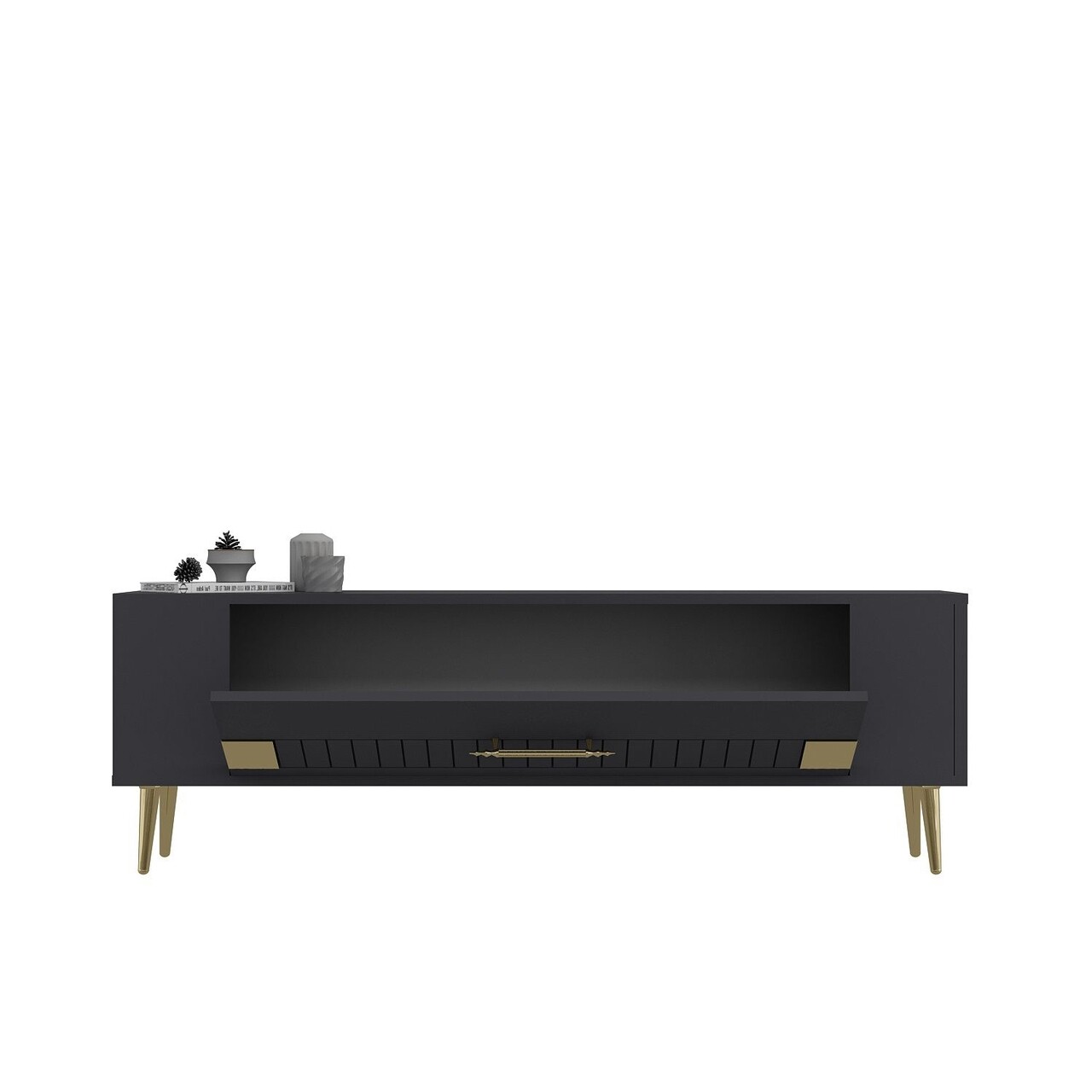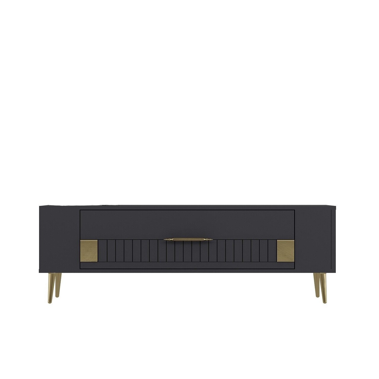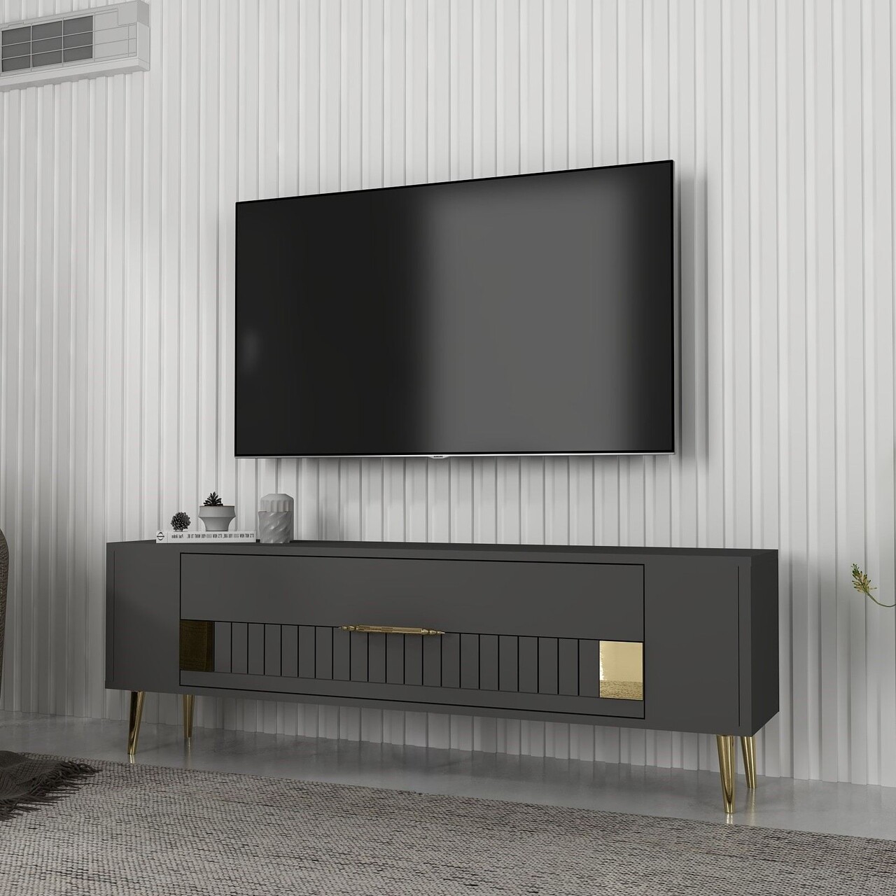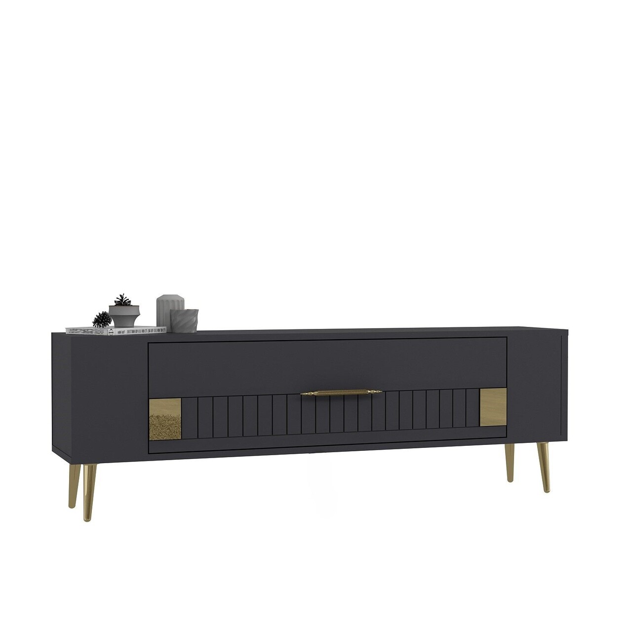 Comoda TV, Olivia, Retrolp4, 120x48 cm, PAL, Antracit / Aur