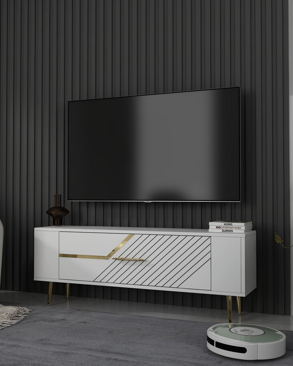 Comoda TV, Olivia, Retrolp5, 120x48 cm, PAL , Alb/Auriu