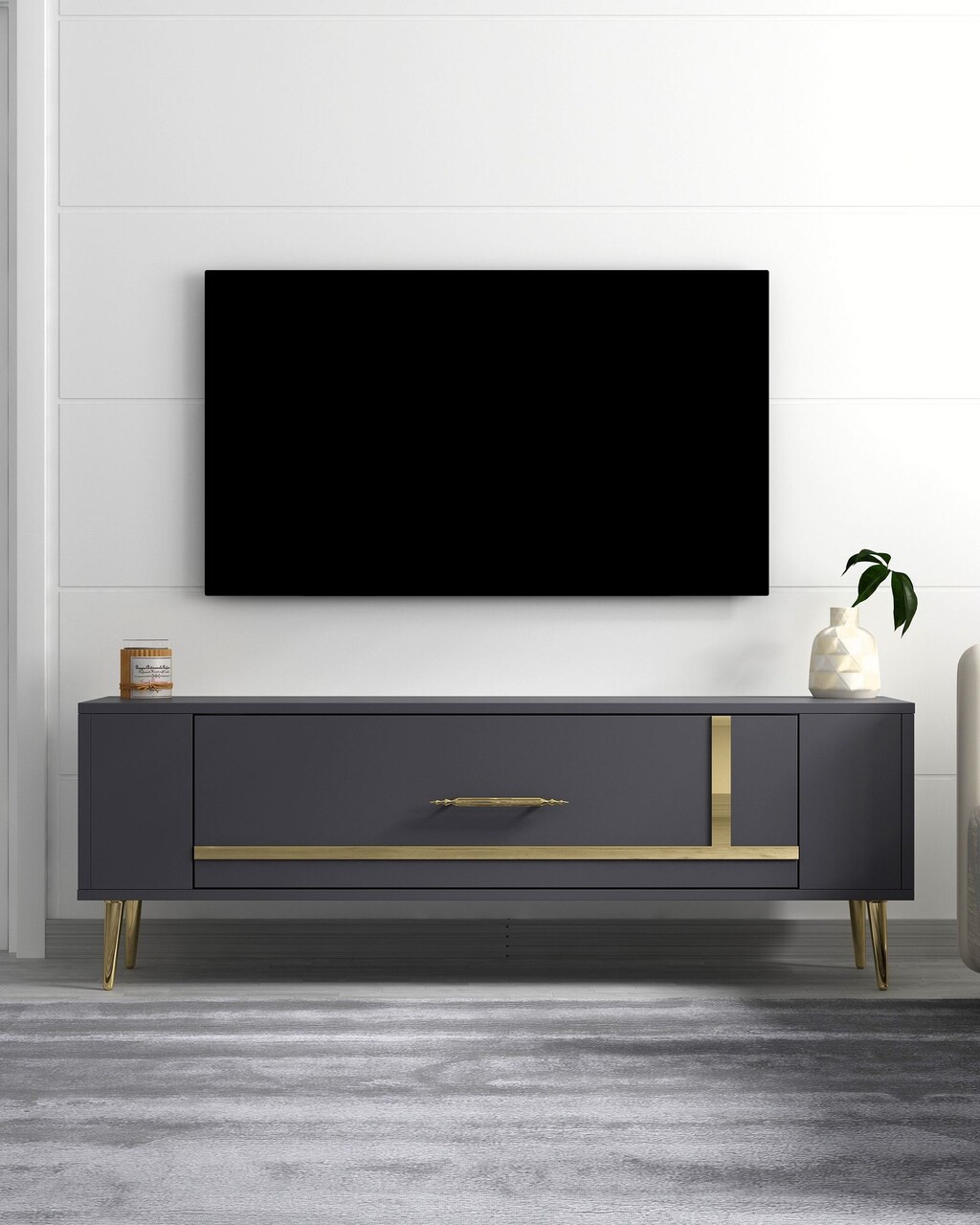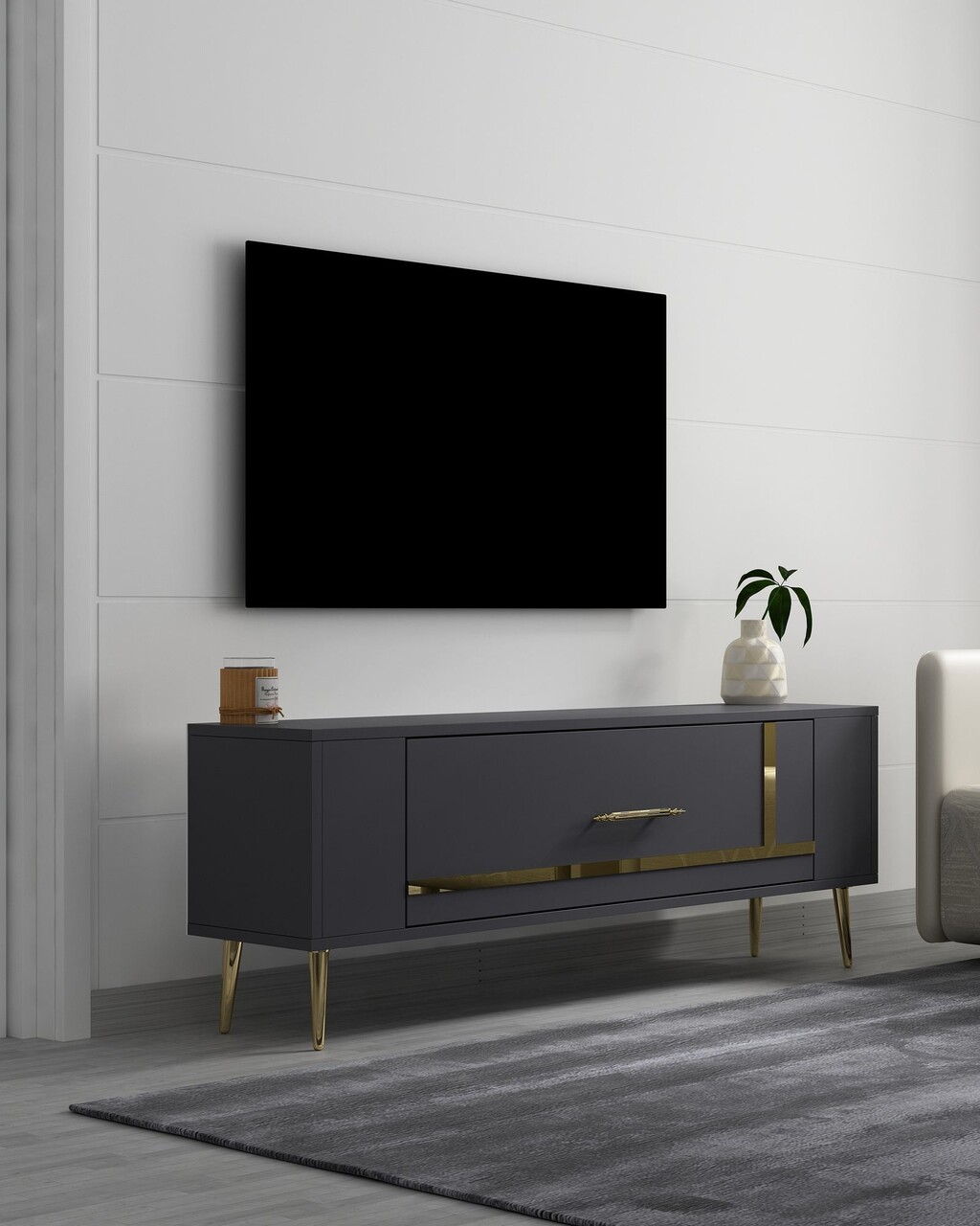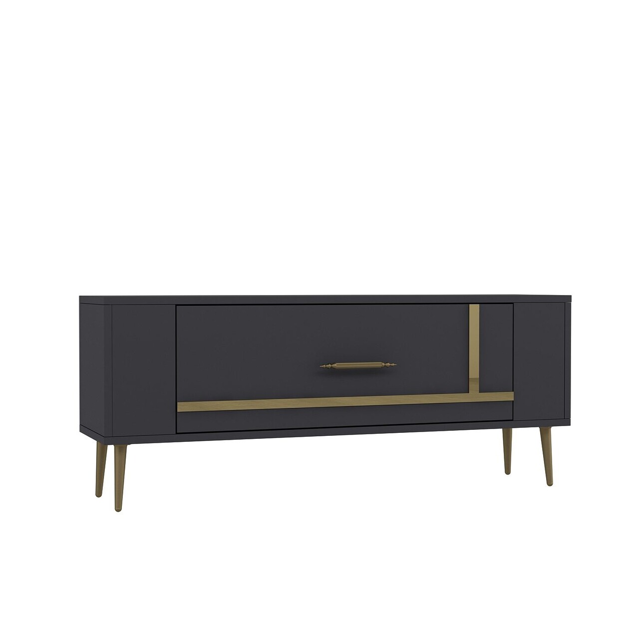 Comoda TV, Olivia, Retrop1, 120x48 cm, PAL, Antracit / Aur