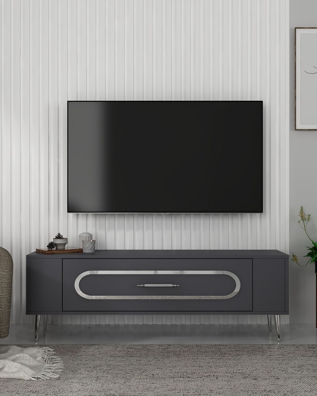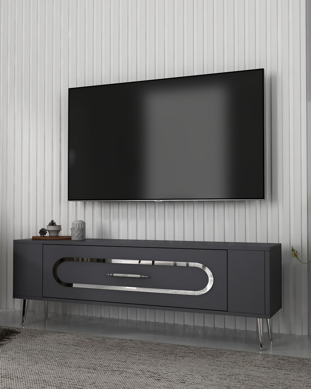 Comoda TV, Olivia, Retrop3, 120x48 cm, PAL, Antracit / Argintiu