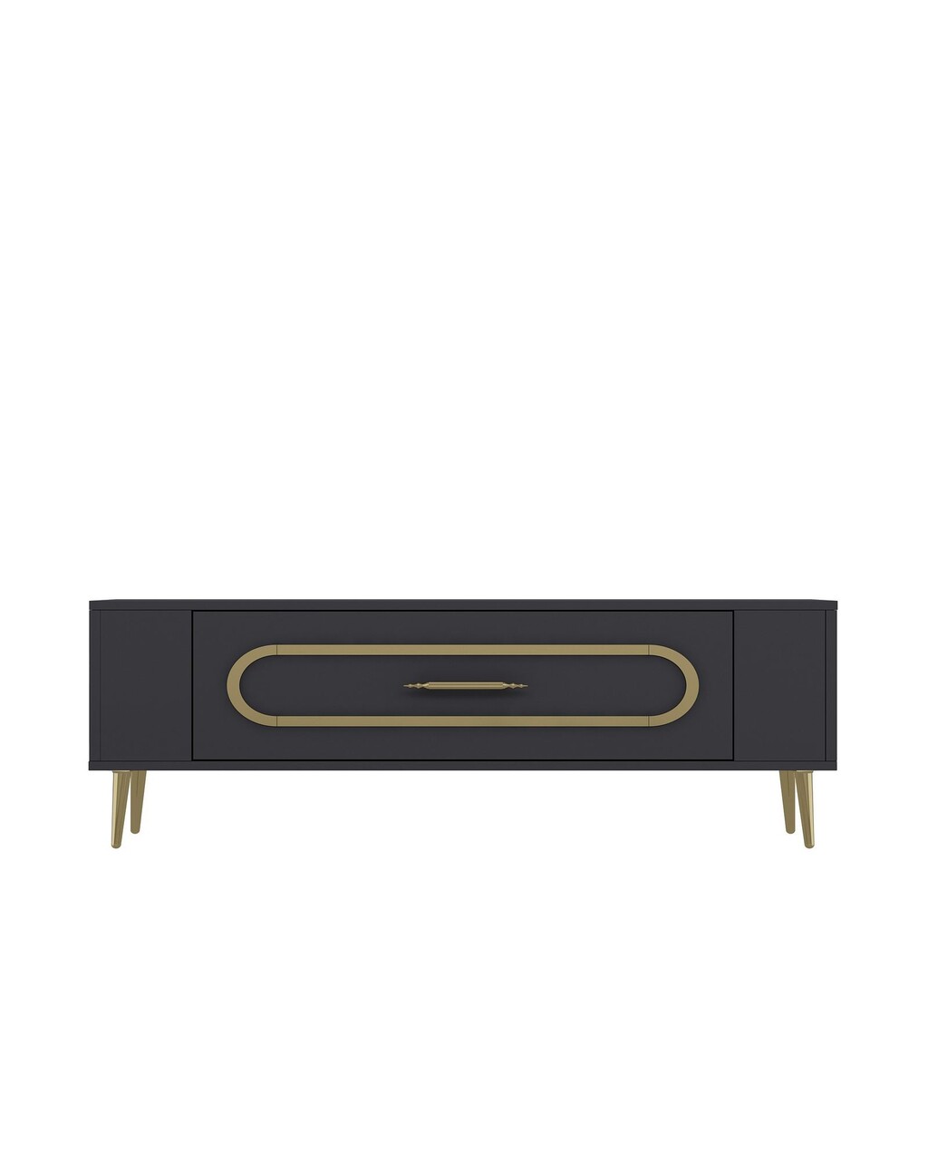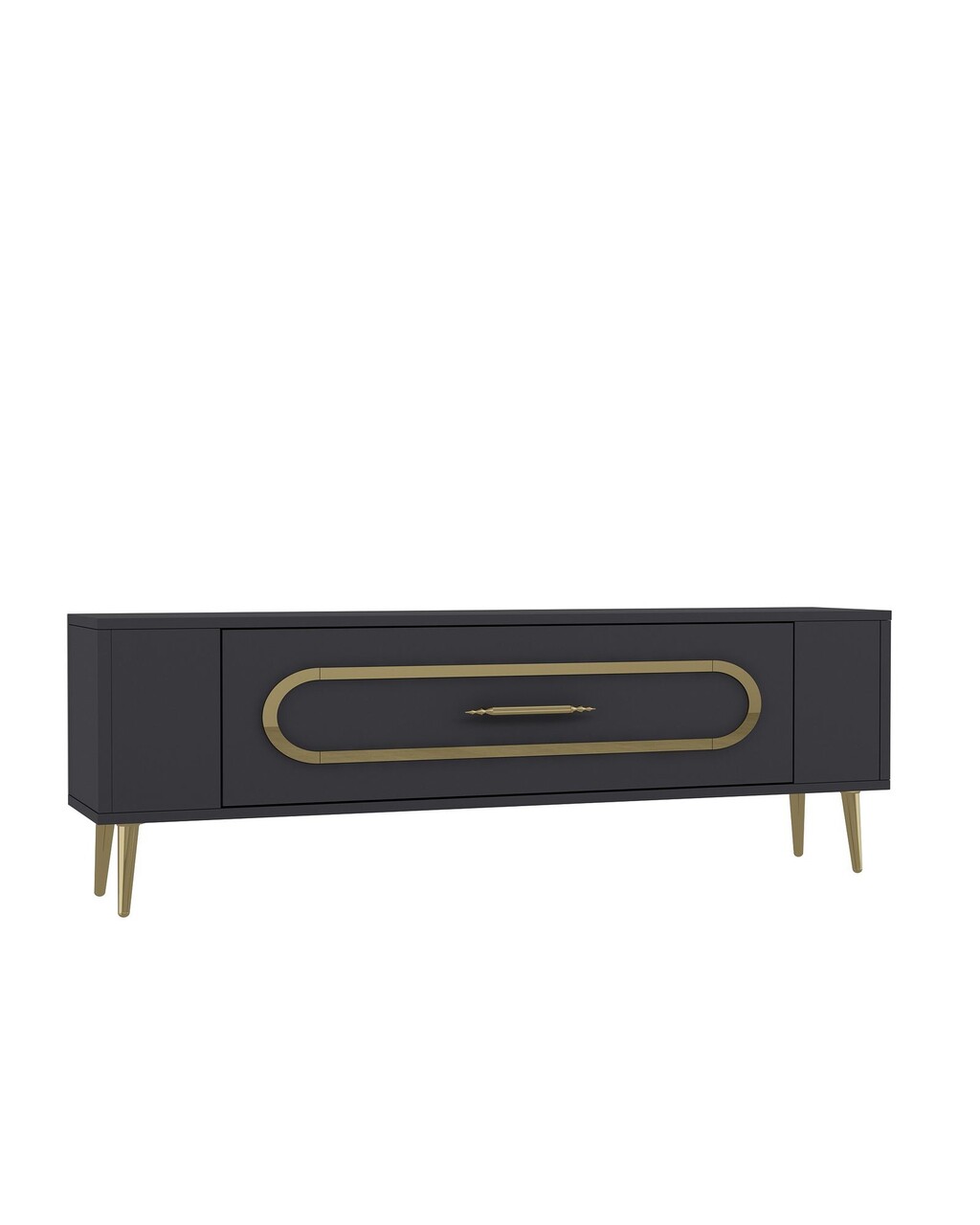 Comoda TV, Olivia, Retrop3, 120x48 cm, PAL, Antracit / Aur