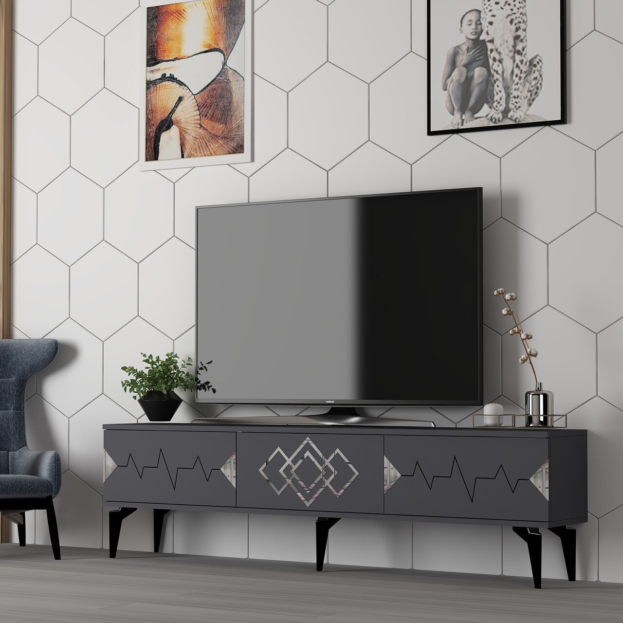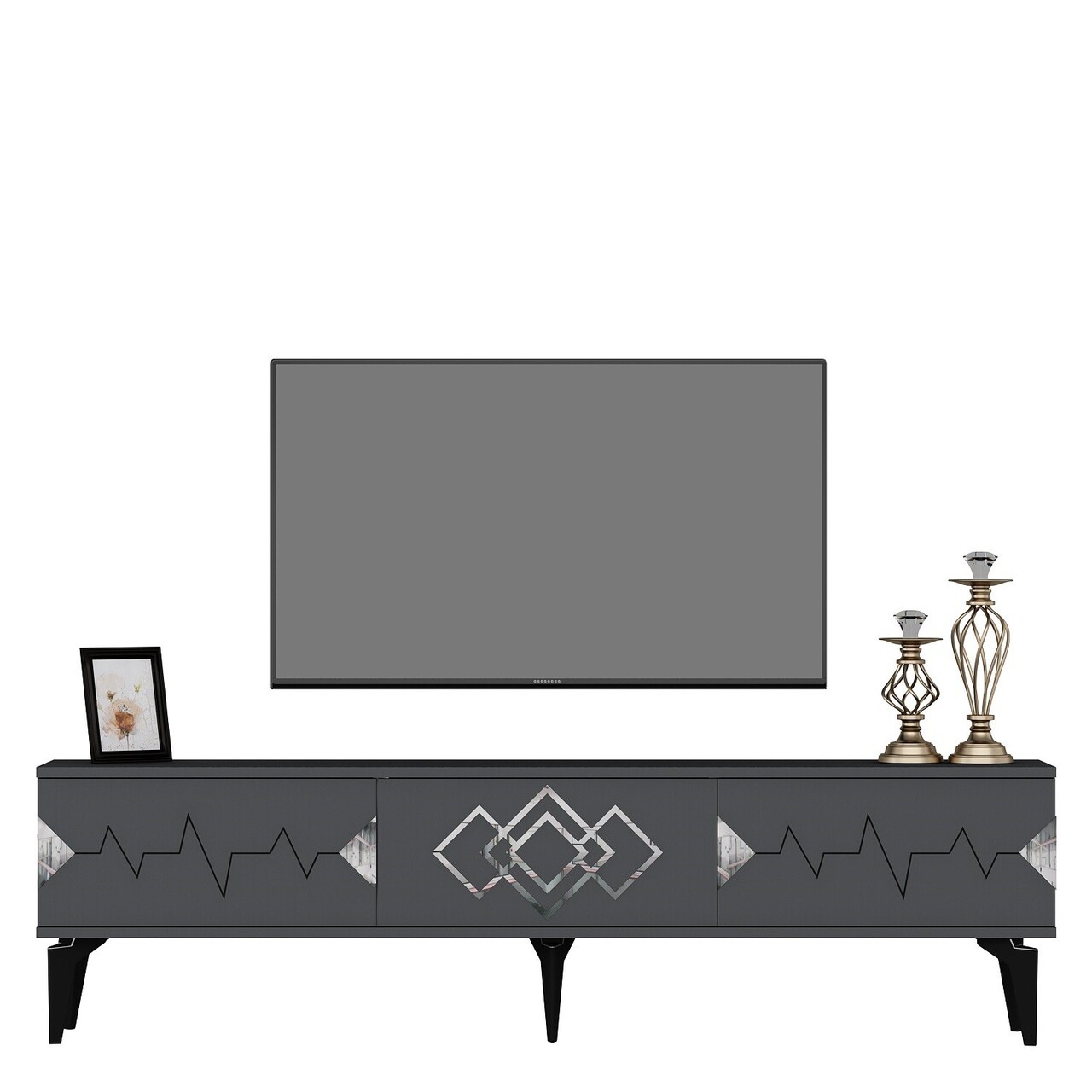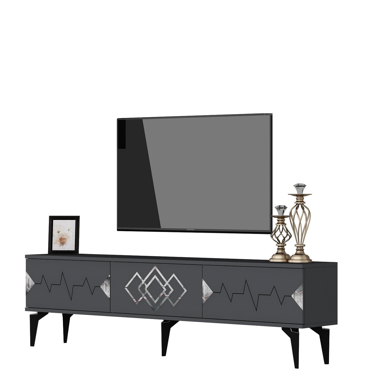 Comoda TV, Olivia, Ritim, 180x44.6x29.6 cm, PAL , Antracit / Argintiu