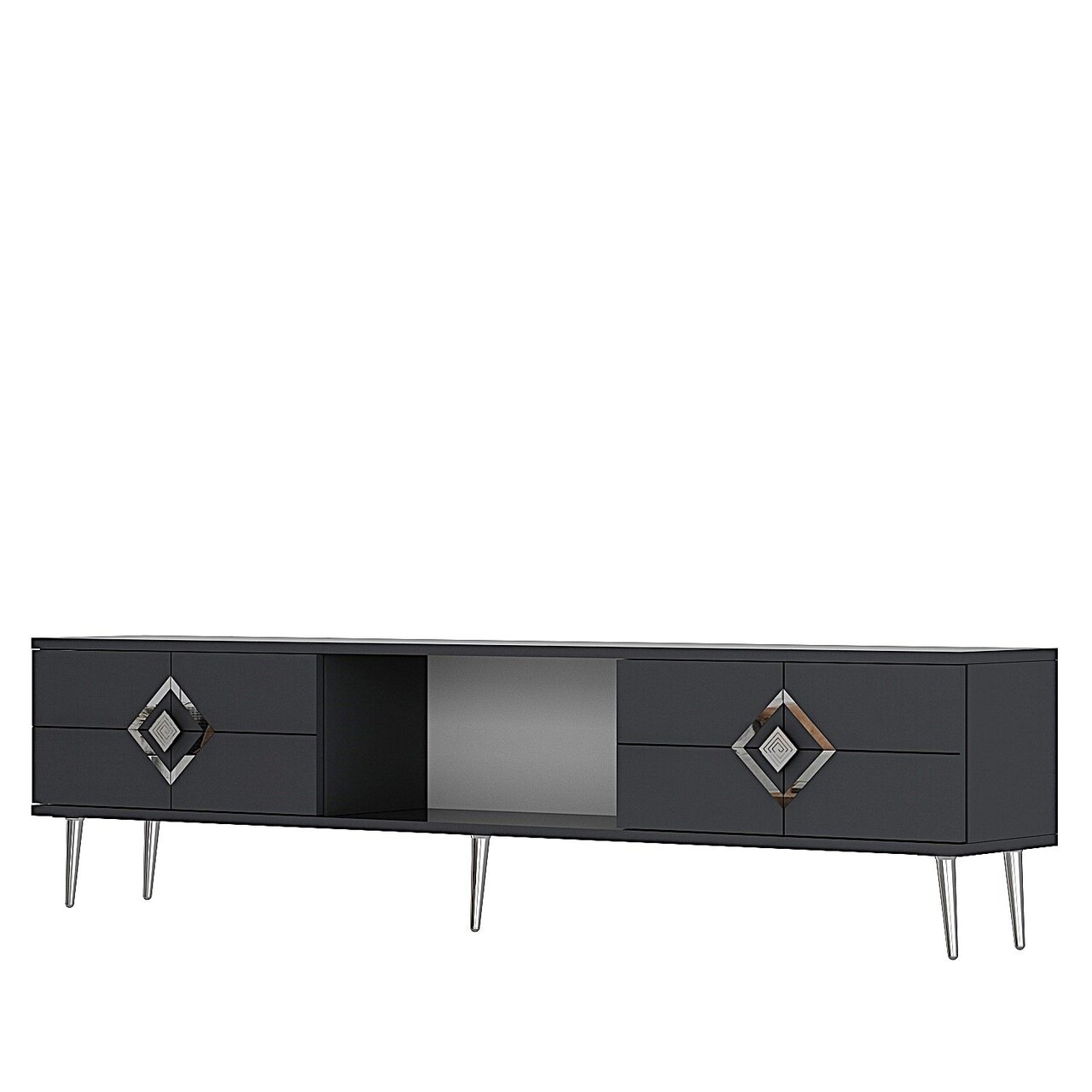 Comoda TV, Olivia, Robber, 150x40 cm, PAL , Antracit / Argintiu