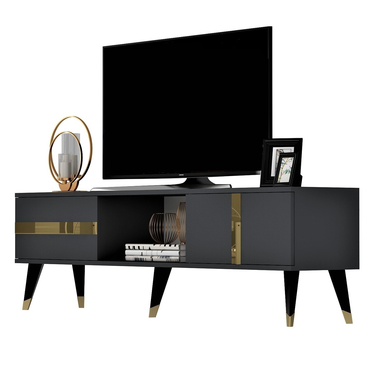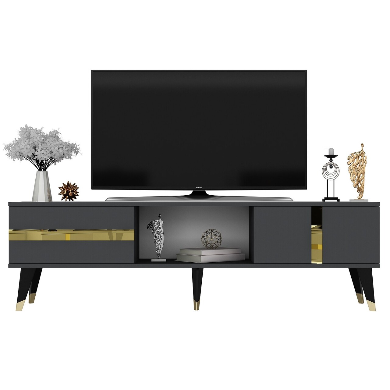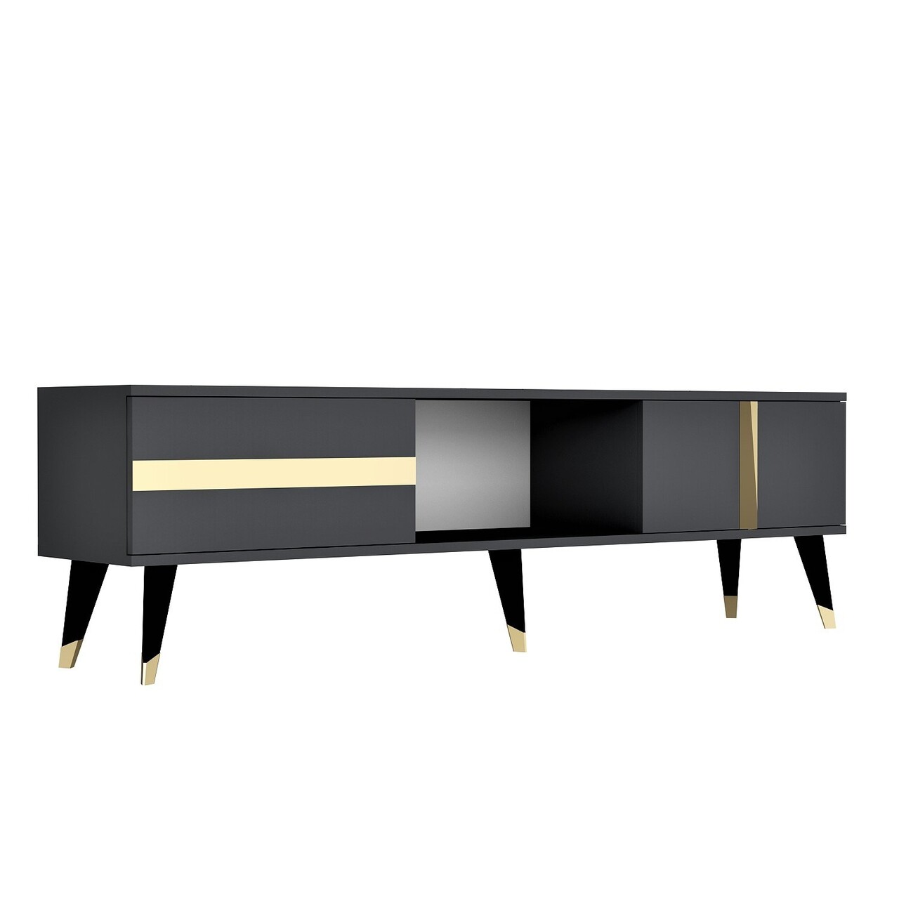 Comoda TV, Olivia, Vania, 150x29.6x50 cm, PAL , Antracit / Aur