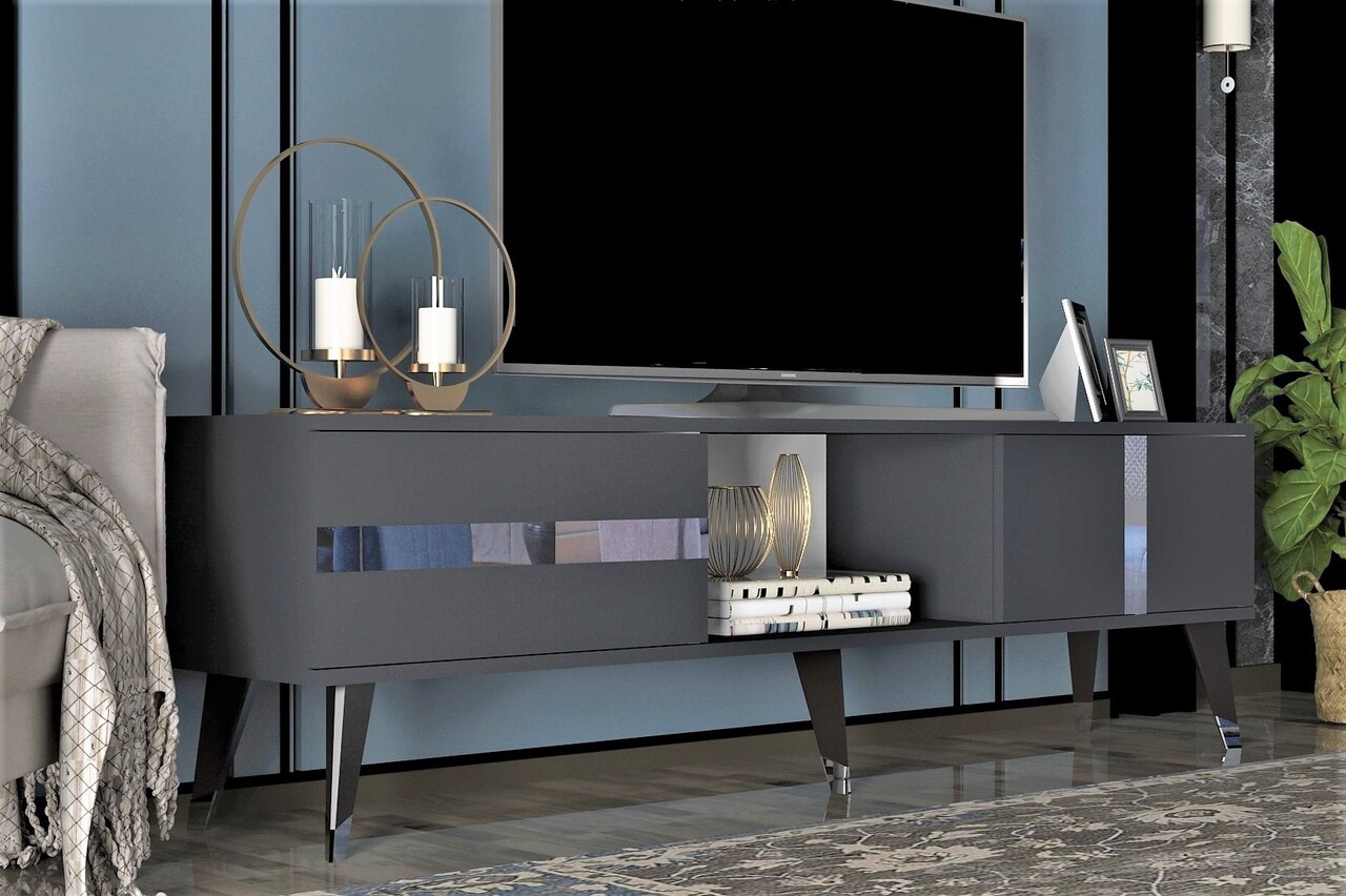 Comoda TV, Olivia, Vania, 150x29 cm, PAL , Antracit / Argintiu
