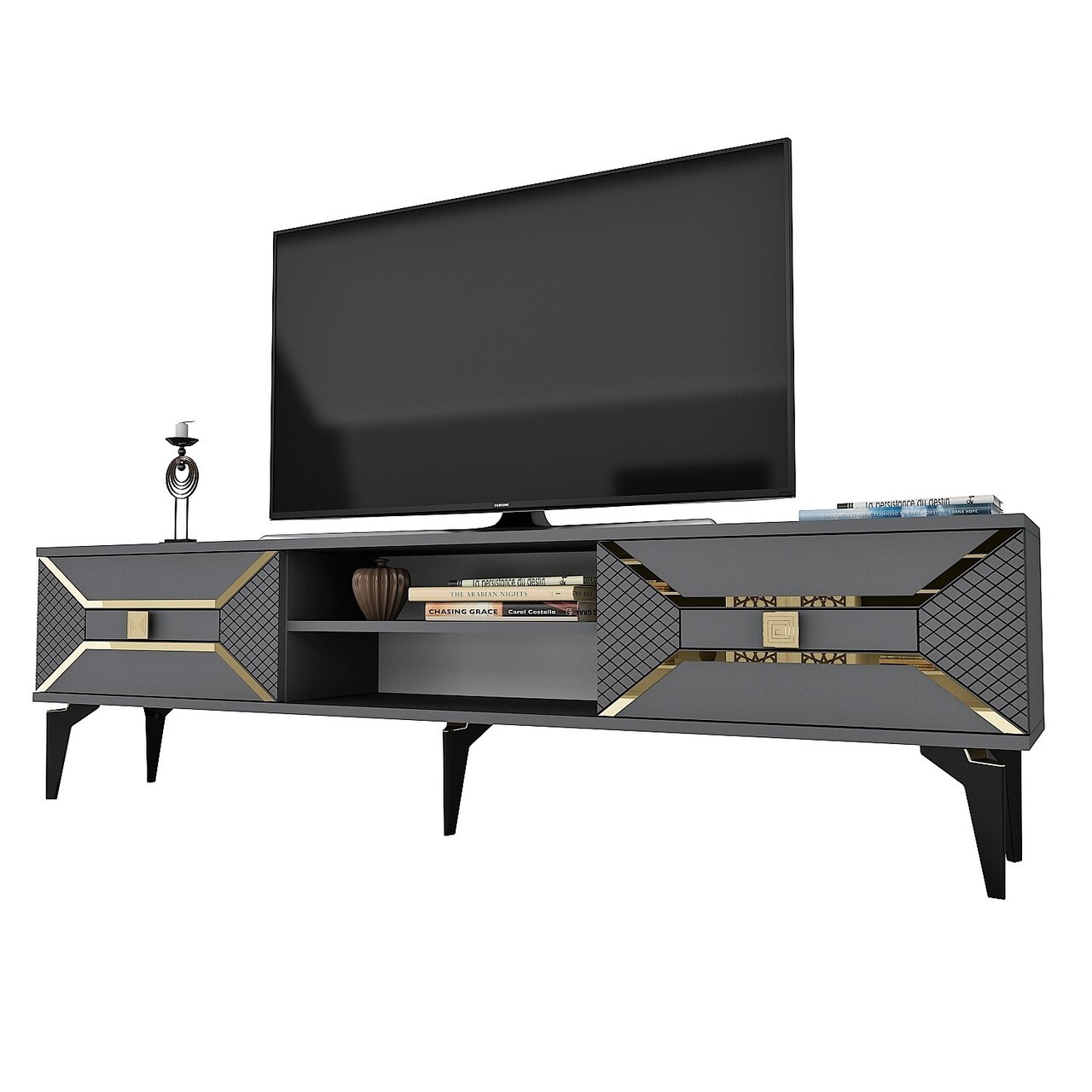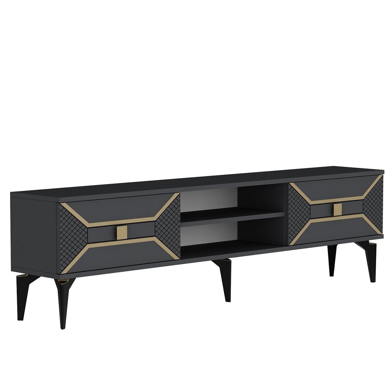 Comoda TV, Olivia, Yumedi, 150x50x30 cm, PAL , Antracit / Aur